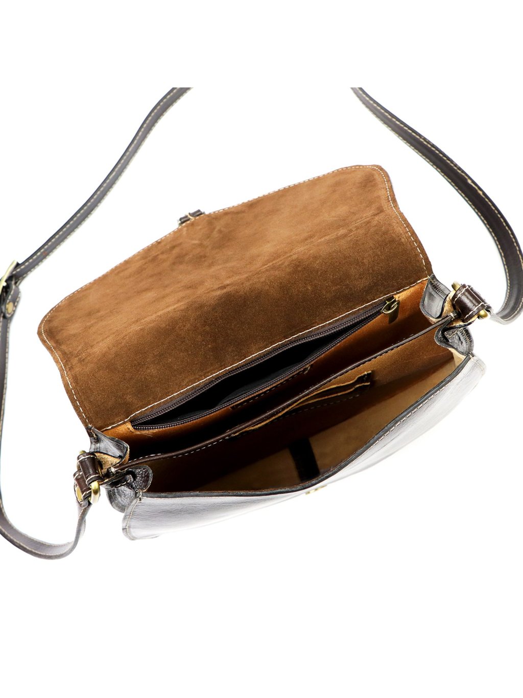 Tato elegantní dámská ručně šitá kožená kabelka Florence v klasickém sedlovém tvaru je vyrobená z prvotřídní italské lícové kůže, která je barvená tamponováním. Díky této technice má každá kabelka jedinečný vzhled a každý kus je originál. Kůže je pevná a dobře drží svůj tvar. Vnitřní prostor je prakticky členěný, nechybí kapsa na zip ani přihrádka na doklady. Zavírání zajišťuje klopa s magnetickým zapínáním. Díky nastavitelnému popruhu se kabelka pohodlně nosí přes rameno i křížem přes tělo. Je to ideální volba pro ženy, které hledají spojení praktičnosti a elegance v každodenním nošení.