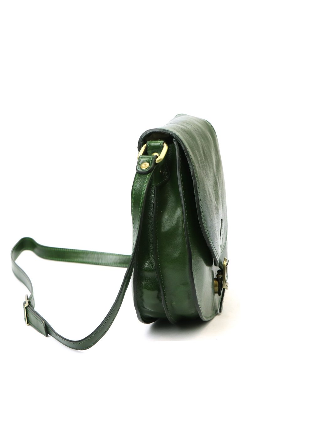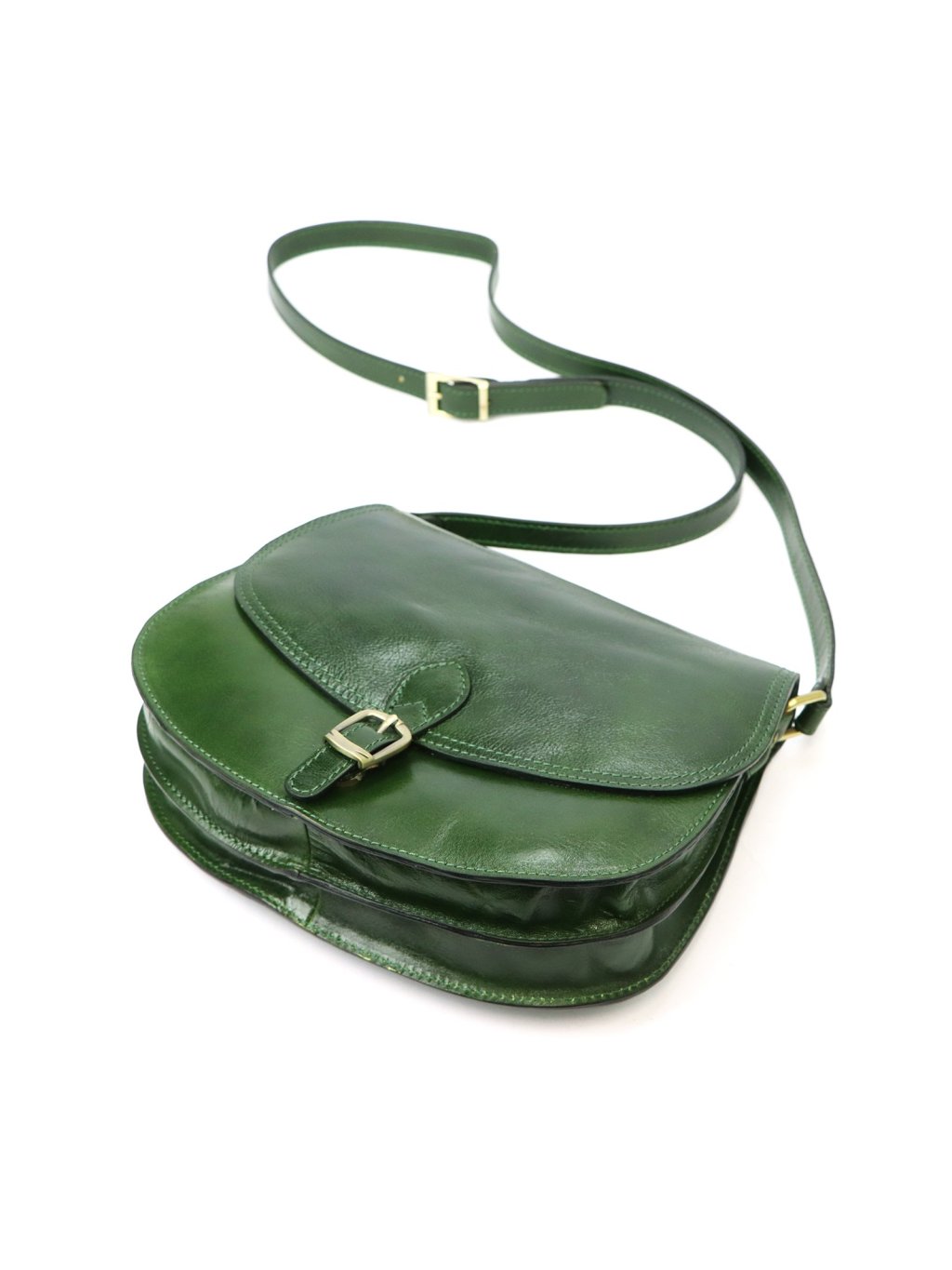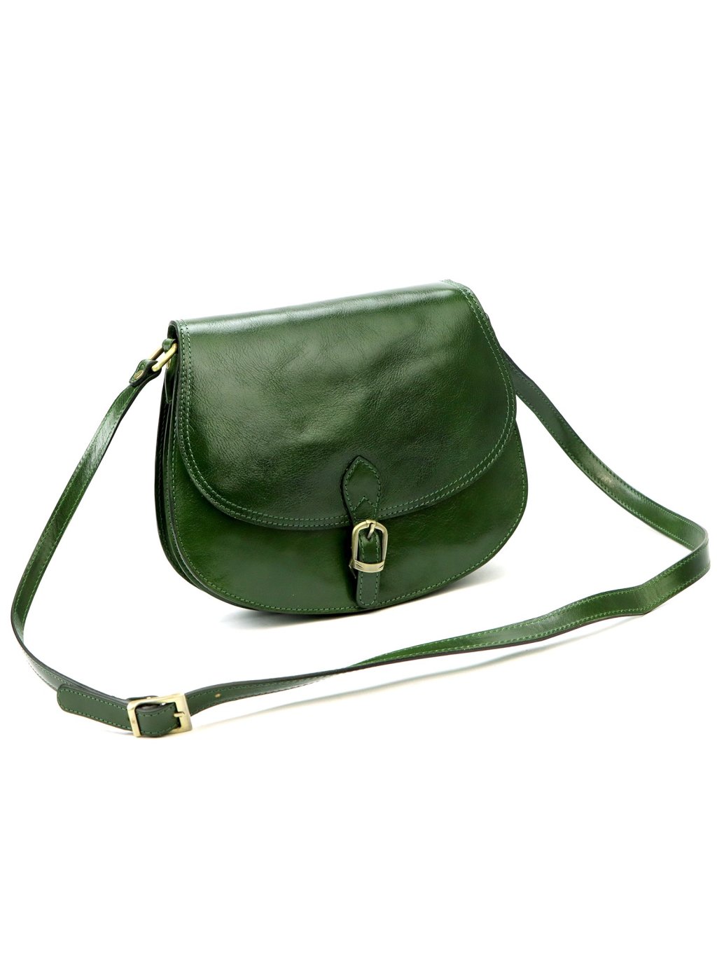 Tato elegantní dámská ručně šitá kožená kabelka Florence v klasickém sedlovém tvaru.