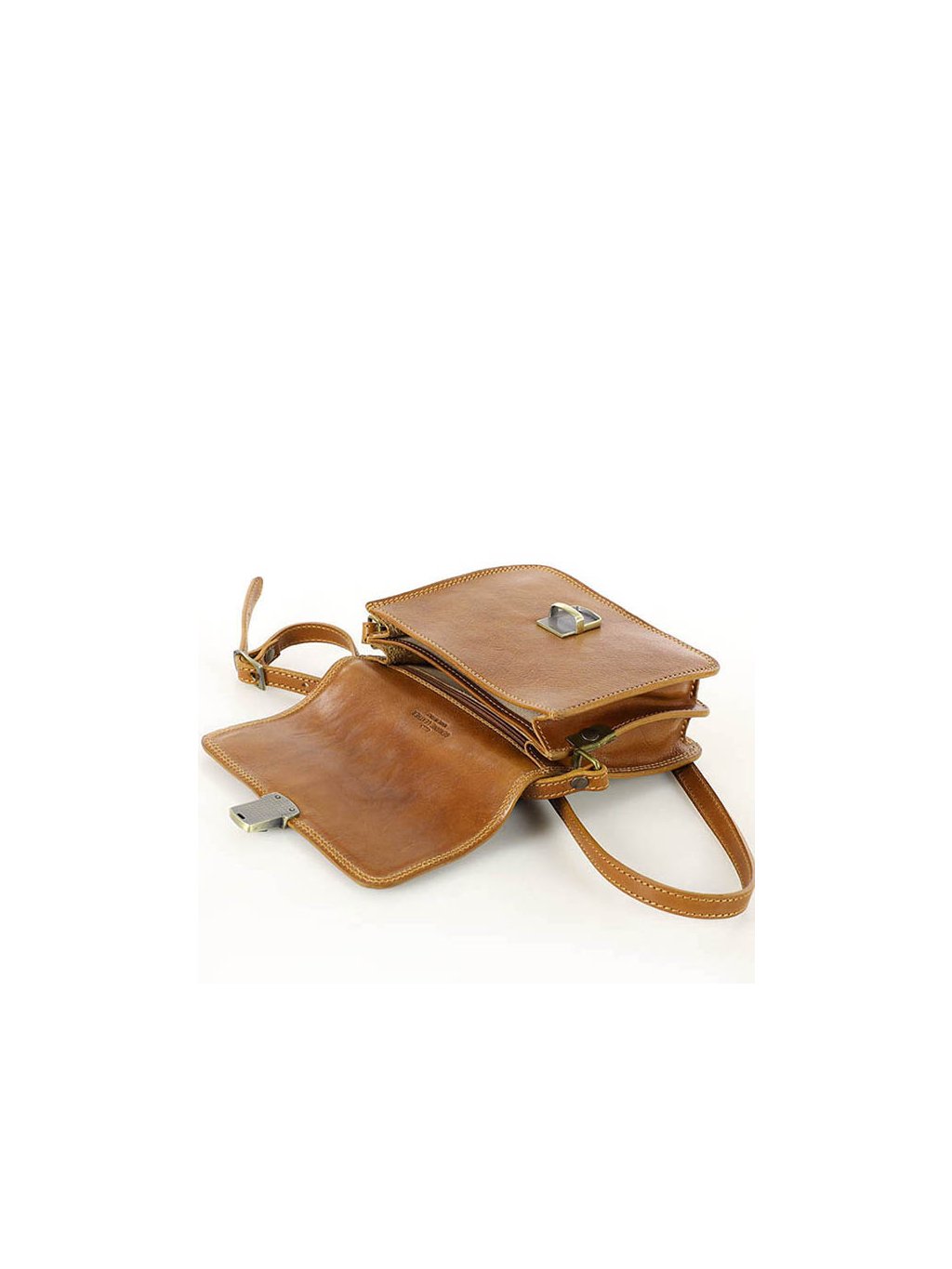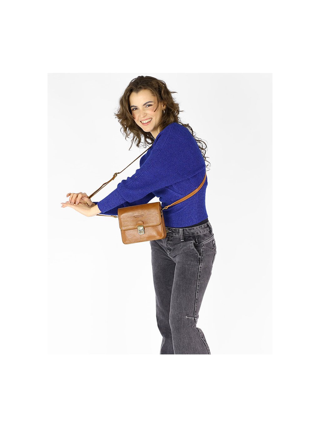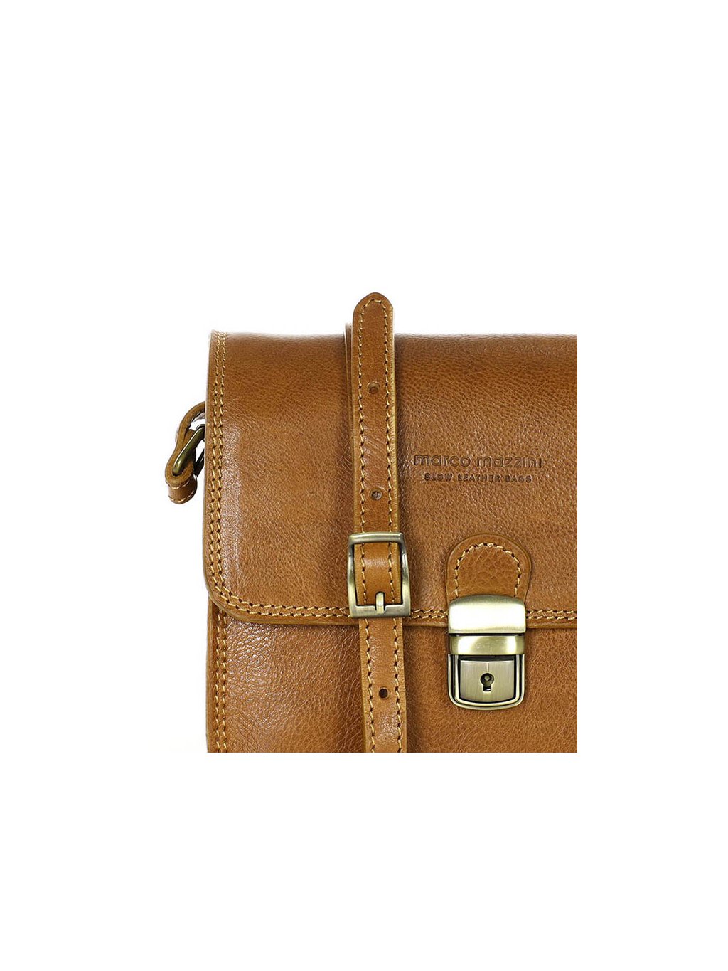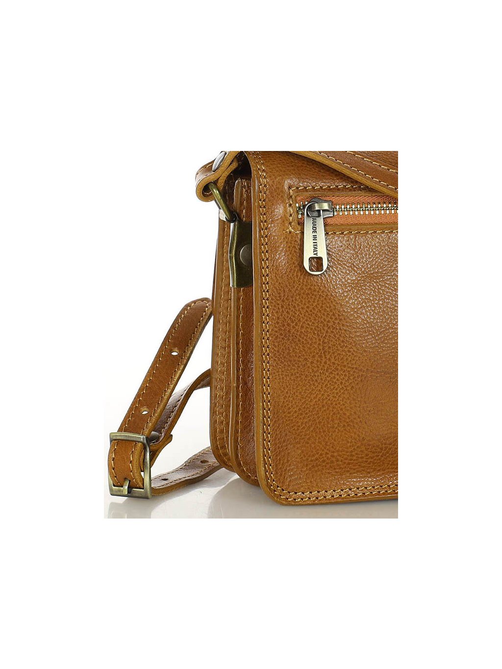 Tato malá kožená sedlová kabelka Marco Mazzini je ručně šitá v italském Toskánsku z prvotřídní hovězí kůže. Její pevná konstrukce a jemná povrchová úprava zdůrazňují přirozenou krásu přírodní usně. Kabelka má dvě hlavní přihrádky oddělené tenkou přepážkou a praktickou vnitřní kapsu na zip. Na zadní straně je další kapsa na zip pro rychlý přístup k drobnostem. Klopa s kovovou přezkou chrání obsah a dodává modelu nadčasový charakter. Dlouhý kožený popruh je nastavitelný, díky čemuž kabelku pohodlně unosíte přes rameno i křížem. Díky svým rozměrům je ideální volbou pro ženy, které chtějí mít po ruce vše důležité.