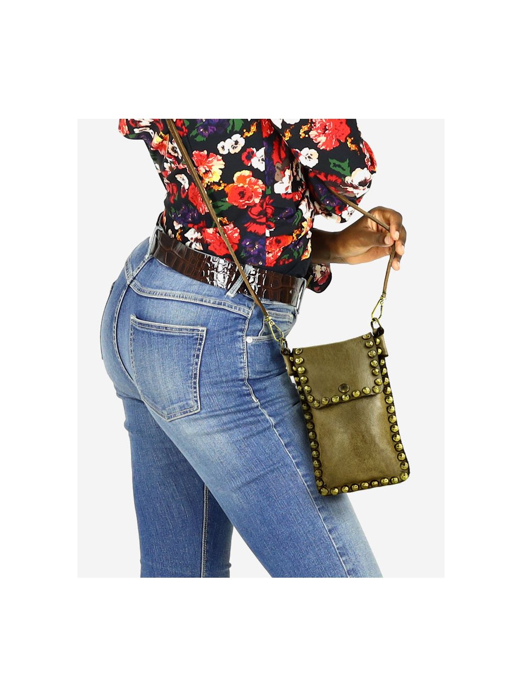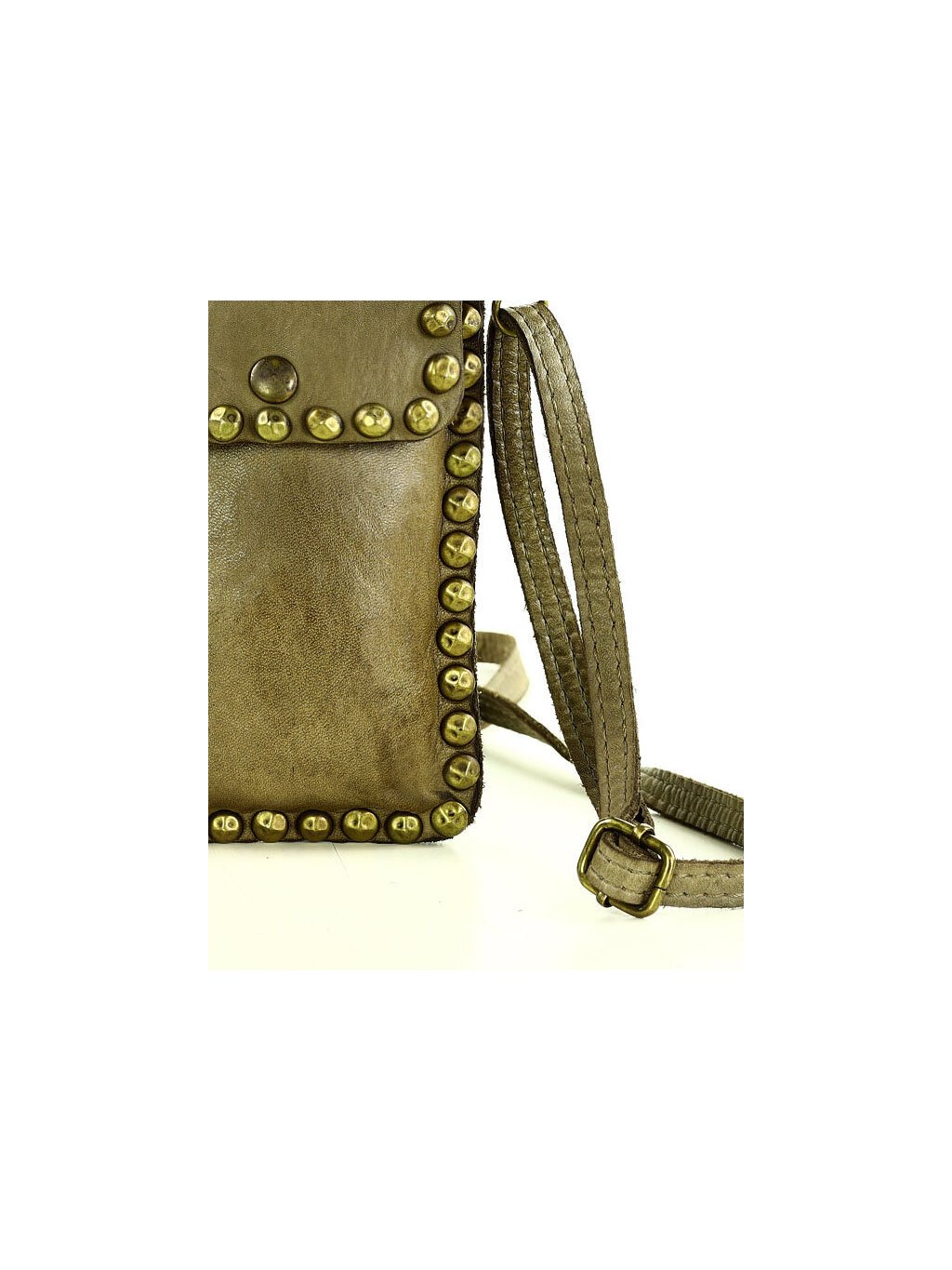 Pokud hledáte dokonalou kombinaci stylu, pohodlí a praktičnosti, toto kožené pouzdro na telefon je pro vás dokonalou volbou. Tato jedinečná mini taška byla vytvořena tak, aby vyhovovala potřebám všem, kteří oceňují eleganci a funkčnost. Taška se uzavírá klopu, vnitřní část je podšitá látkovou podšívkou. Nastavitelný popruh umožnuje pohodlné nošení n rameni.