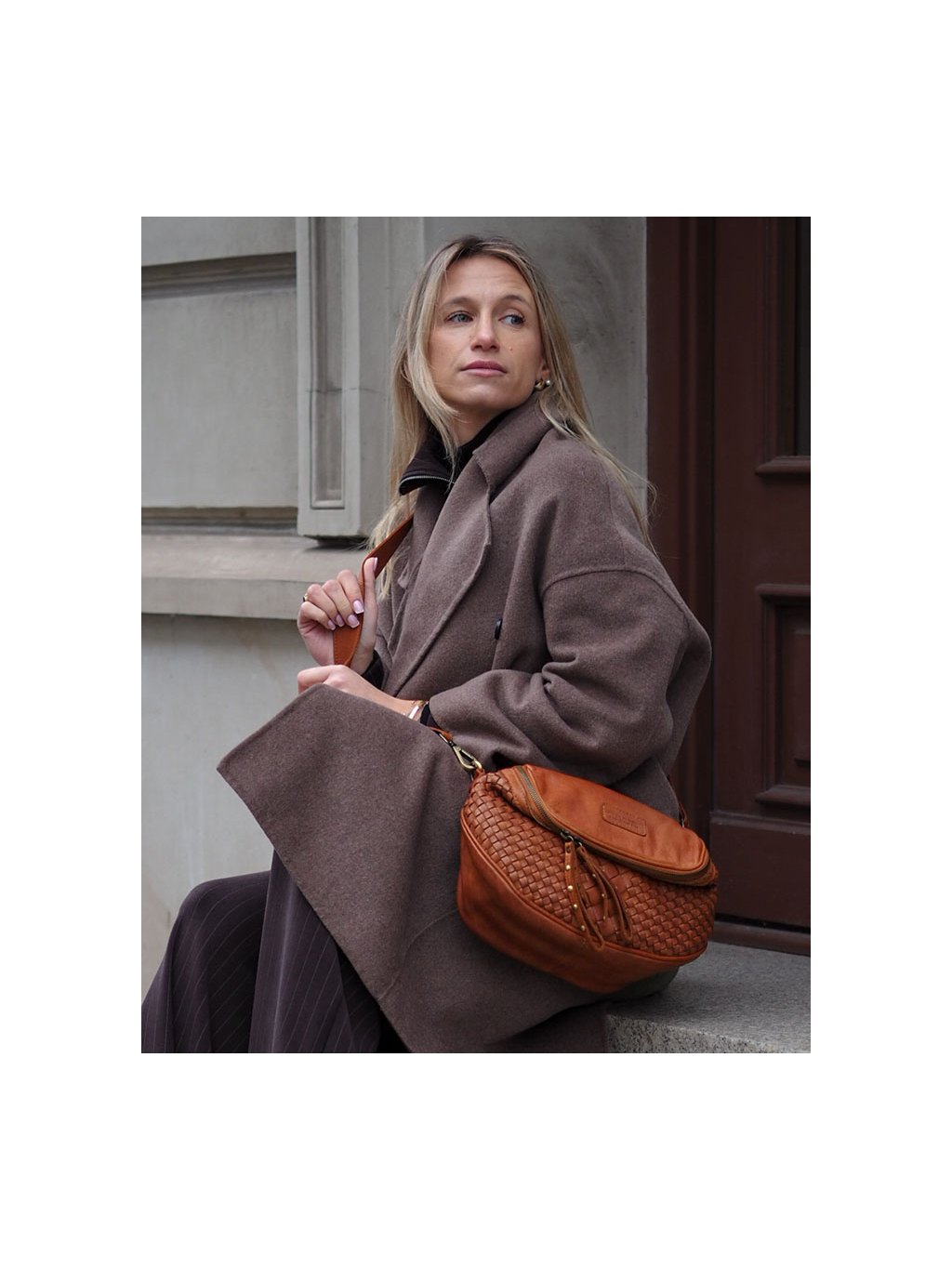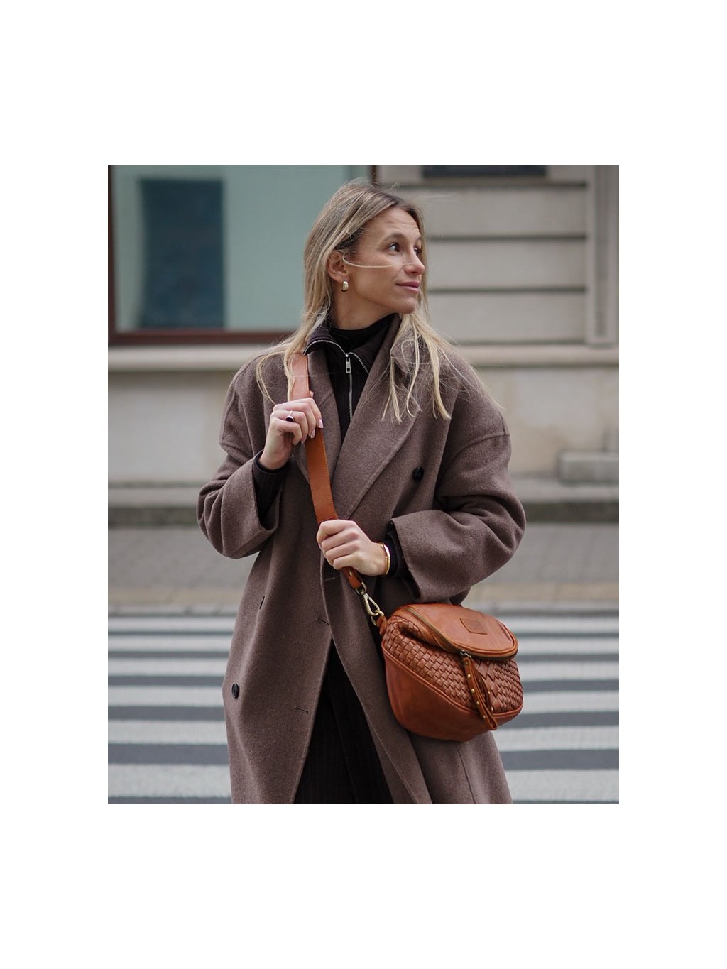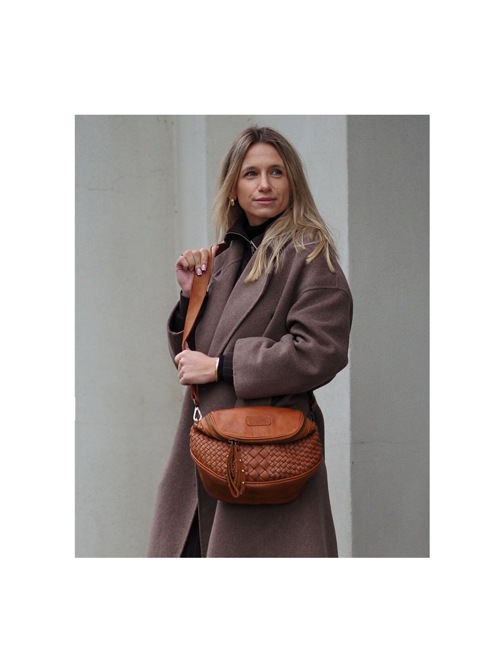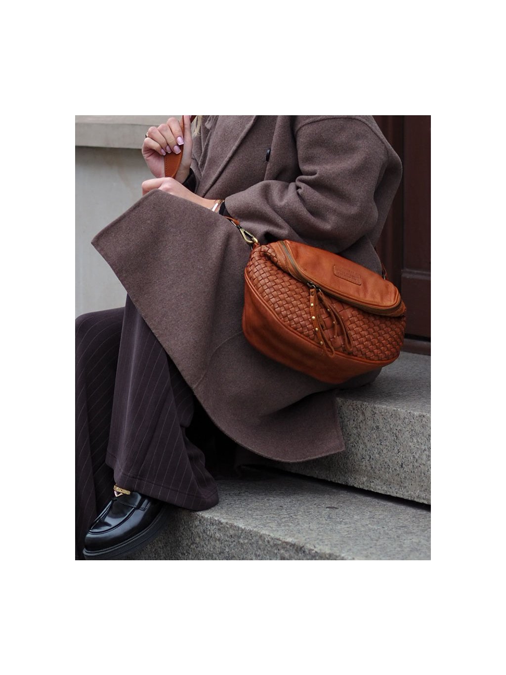 Moderní kožená crossbody kabelka městského střihu, ušitá z přírodní kůže. Kabelka je velmi praktická a ideální na každodenní nošení. Pohodlí při nošení zajišťuje široký nastavitelný popruh kombinující pevnou textilii a přírodní kůži. Prostorný interiér skrývá praktickou kapsičku na zip. Taška se uzavírá masivním kovovým zipem. Vnitřek je podšitý látkovou podšívkou. Taška je ručně šitá a pletená a poté barvená podle nejnovějších trendů v nejlepších italských koželužnách, takže každý exemplář je jedinečný a originální. Vytvořeno pro aktivní ženy, které si cení pohodlí a praktičnosti.