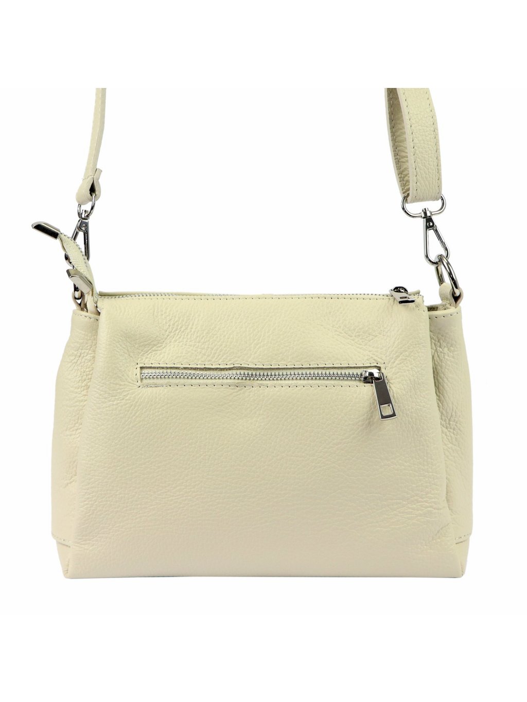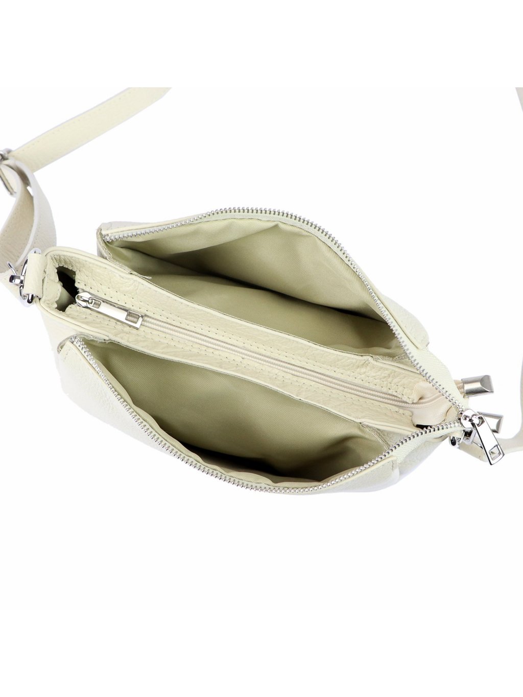 Dámská crossbody kabelka MiaMore italské výroby ušitá z měkké přírodní kůže, která zaujme svým jednoduchým a praktickým zpracováním. Celý model je členěn do tří samostatných částí, které se zavírají na zip a umožňují přehledné uspořádání všech potřebných věcí. Uvnitř prostředního oddílu se nachází kapsa na zip a otevřená kapsička na telefon. Kabelka je vybavena dlouhým nastavitelným řemínkem pro pohodlné nošení na rameni i křížem přes tělo. Elegantní vzhled doplňuje stříbrné kování a decentní stříbrné logo umístěné na přední straně kabelky.