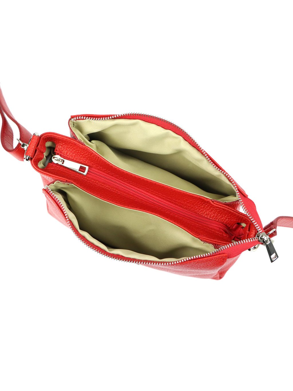 Dámská crossbody kabelka MiaMore italské výroby ušitá z měkké přírodní kůže, která zaujme svým jednoduchým a praktickým zpracováním. Celý model je členěn do tří samostatných částí, které se zavírají na zip a umožňují přehledné uspořádání všech potřebných věcí. Uvnitř prostředního oddílu se nachází kapsa na zip a otevřená kapsička na telefon. Kabelka je vybavena dlouhým nastavitelným řemínkem pro pohodlné nošení na rameni i křížem přes tělo. Elegantní vzhled doplňuje stříbrné kování a decentní stříbrné logo umístěné na přední straně kabelky.