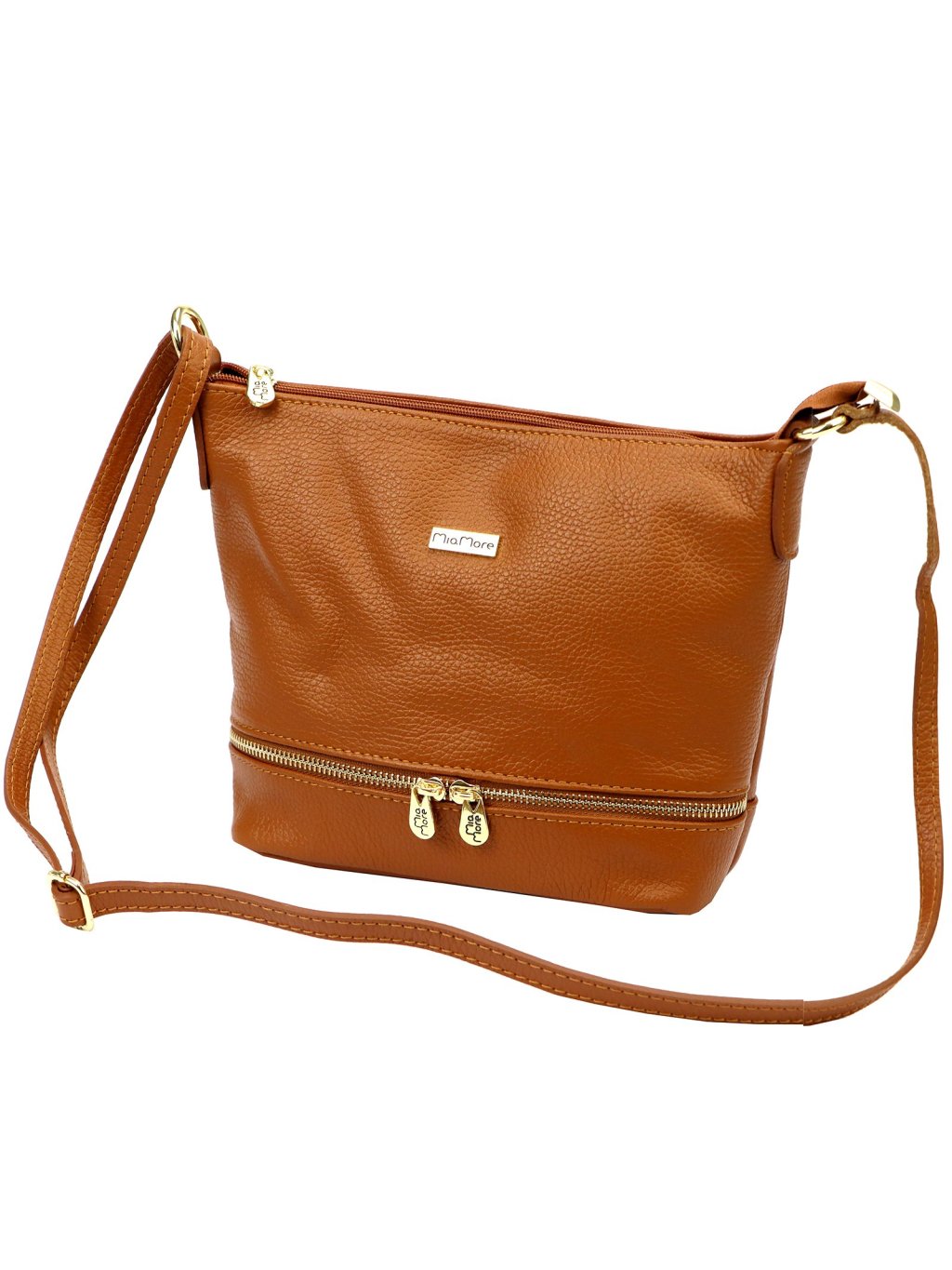 Kožená crossbody kabelka MiaMore 01-019 koňakvá
