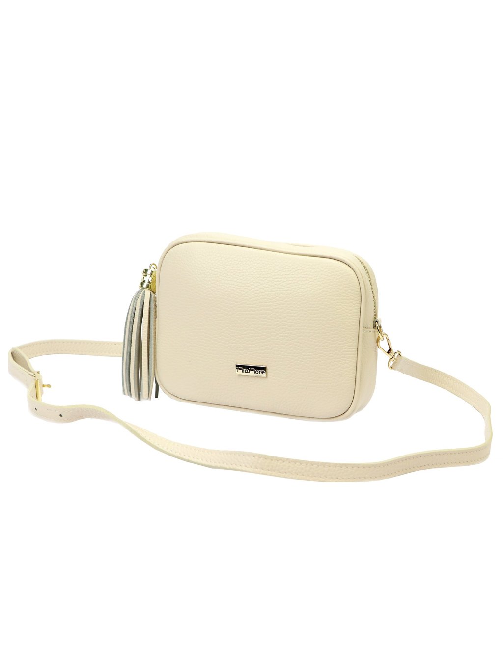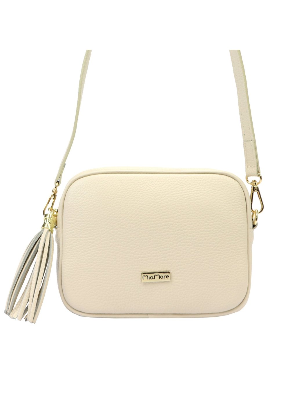 Kožená crossbody kabelka MiaMore 01-065 světle béžová