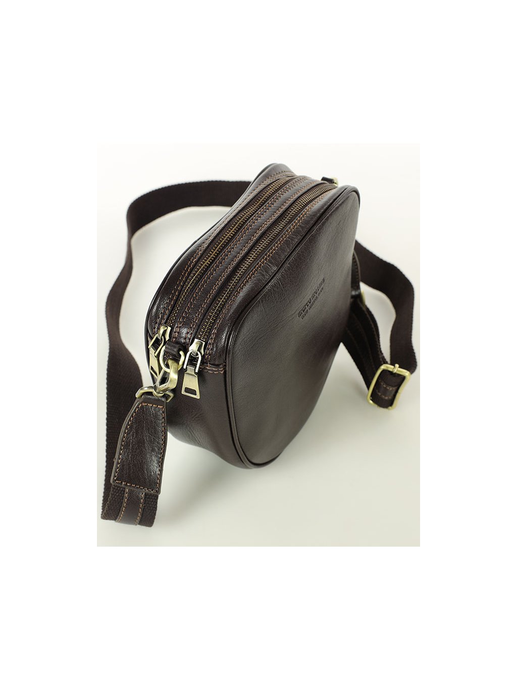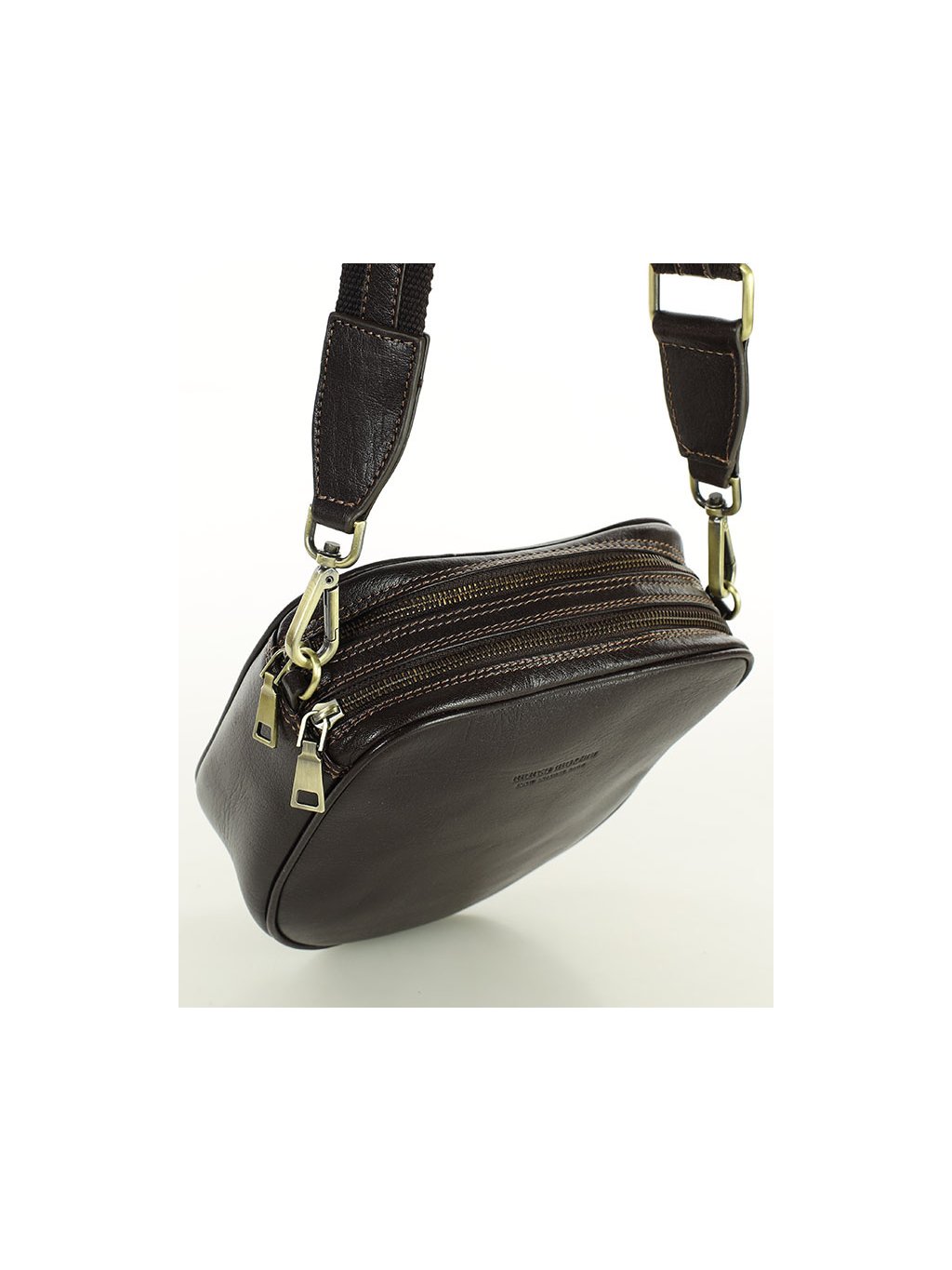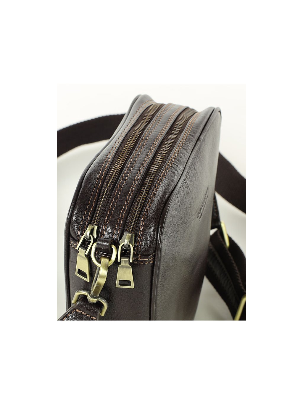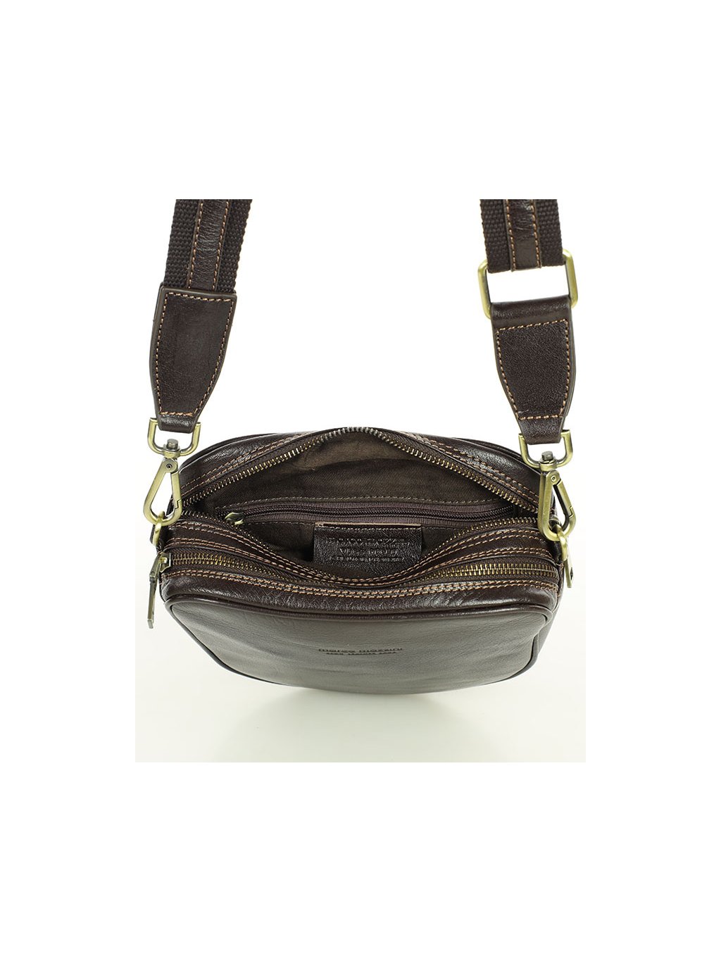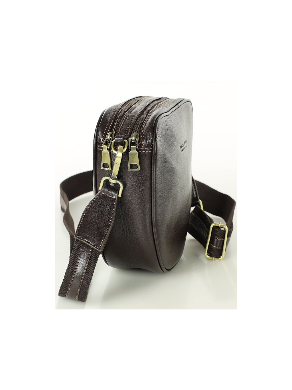 Kožená kabelka crossbody kabelka sportovnějšího střihu se dvěma oddělenými přihrádkami. Přístup do každé přihrádky je chráněný kovovým zipem. Vnitřek kabelky je podšitý látkovou podšívkou a obsahuje jednu praktickou zipem uzavíratelnou kapsičku. Pohodlí při nošení zajišťuje široký a dlouhý látkový popruh. Praktická a funkční taška pro každodenní použití!