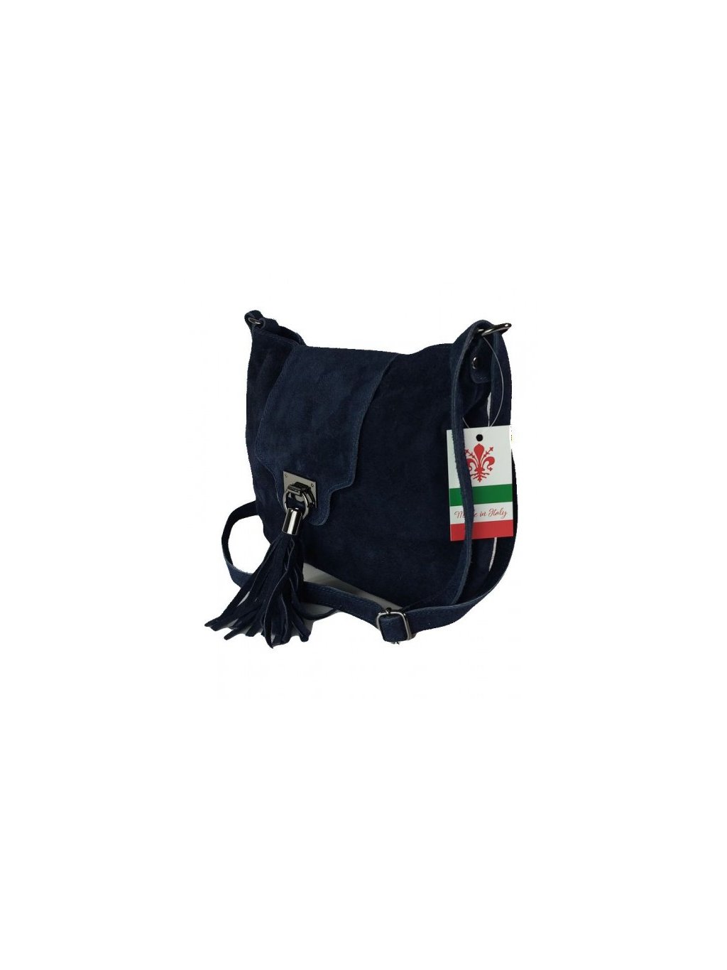 Italská kožená crossbody kabelka z přírodní broušené kůže. Kabelka se uzavírá pomocí zipu, přes který je klopna na magnetku s kovovou sponou. Vnitřek kabelky je podšitý pevnou látkovou podšívkou s jednou zipem uzavíratelnou kapsou. Druhá praktická kapsička se nachází na zadní straně kabelky. Kabelka má dlouhý nastavitelný řemínek k pohodlnému nošení přes rameno, nebo do kříže.
