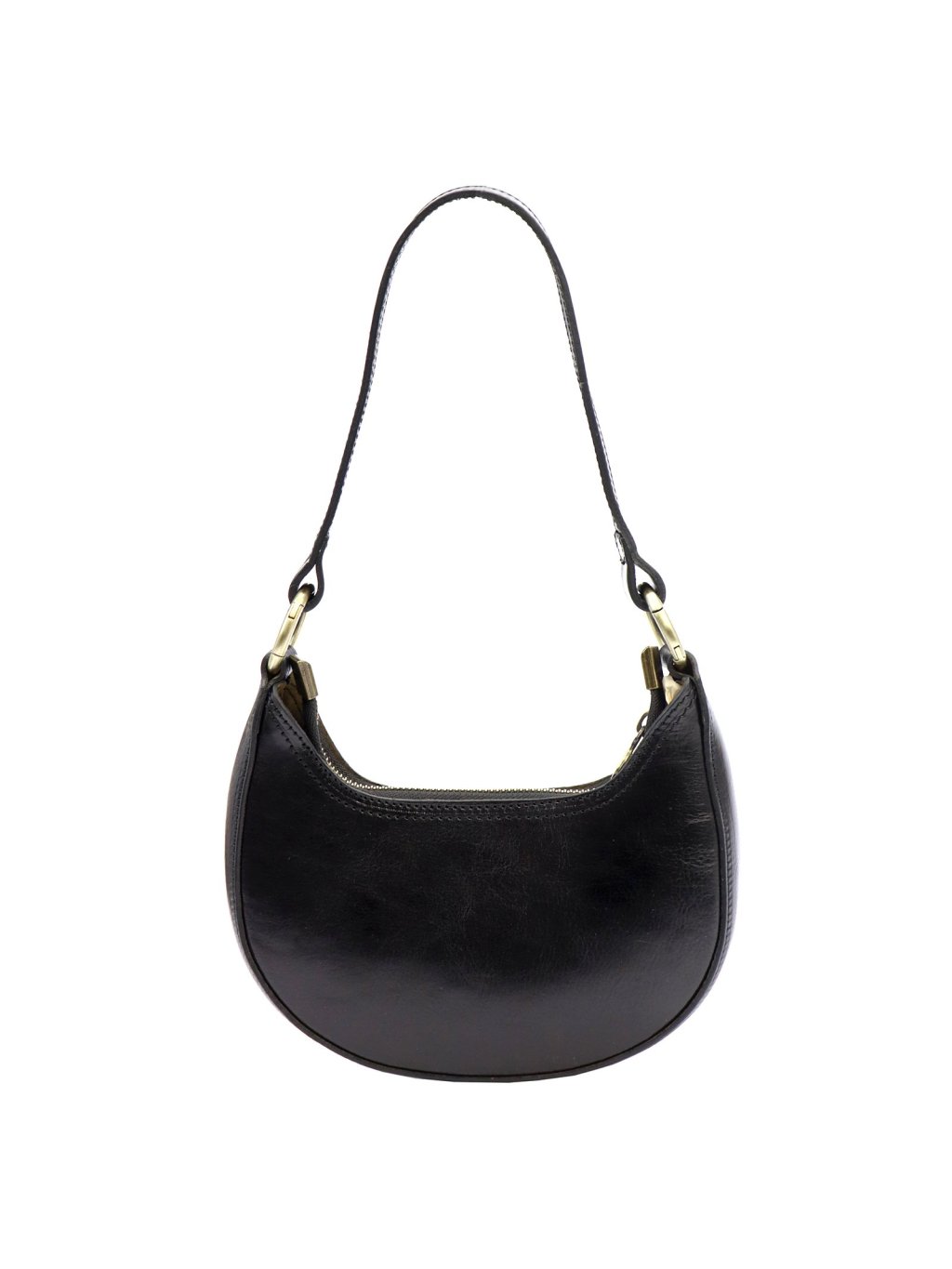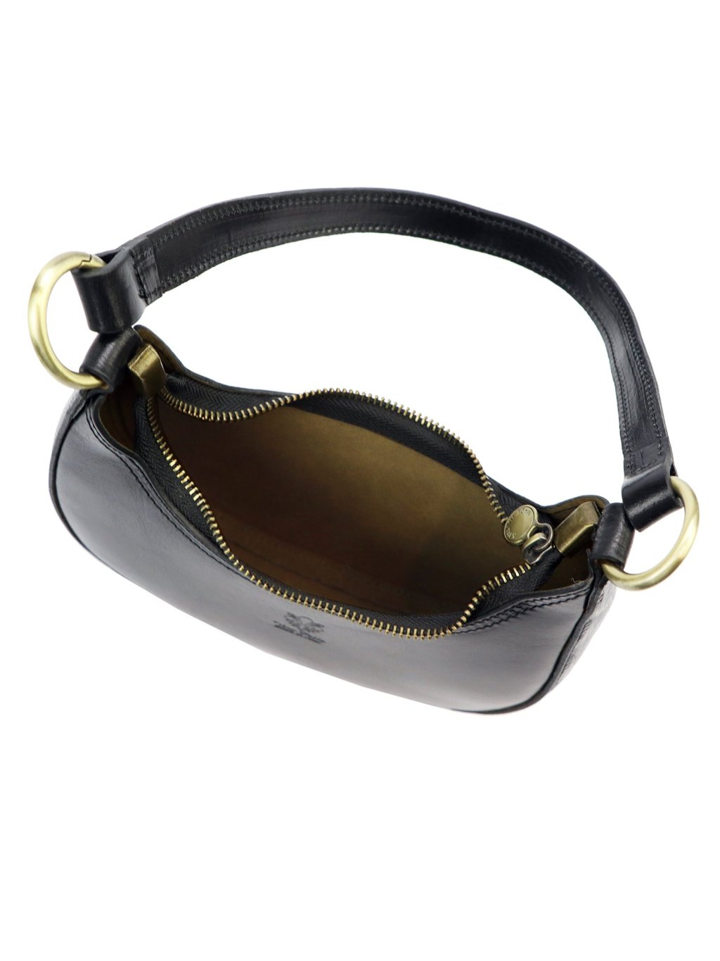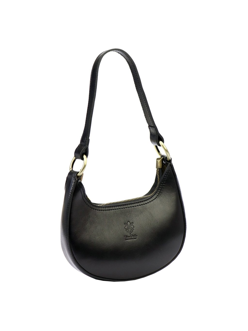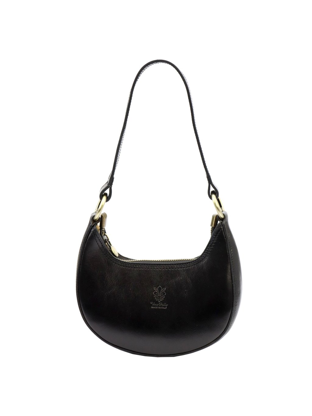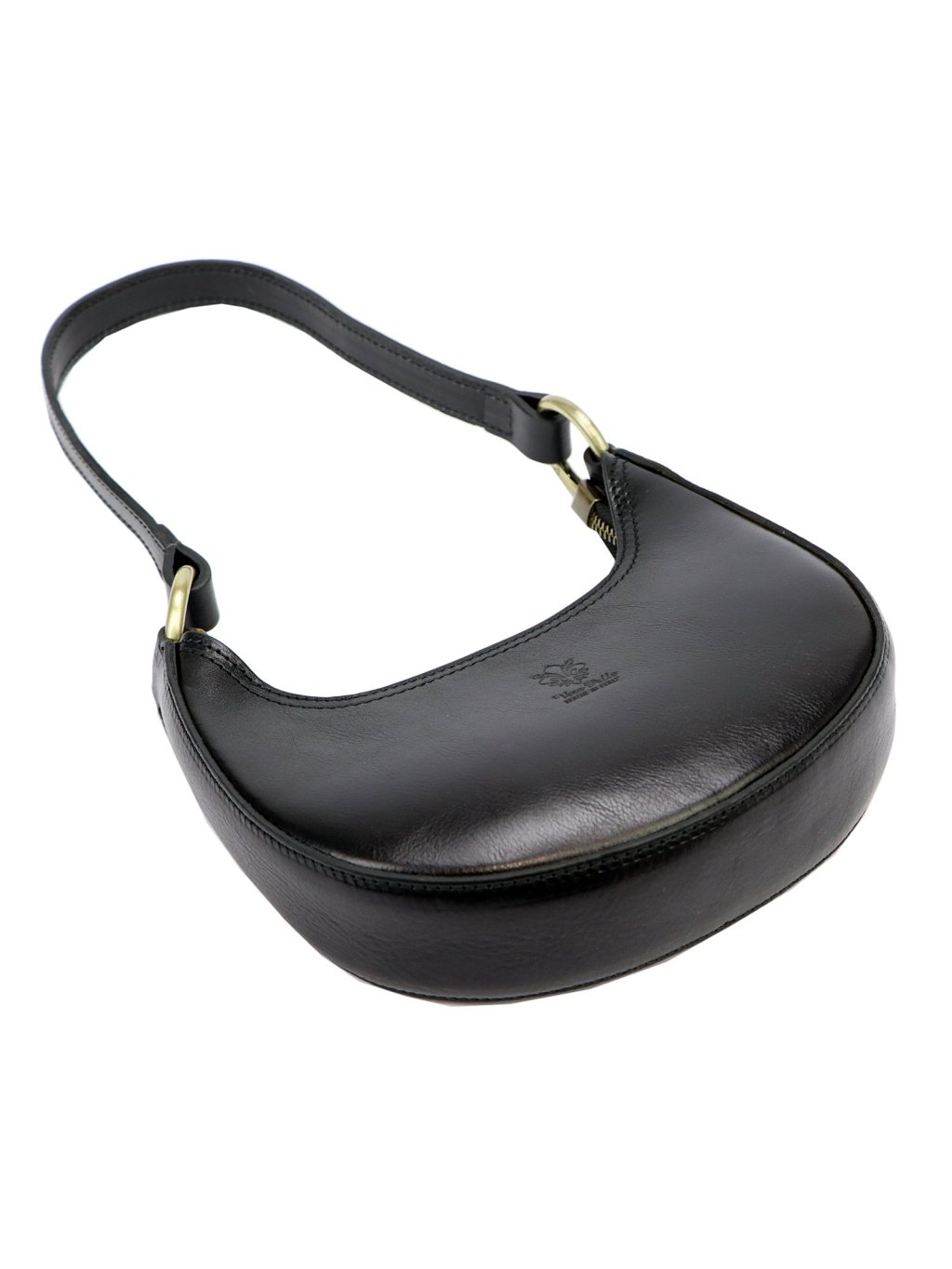Tato menší elegantní kožená kabelka gondolového tvaru je ušitá z velmi kvalitní kůže značkou Florence. Kabelka má minimalistický design a je doplněna o masivní mosazné kování.