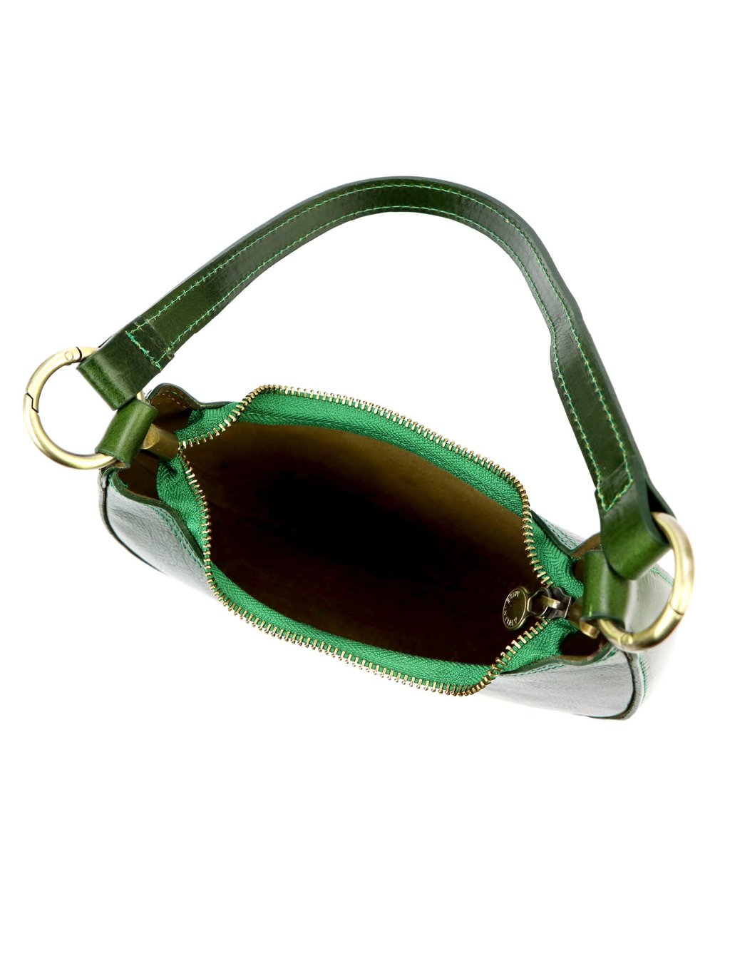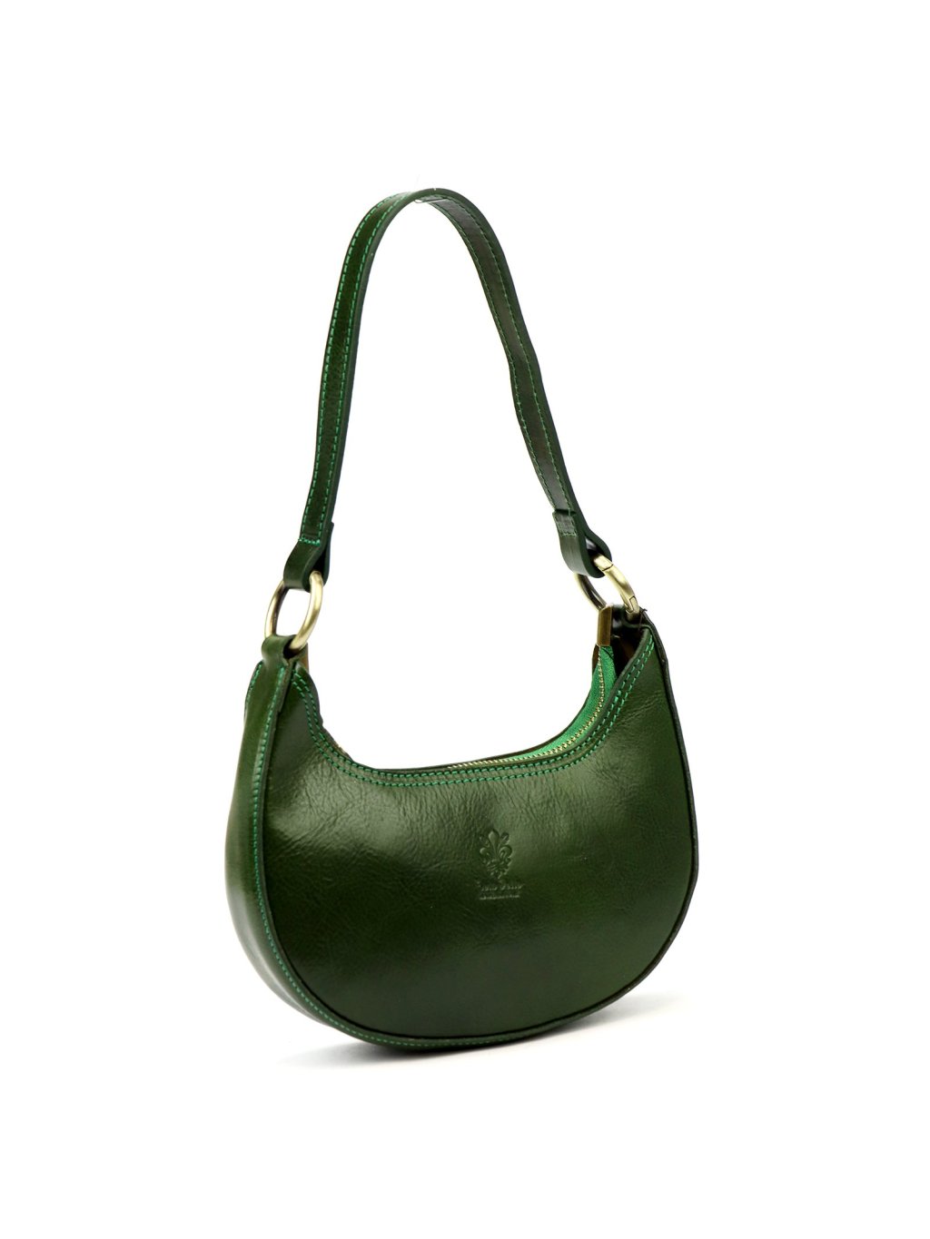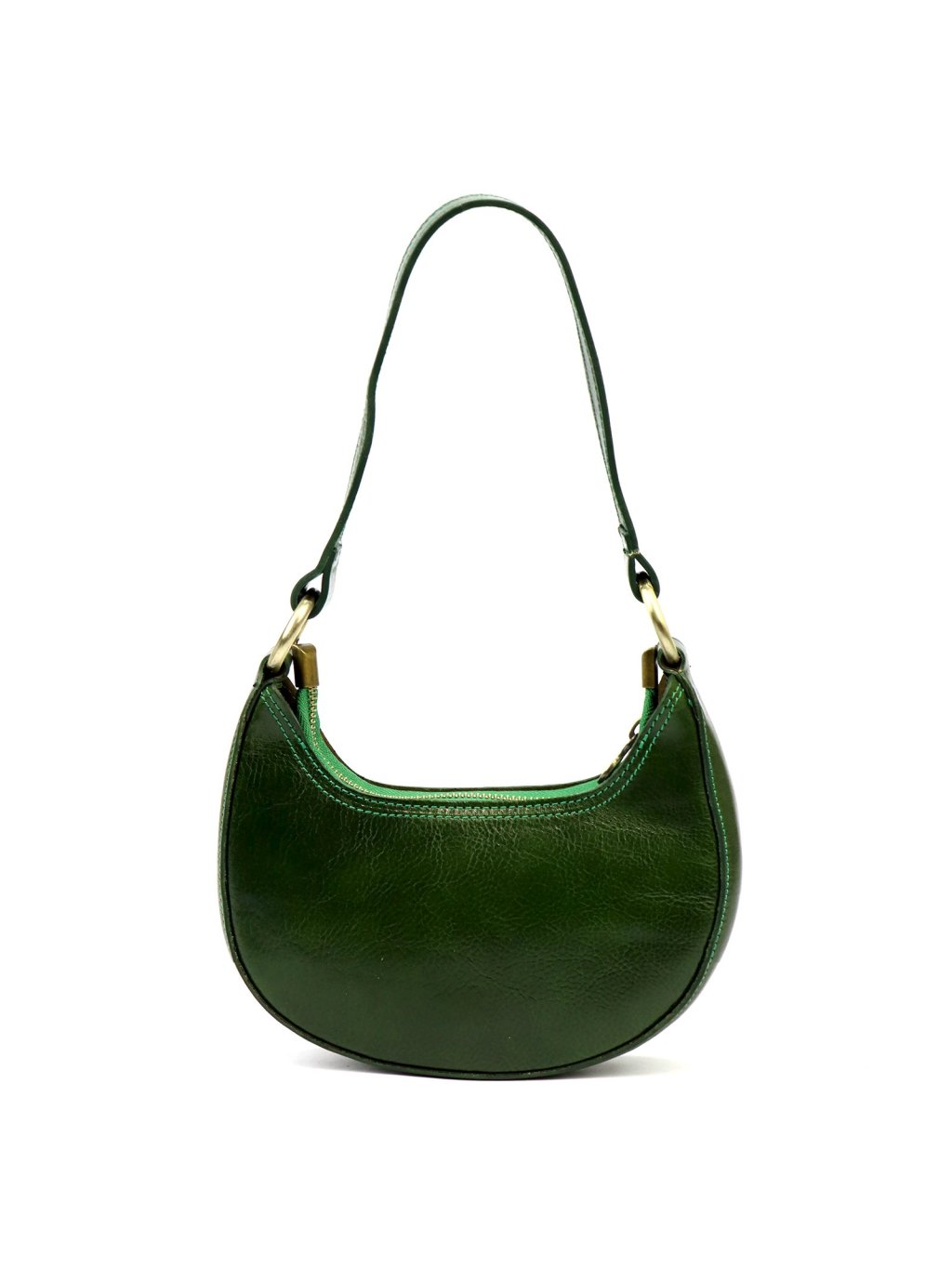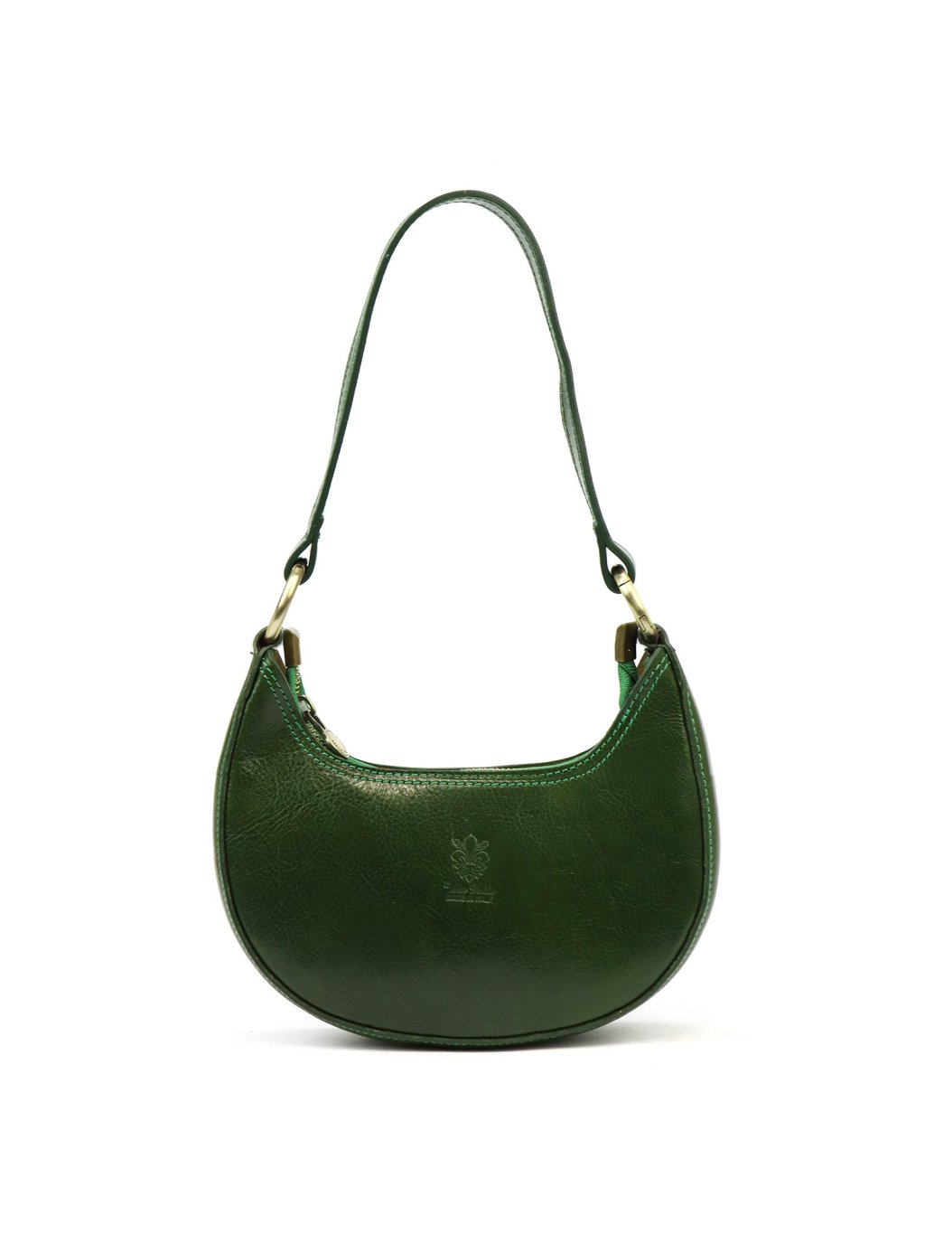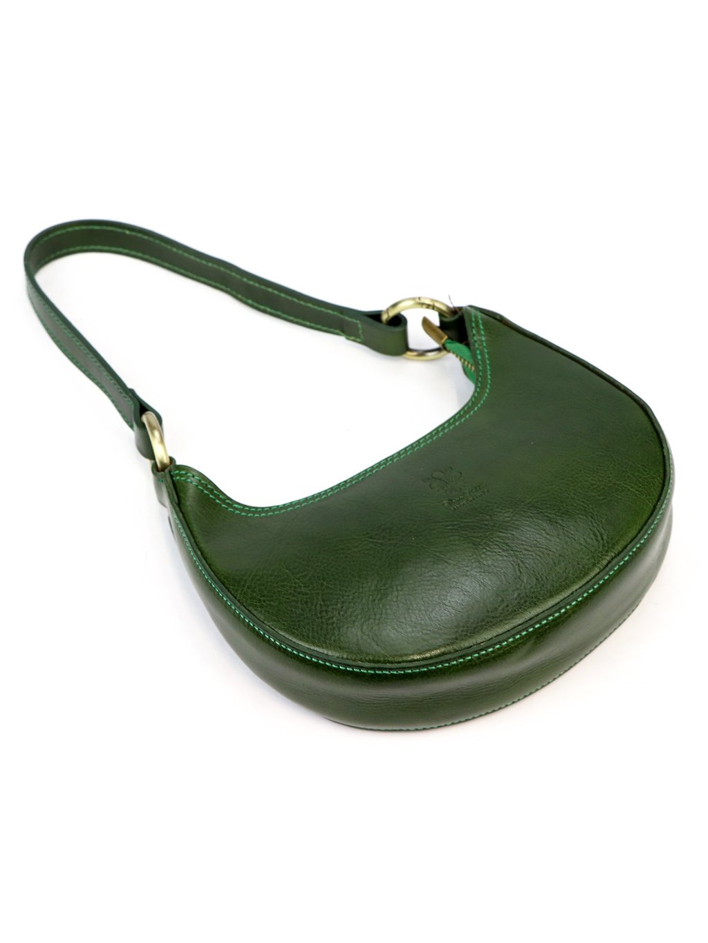 Tato menší elegantní kožená kabelka gondolového tvaru je ušitá z velmi kvalitní kůže značkou Florence. Kabelka má minimalistický design a je doplněna o masivní mosazné kování.