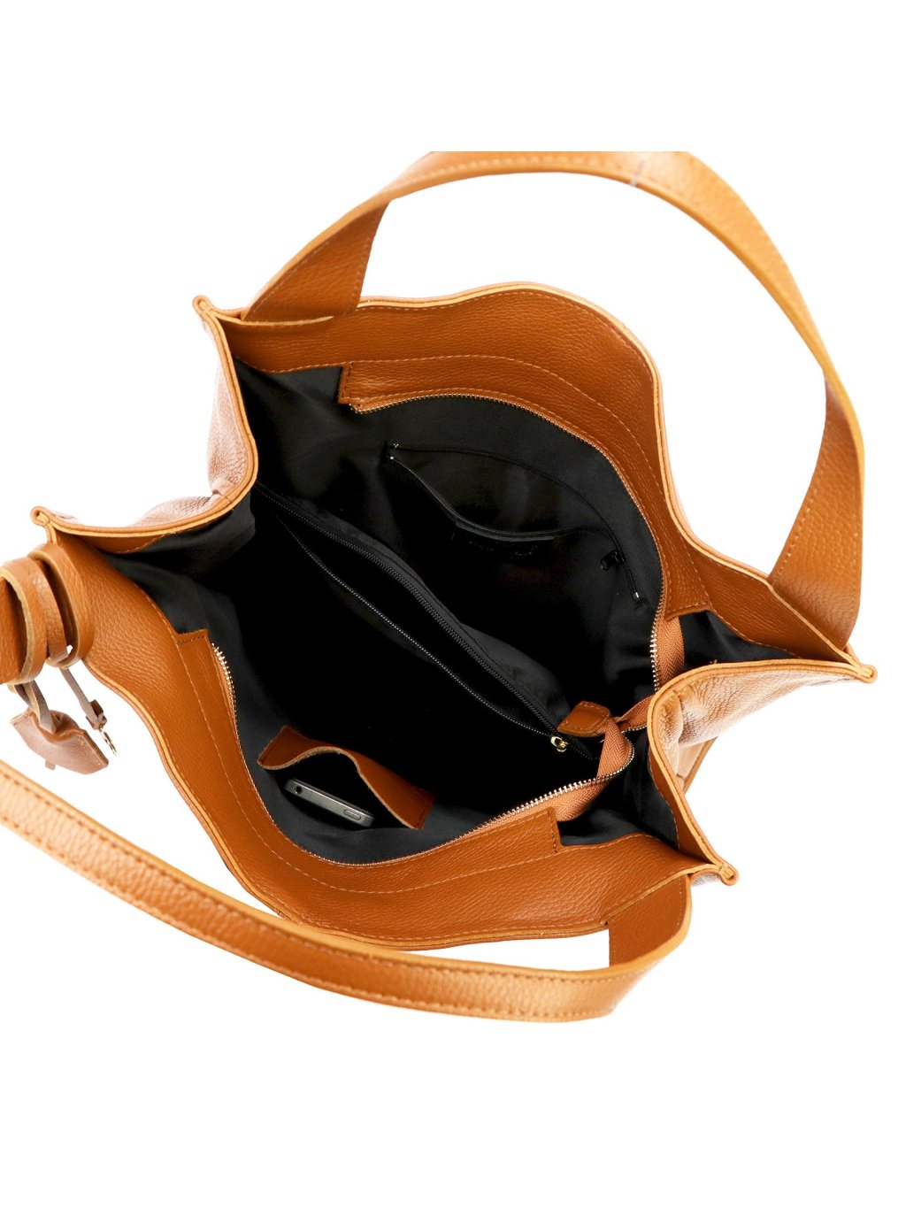 Tato komfortní a zároveň funkční kožená dámská kabelka Gregorio, z italské provenience, uspokojí všechny dámy, neboť ji mohou vzít téměř na každou příležitost. Produkt je vyroben z velmi kvalitní měkké kůže s naznačenou jemnou zrnitou strukturou. Velikost kabelky umožní uložit i dokumenty A4. Uvnitř je jedna hlavní přihrádka, jedna otevřená kapsa a jedna, která se zavírá na zip. Dvě ucha střední délky jsou napevno přišitá, takže elegantní kožený vzhled neruší žádný doplňující kov.