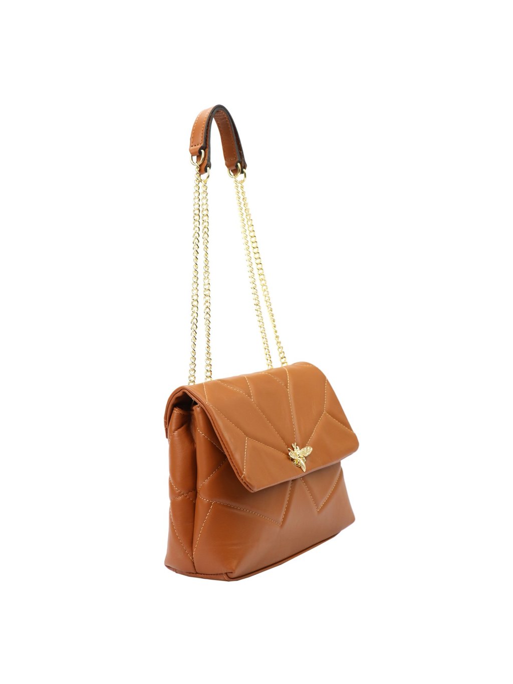 Středně velká kabelka městského střihu pro nošení na rameni, nebo křížem přes hruď. Kabelka je vyrobena z nejkvalitnější italské přírodní hovězí kůže. Kůže je vyčiněna a barvena pouze přírodními tříslovými a minerálními barvivy. Konstrukce kabelky je jednokomorová předělená zipovou separací. Vnitřek je podšitý látkovou podšívkou s praktickou kapsičkou na zip. Celá kabelka se zavírá pevným zipem a klopou s ozdobnou přezkou.