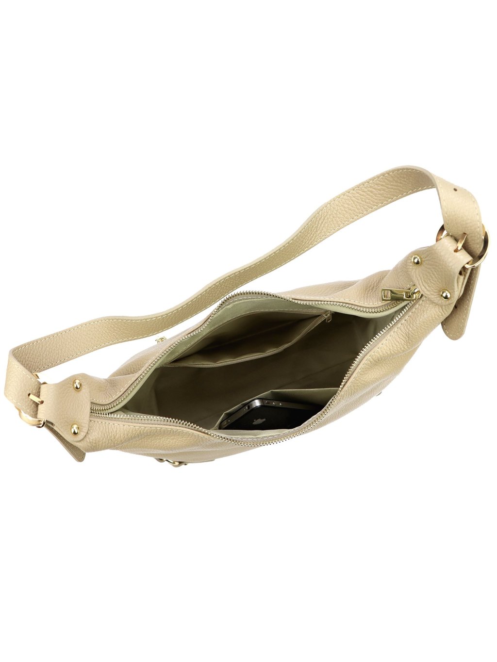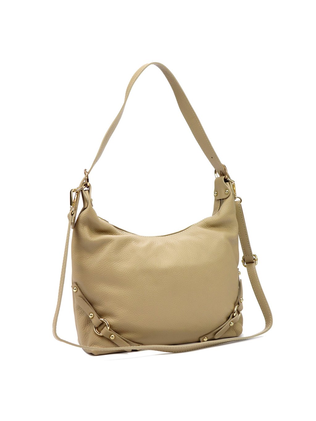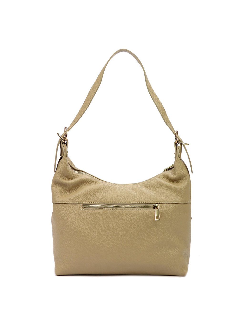 Je známo, že nikdo neumí navrhovat kabelky tak dobře jako Italové, proto vám doporučujeme tuto italskou kabelku z přírodní měkké kůže typu dollaro. Přístup do interiéru je chráněný kovovým zipem. Vnitřek kabelky je jednokomorový, podšitý látkovou podšívkou a nachází se v něm jedna praktická zipem uzavíratelná kapsička a jedna otevřená kapsička na drobnosti. Délku ucha lze velmi snadno regulovat, proto se kabelka velmi dobře nosí.