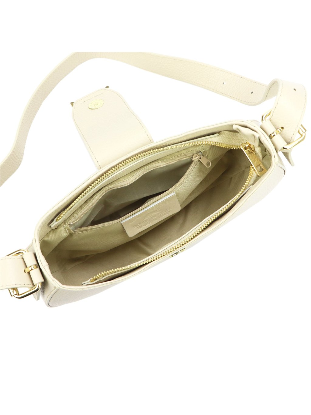 Elegantní dámská kabelka Luka ušitá z pravé přírodní kůže. Kabelka se uzavírá pomocí zipu a úzké klopy s magnetkou. Vnitřní prostor kabelky je nedělený s praktickou kapsu na zip, vhodnou pro umístění klíčů nebo mobilního telefonu. Řemínek kabelky je nastavitelný až do délky 85 cm.