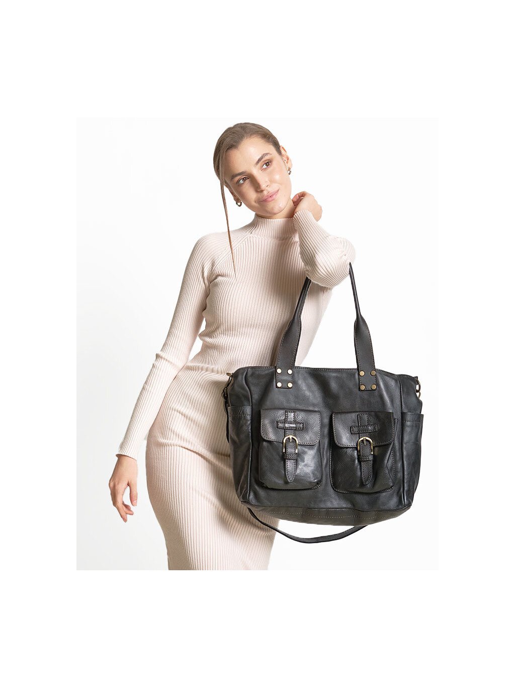 Tato prostorná kožená kabelka z kolekce Marco Mazzini je ručně šitá z kvalitní hovězí kůže. Prostorný interiér s bavlněnou podšívkou nabízí dvě otevřené přihrádky a jednu kapsu na zip, zatímco další praktické kapsy jsou umístěny na bocích a na přední straně pro rychlý přístup k drobnostem. Nechybí ani zadní kapsa na zip. Kabelka je dostatečně prostorná na dokumenty a notebook, takže je ideální volbou jako pracovní taška pro každodenní použití. Dlouhý nastavitelný popruh umožňuje pohodlné nošení i přes rameno. Nadčasový vintage styl, ručí zpracování a odolná kůže zaručují, že se kabelka stane spolehlivým a stylovým doplňkem pro každý den i slavnostnější příležitosti.