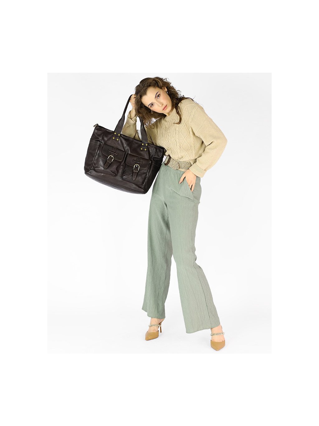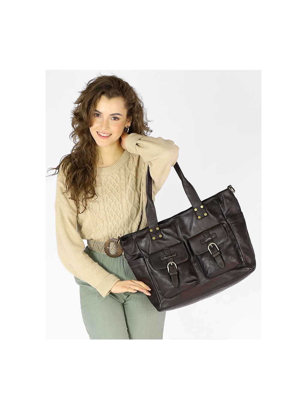 Elegantní prostorná kožená kabelka z kolekce Marco Mazzini.
