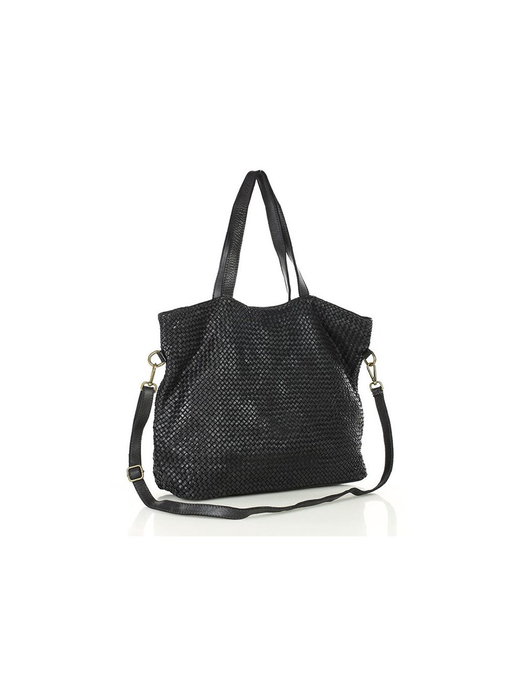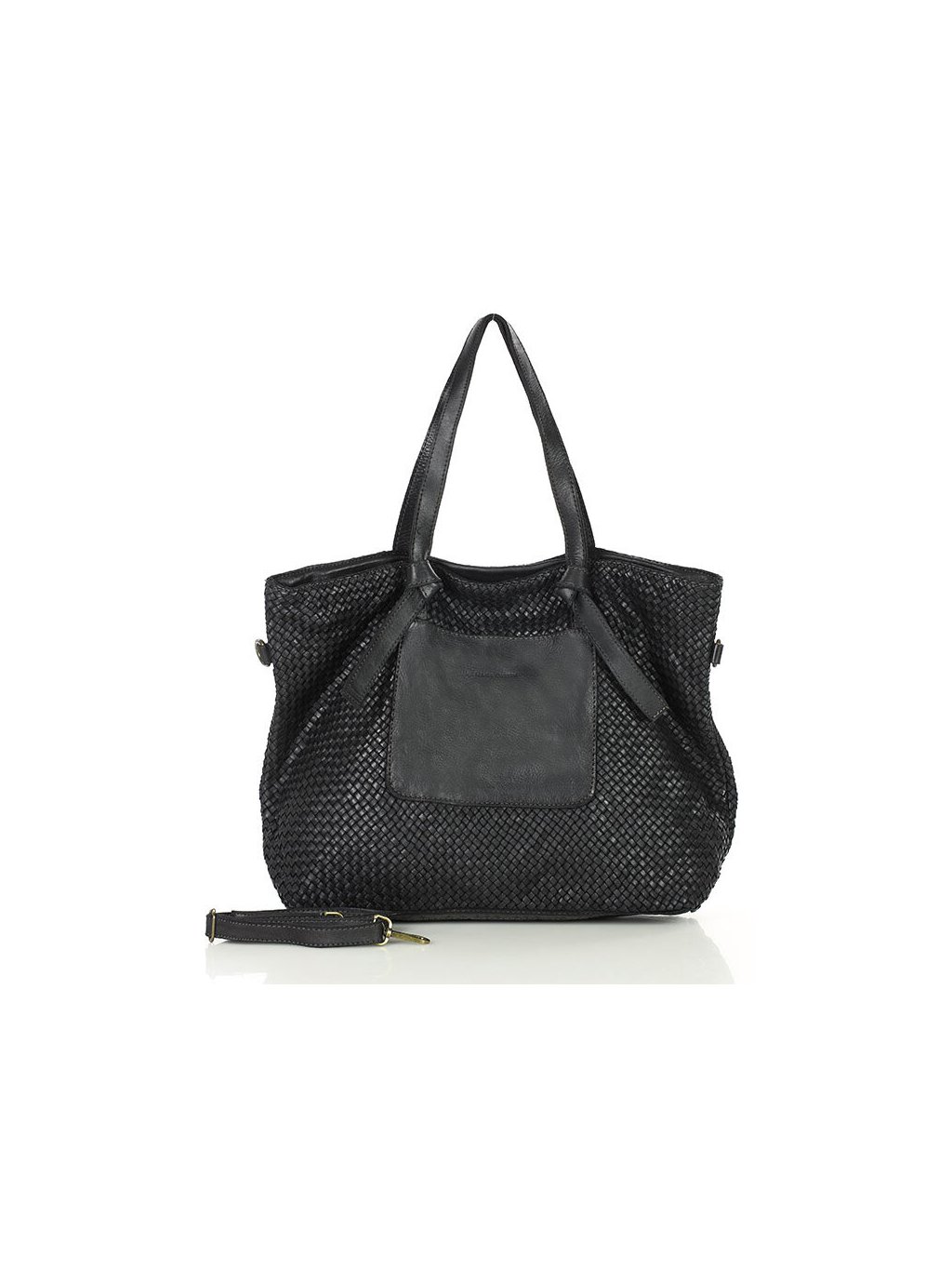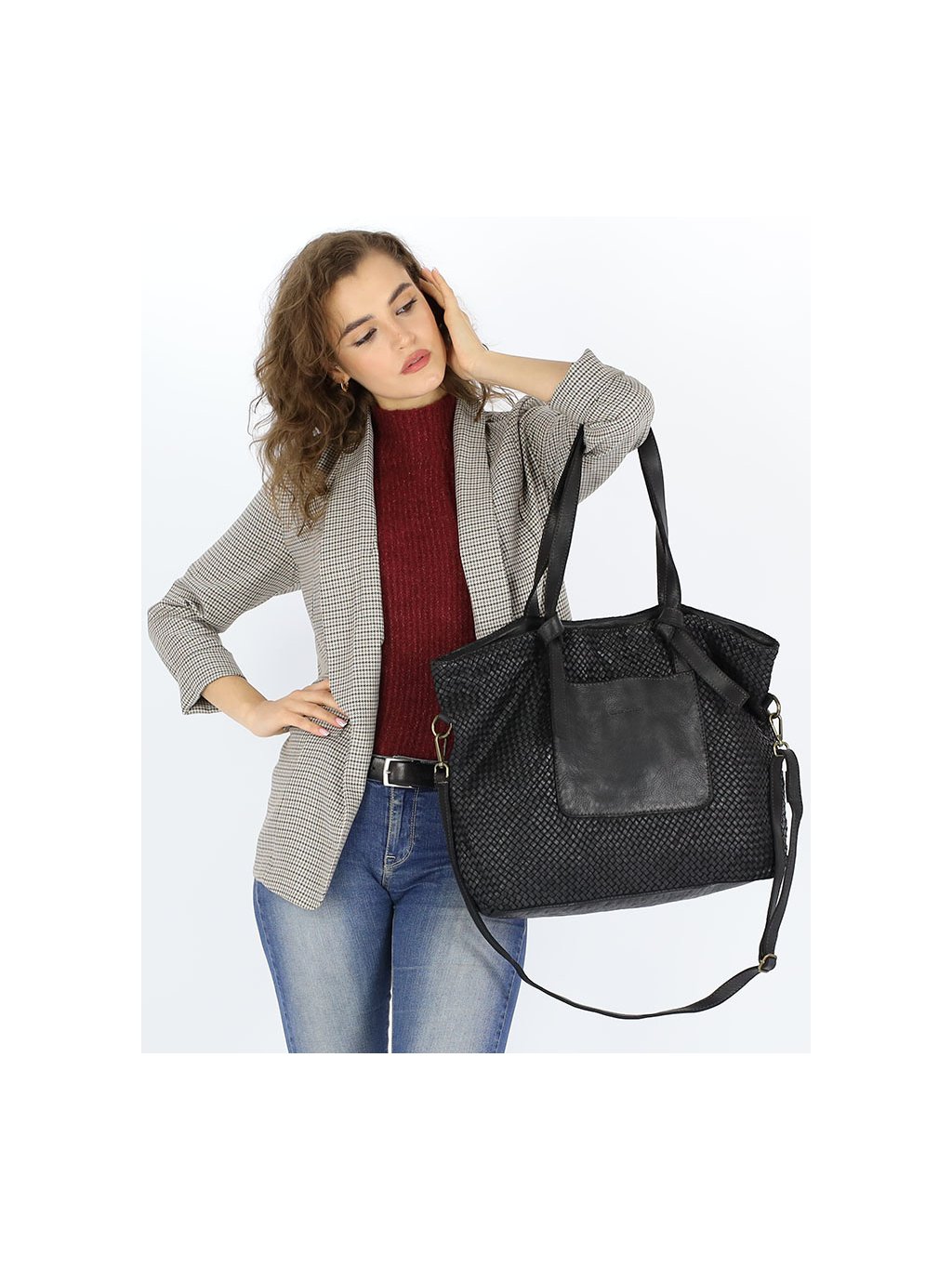 Prostorná pletená kabelka z kolekce značky Marco Mazzini ušitá z pravé přírodní kůže.