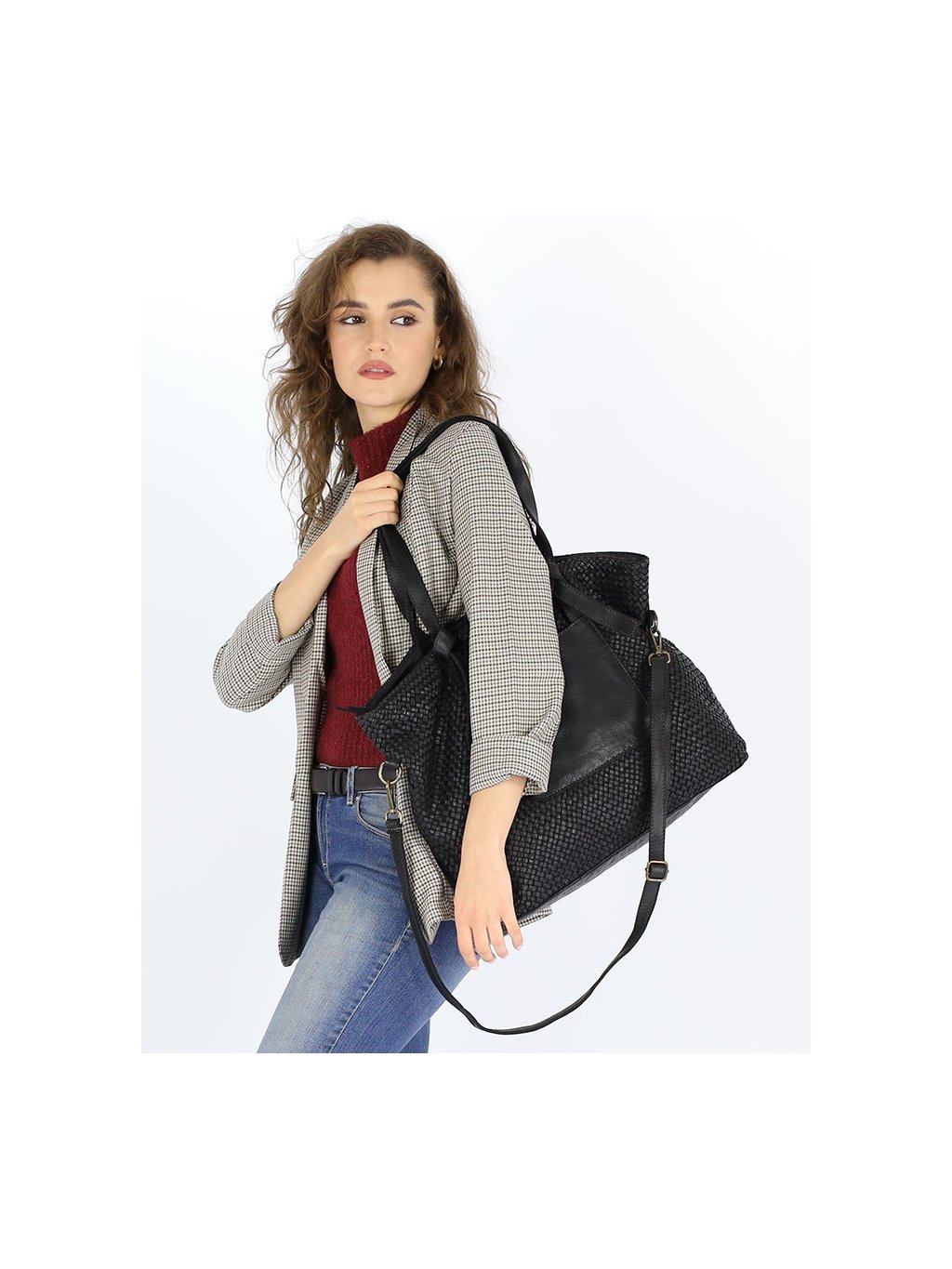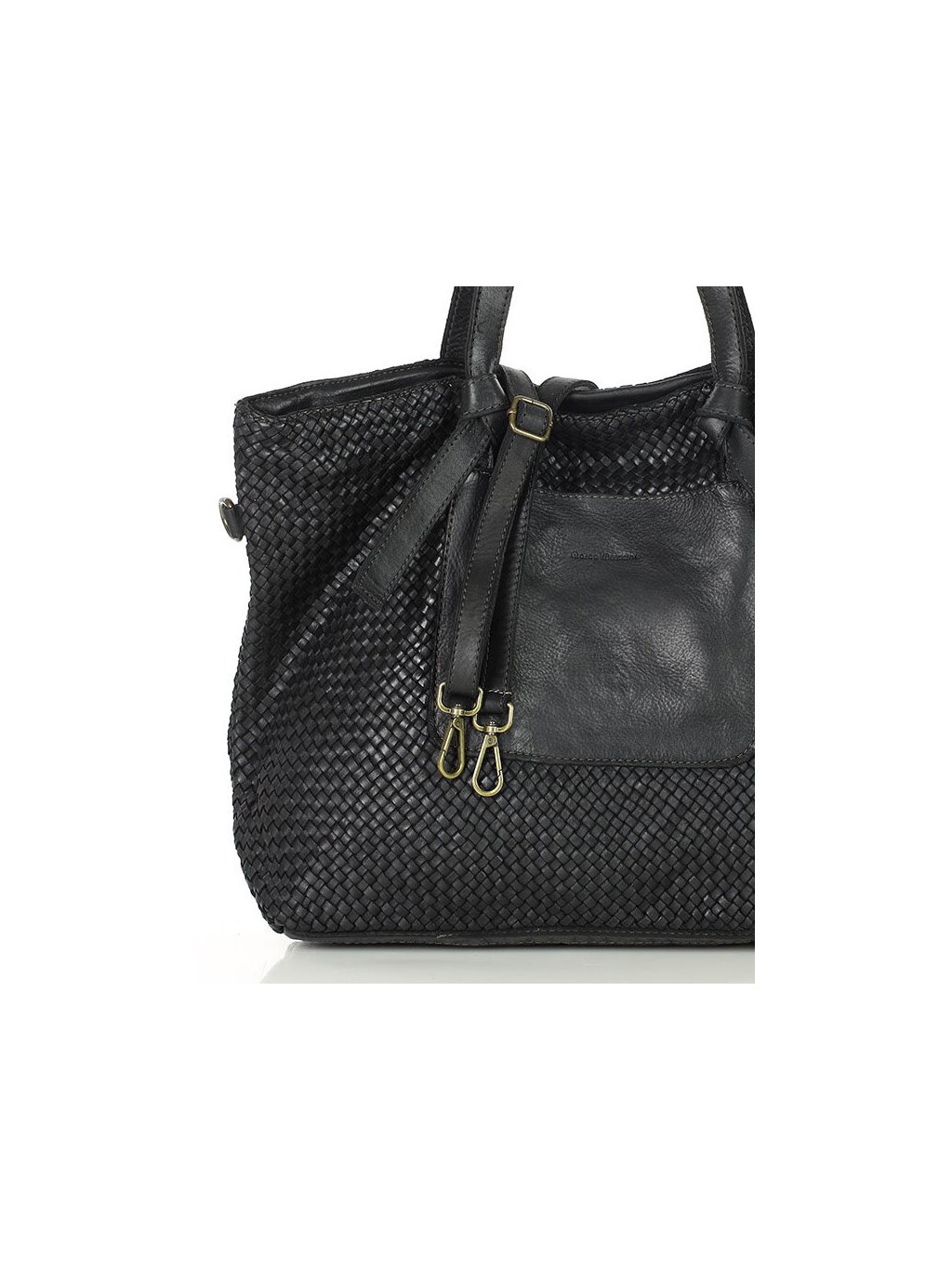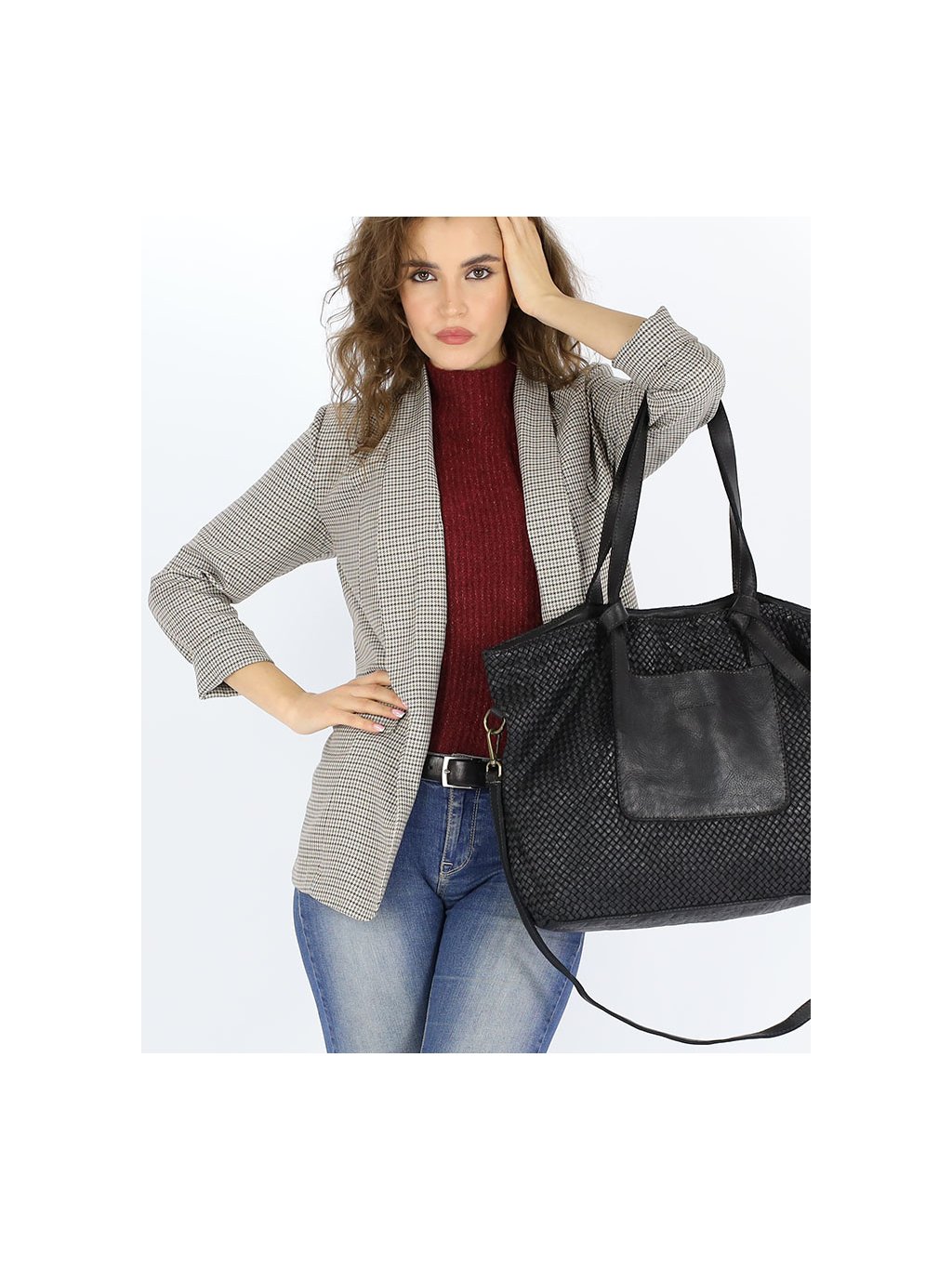 Prostorná pletená kabelka z kolekce značky Marco Mazzini ušitá z pravé přírodní kůže.