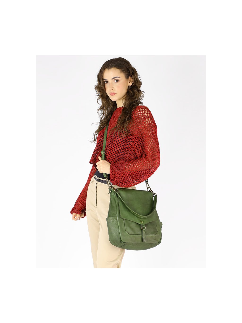 Kožená kabelka přes rameno s možností nošení do kříže z dílny Marco Mazzini spojuje styl městské praktičnosti s ručním řemeslným zpracováním. Tento model nabízí variabilní nošení díky krátkému uchu i dlouhému nastavitelnému popruhu. Hlavní prostor je chráněn zipem i klopou a uvnitř se nachází zipová kapsa a otevřená přihrádka. Další úložné prostory najdeš po stranách kabelky, pod klopou a na zadní straně, což zajišťuje skvělý přehled o všem potřebném. Kabelka je vyrobena z pevné přírodní hovězí kůže a díky pečlivé ruční práci působí nadčasově a autenticky. Jemné nerovnosti a struktura materiálu podtrhují originalitu každého kusu, který se stane spolehlivým a elegantním společníkem pro každodenní využití.