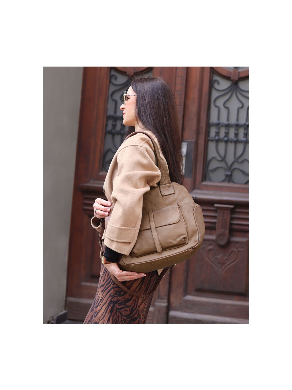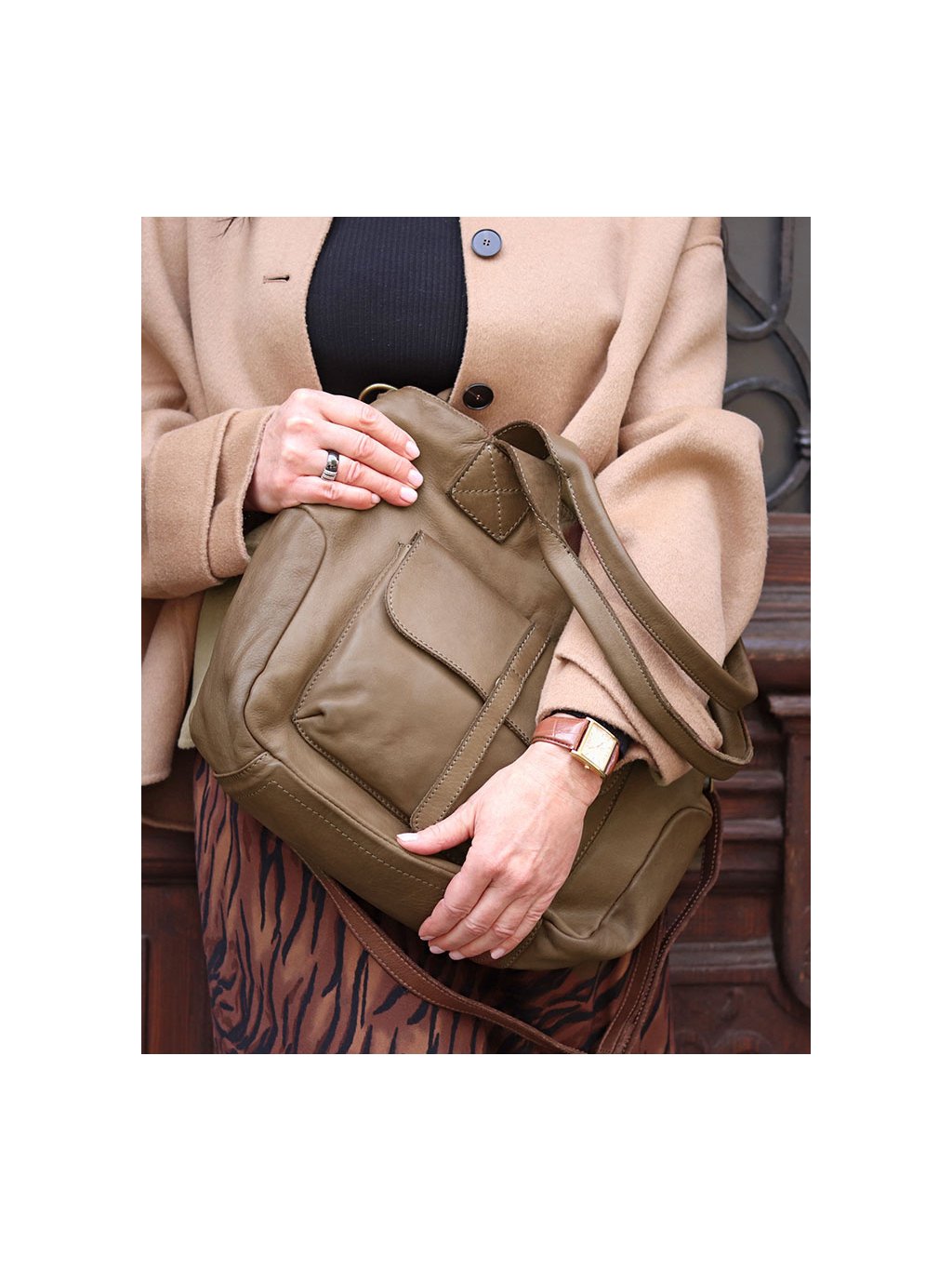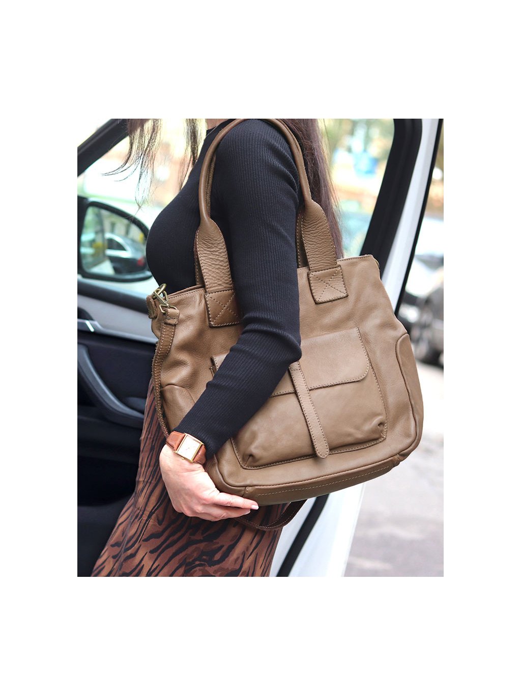 Elegantní městská kožená kabelka navržená pro každodenní pohodlí spojuje klasický styl s praktičností. celá kabelka je vyrobena z měkké přírodní kůže s jemnou strukturou, ručně šitá a následně barvená, díky čemuž je každý kus originál. Hlavní prostor se zapíná na zip a skrývá vnitřní kapsu na zip a otevřenou přihrádku. Na přední straně se nachází kapsa s magnetickým zavíráním, na zadní straně zipová kapsa pro rychlý přístup k telefonu nebo klíčům. Nastavitelný kožený popruh umožňuje pohodlné nošení přes rameno. Drobné odchylky v barvě a struktuře kůže podtrhují autenticitu a charakter ruční práce. Ideální volba na běžné nošení do města, do práce i na nákupy.