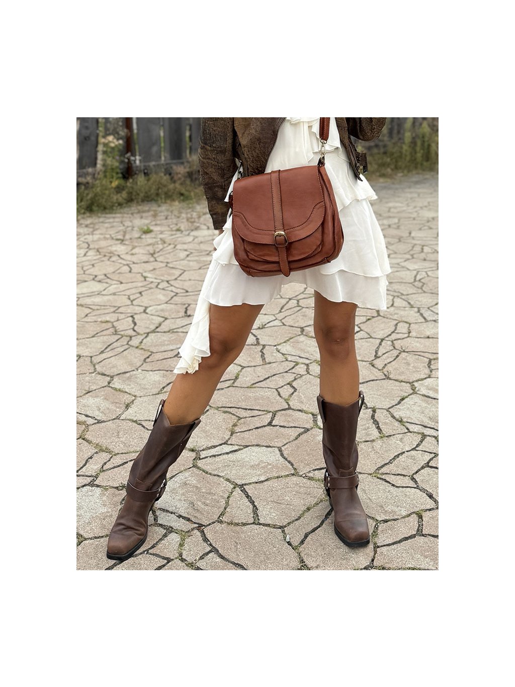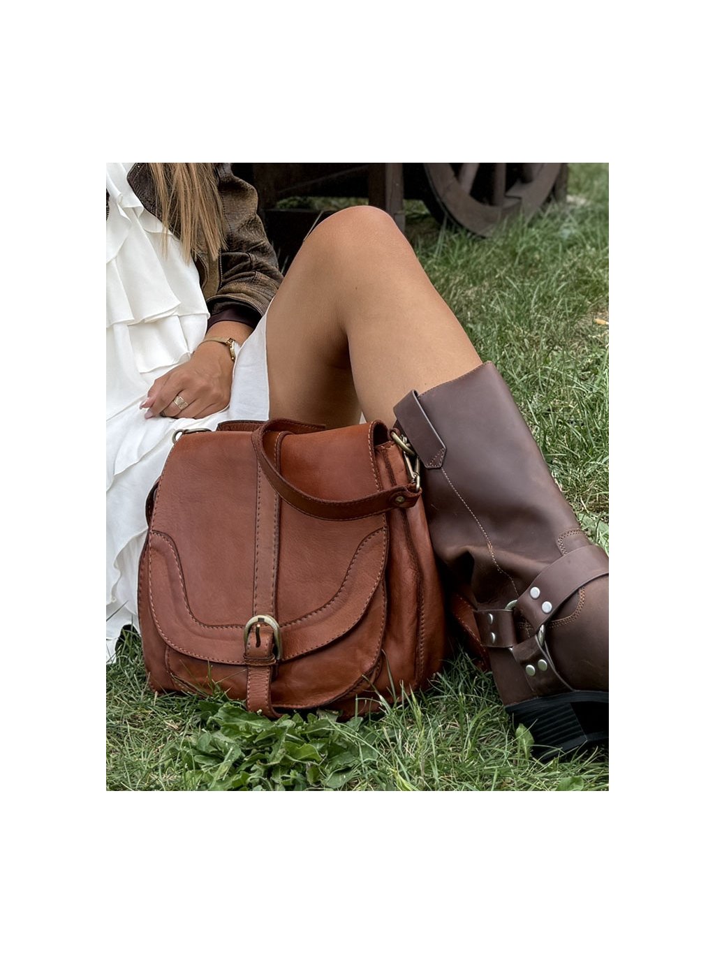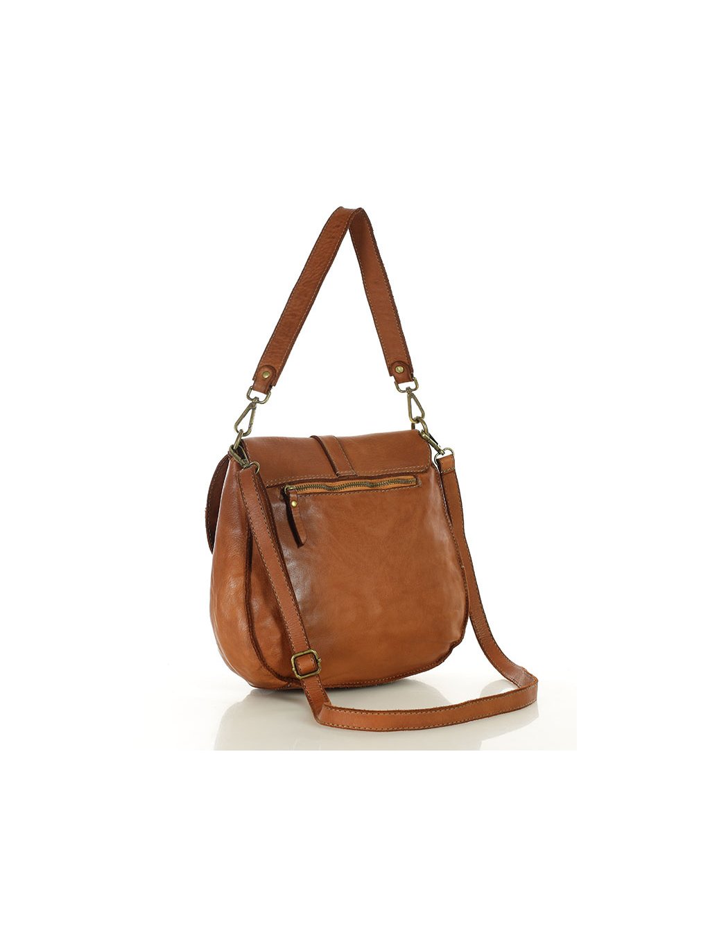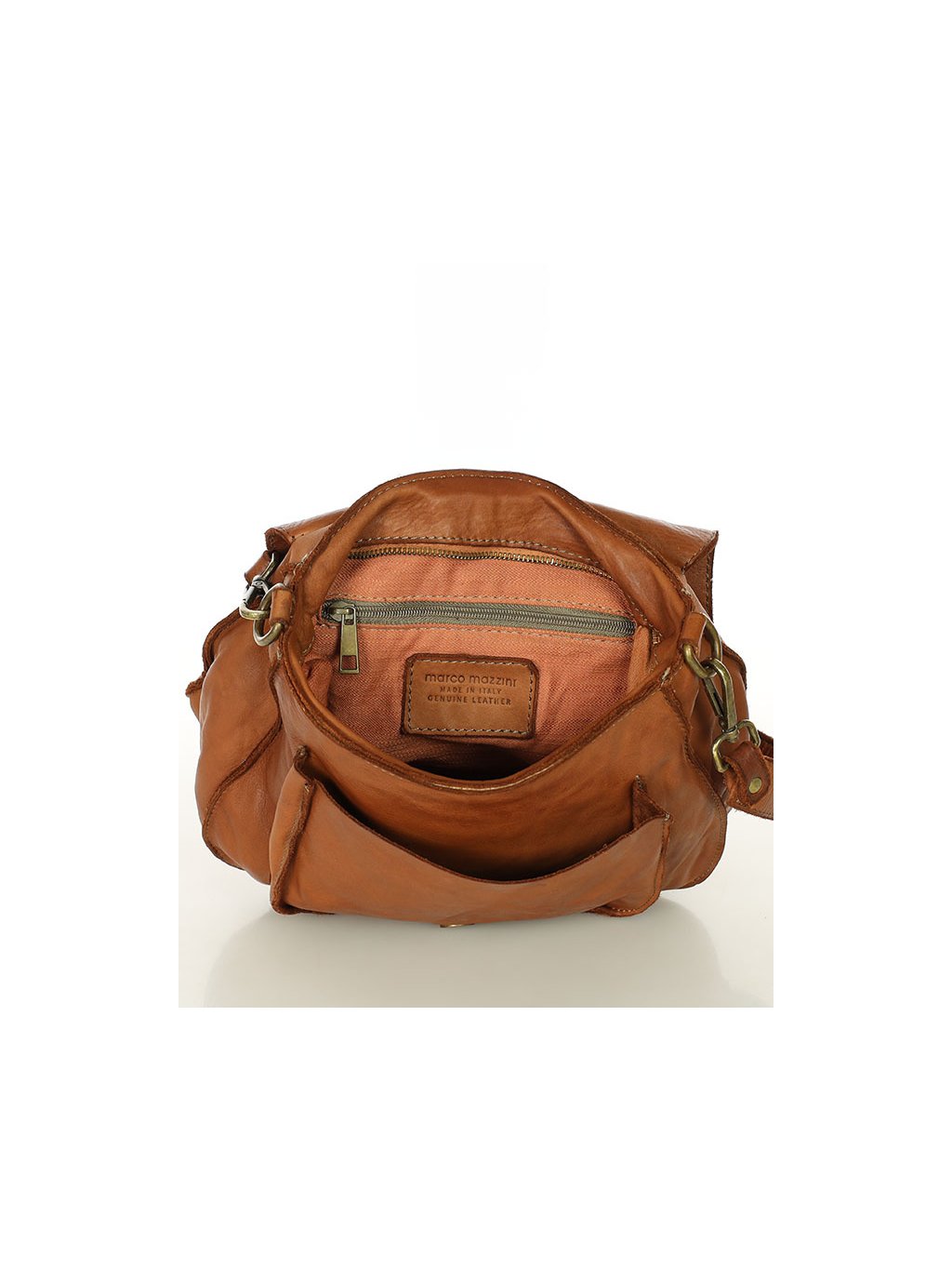 Elegantní kožená kabelka přes rameno z dílny Marco Mazzini je ručně šitá z jemné přírodní hovězí kůže a kombinuje klasický vintage styl s praktickým uspořádáním. Konstrukce kabelky umožňuje pohodlné nošení jako crossbody i jako tašky přes rameno díky dvěma odepínacím popruhům. Hlavní prostor je zabezpečen kombinací klopy s magnetem a zipového zapínání, uvnitř se nachází dvě kapsy včetně jedné na zip. Další úložný prostor nabízí kapsa pod klopou a další kapsa na zadní straně. Polokruhový tvar dodává modelu charakter a nadčasový vzhled, který se hodí jak k běžnému outfitu, tak k formálnějším příležitostem. Každý kus je jedinečný díky přírodní kůži, která získává časem patinu, a preciznímu řemeslnému zpracování, které zaručuje dlouhou životnost.