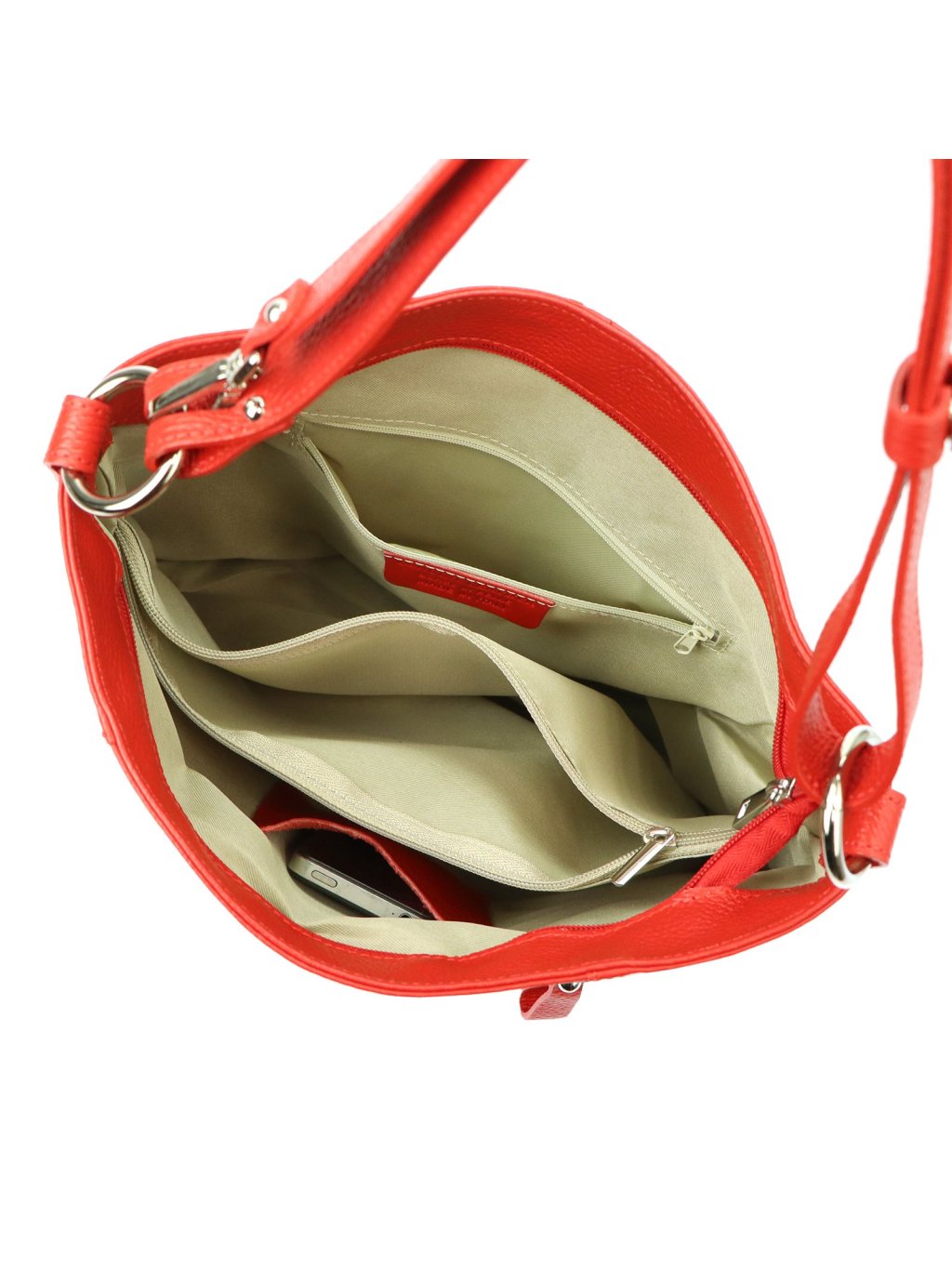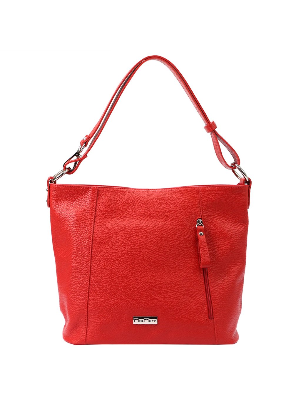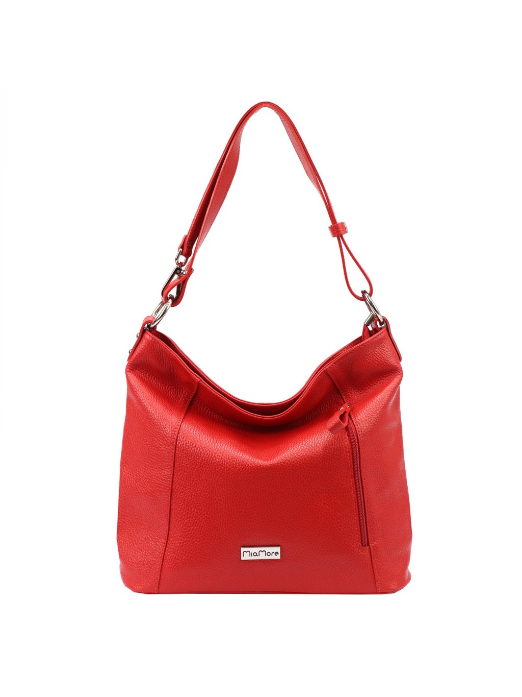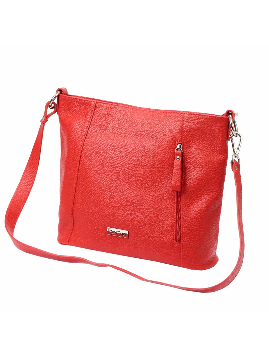 Kožená kabelka MiaMore ušitá z pravé přírodní kůže nabízí praktické členění a nadčasový styl. Hlavní prostor je podšitý pevnou látkovou podšívkou, rozdělený zipovou přepážkou a doplněný o kapsu na zip a otevřenou kapsičku na telefon. Další úložné kapsy se nacházejí na přední i zadní straně kabelky. Model se uzavírá zipem a je vybaven dlouhým uchem, které umožňuje pohodlné nošení na rameni. Rozepnutím zipu uprostřed se délka ucha zdvojnásobí, což umožňuje i pohodlné nošení křížem přes tělo.