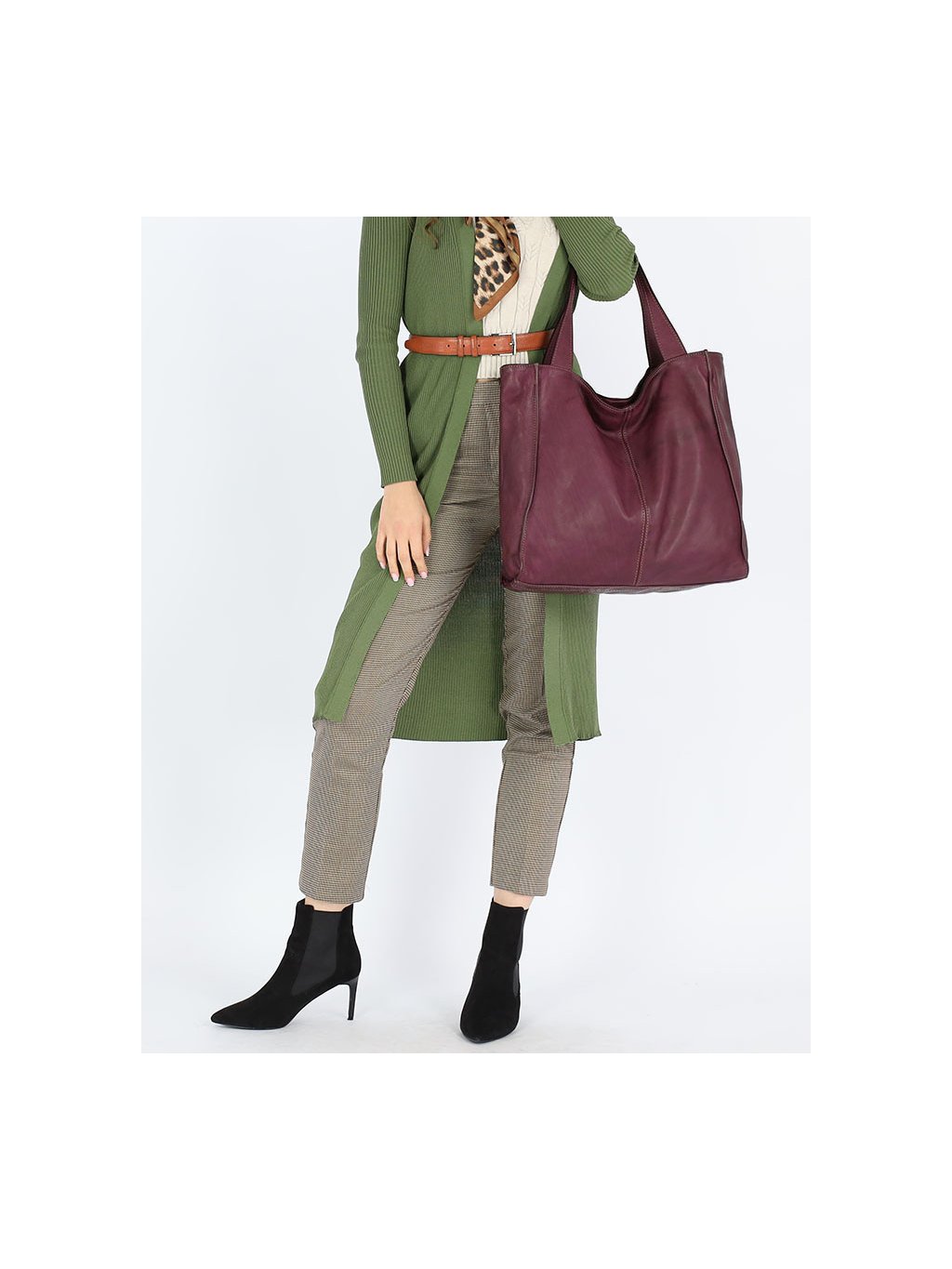 Elegantní kožená kabelka v moderním vintage stylu přizpůsobená potřebám aktivní ženy. Je funkční, pohodlná a díky širokým uchům i pohodlná. Vypadá dobře jak k elegantnímu, tak ležérnímu stylu. Taška je ručně šitá z měkké přírodní telecí kůže, která je ručně dobarvována. Přístup do vnitřního prostoru zajišťuje masivní mosazný zip. Uvnitř je pevná látková podšívka, 3 kapsy, z toho jedna se zapíná zipem. Do tašky se vejde i formát A4.