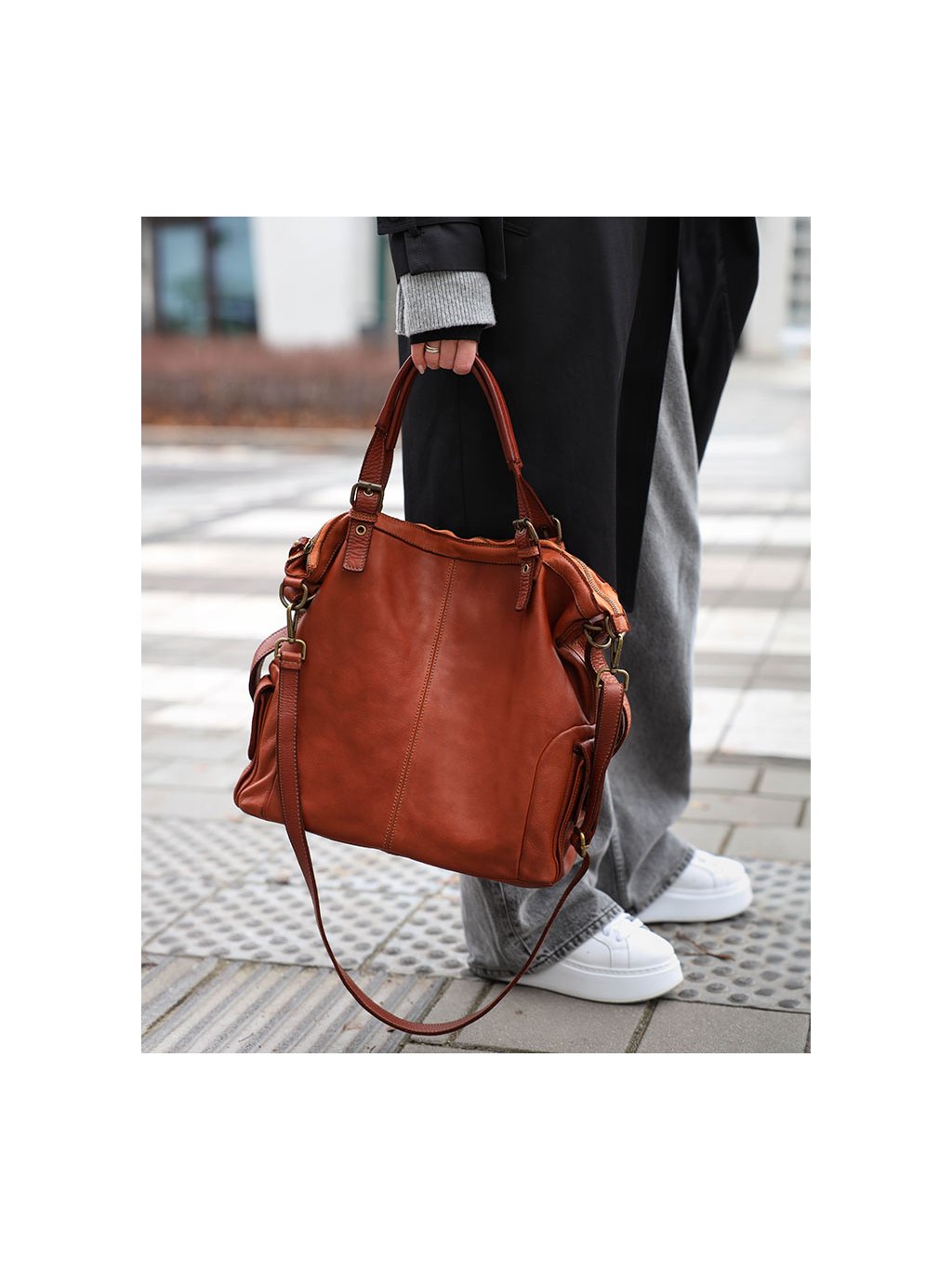 Model z nejnovější kolekce Marco Mazzini je věnován lidem, kteří dávají přednost městskému, ležérnímu stylu. Do této prostorné a funkční kabelky se snadno vejdou, dokumenty formátu A4, i 15,6'' notebook. Vysoký standard zpracování dosažený díky nejjemnějším kůží a italské výrobní preciznosti. Taška je ručně šitá a poté kompletně barvená, zestařena a zušlechtěná v rodinných dílnách ve Florencii. To umožňuje vytvořit úžasný vintage efekt na celé tašce. Přístup do vnitřního prostoru je zajištěn masivním kovový zipem. Vnitřek je precizně podšitý silnou látkovou podšívkou. Uvnitř jsou dvě otevřené kapsy a jedna kapsa na zip. Další praktické kapsy jsou na přední straně, pod klopou a na zadní straně kabelky.