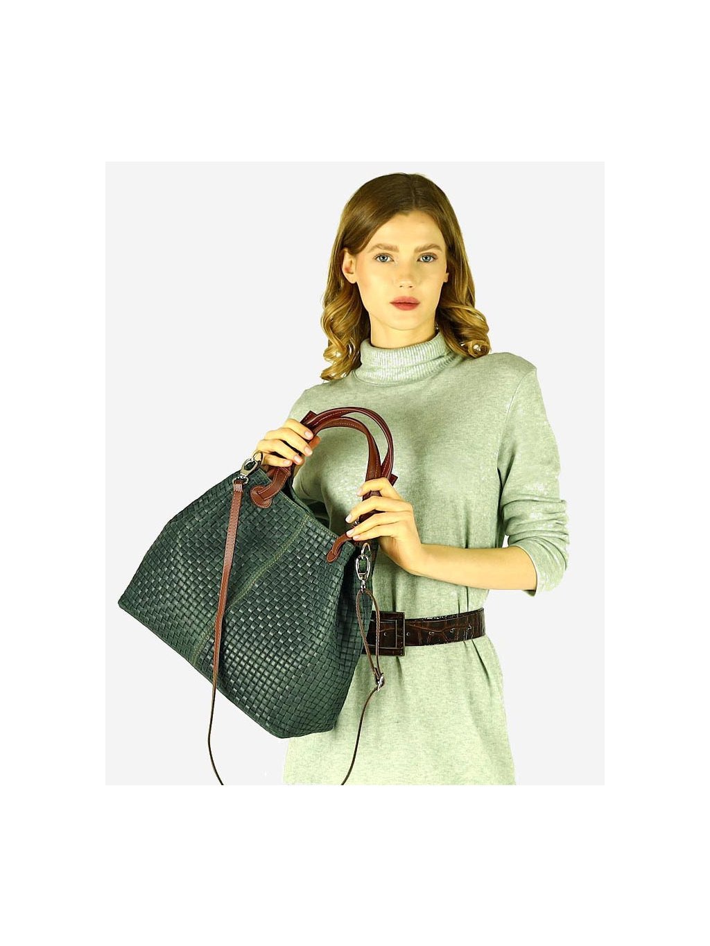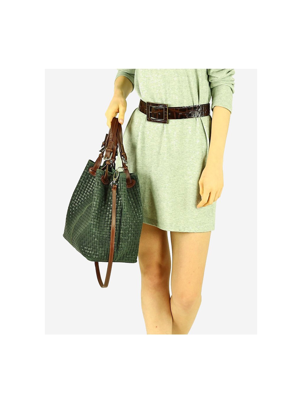 Kožená kabelka přes rameno Mazzini M147 zelená