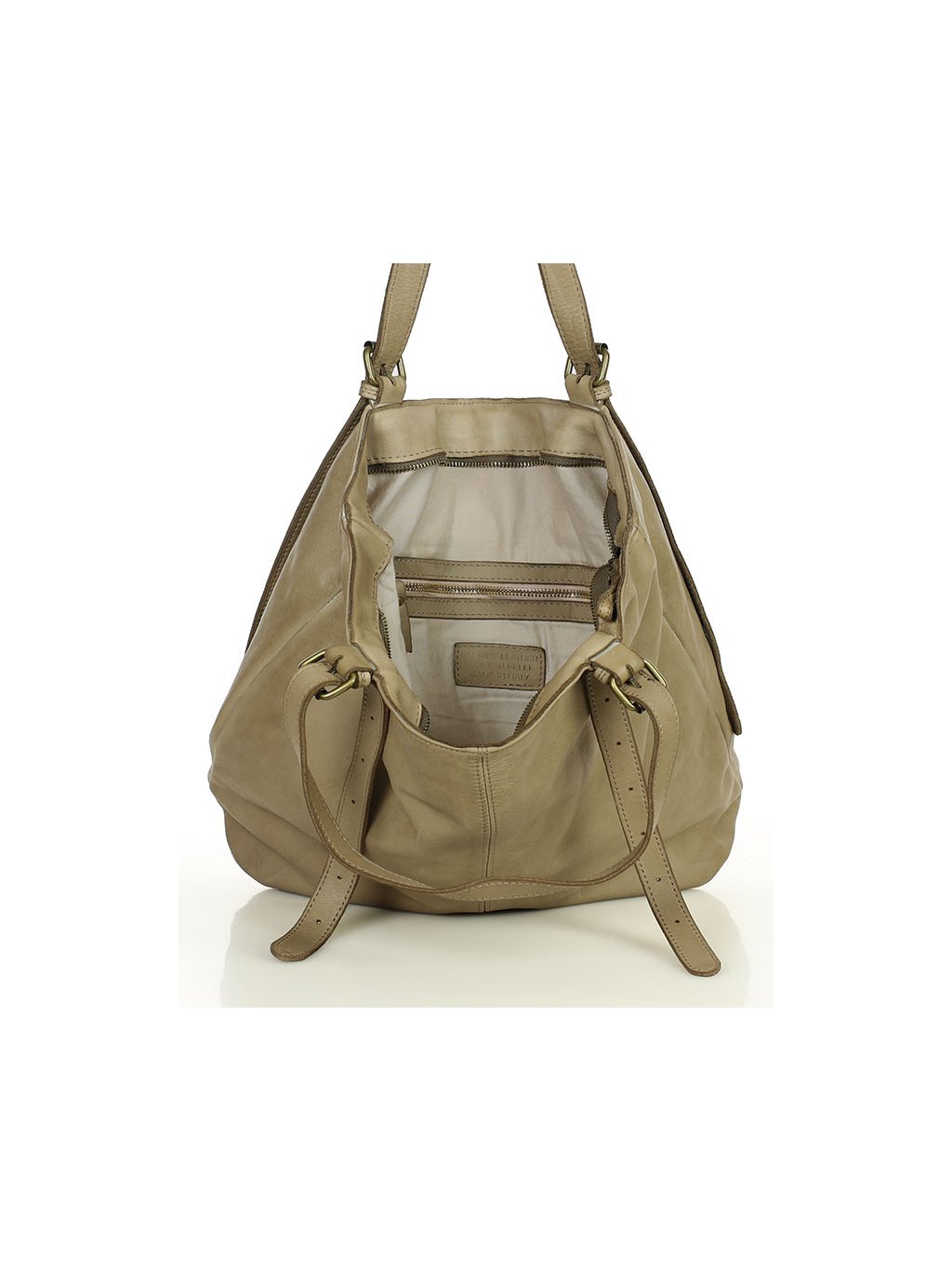Dámská kožená kabelka, která se vyznačuje pohodlím a funkčností. Kabelka je vyrobena z kvalitní přírodní lícové kůže, která je ručně šitá i barvená. Její velkou předností je, že je lehká. Proměnlivá struktura usně je součástí designu výrobku a svědčí o jeho originalitě. Díky profesionálnímu opalování je kůže jemná a příjemná na dotek. Přístup do prostorného vnitřku tašky je zajištěn zipem. Uvnitř je kabelka podšitá látkovou podšívkou. Nabízí jednu uzavřenou kapsu na dokumenty a dvě otevřené, např. na telefon. Dlouhé ucha umožňují pohodlné nošení na rameni.