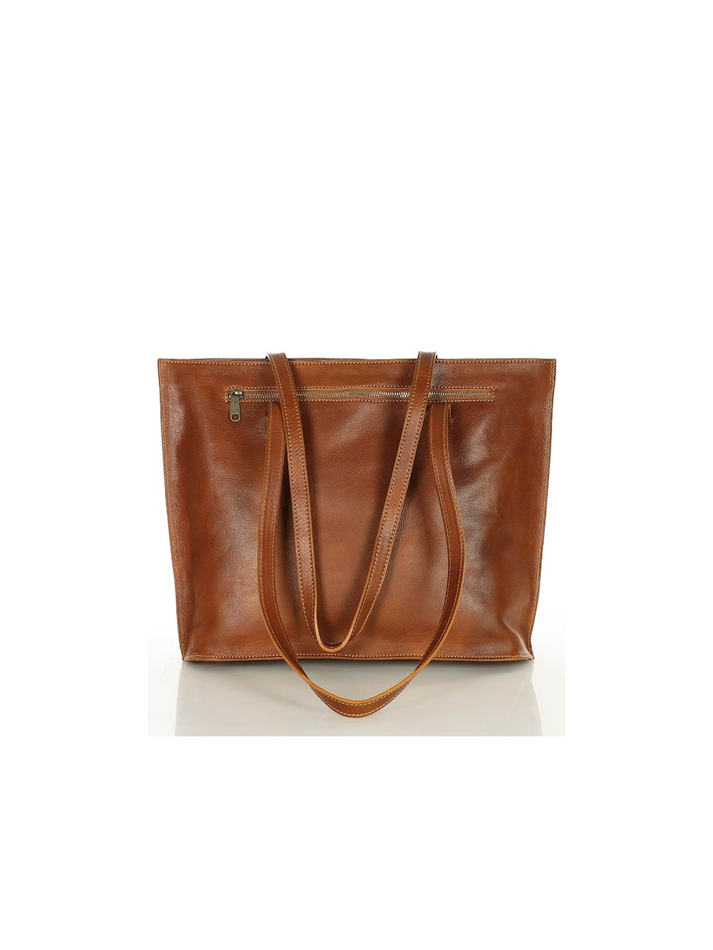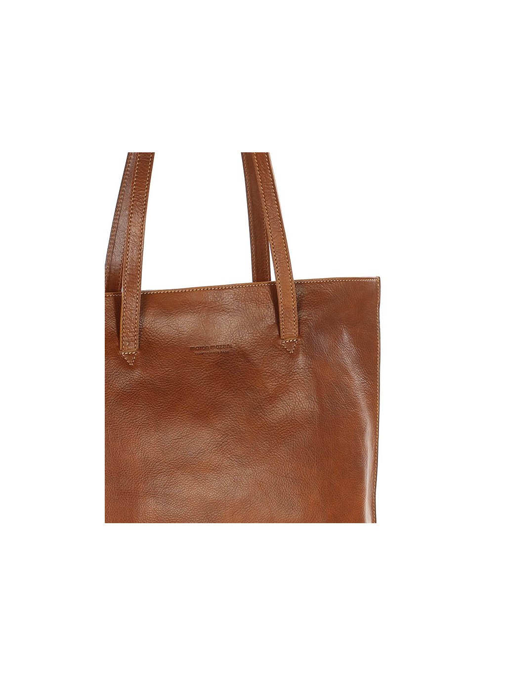 Tato prostorná kabelka od značky Marco Mazzini spojuje italský styl a praktičnost. Celá taška je vyrobená z kvalitní přírodní hovězí kůže v Toskánsku a představuje luxusní ruční práci Italských brašnářů. Kabelka se uzavírá masivním kovovým zipem, vnitřek nabízí zipovou kapsu a dvě otevřené přihrádky, doplněné o podšívku v kostkovaném vzoru. Vnější zipem uzavíratelná kapsa nabízí další úložný prostor. Dlouhá a široká ucha umožňují pohodlné nošení na rameni. Tato kabelka pojme i formát A4, proto je ideální pro každodenní nošení do práce nebo na méně formální příležitosti.