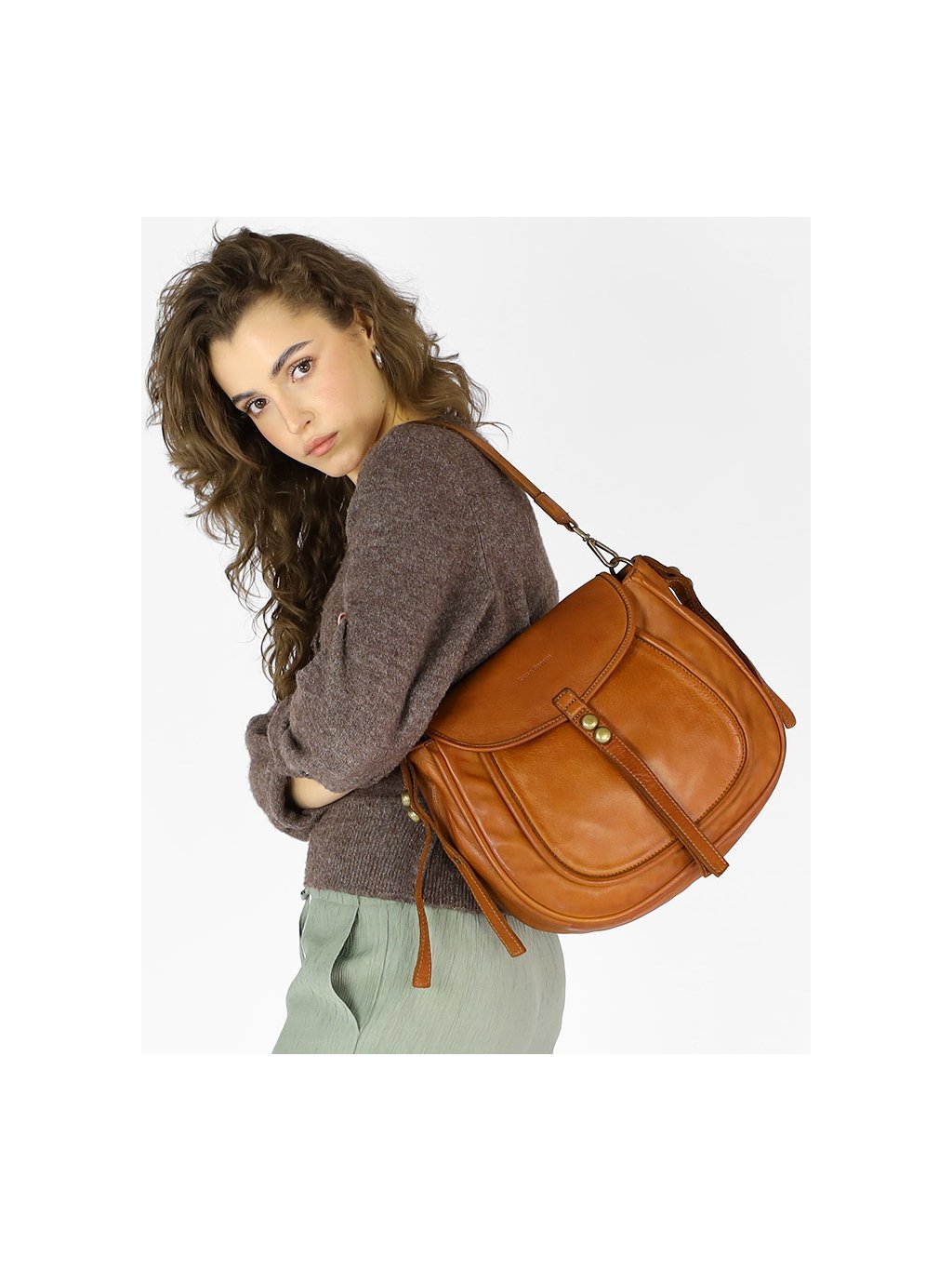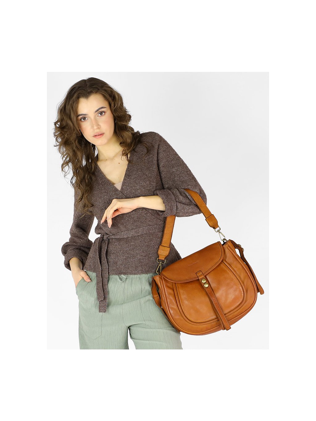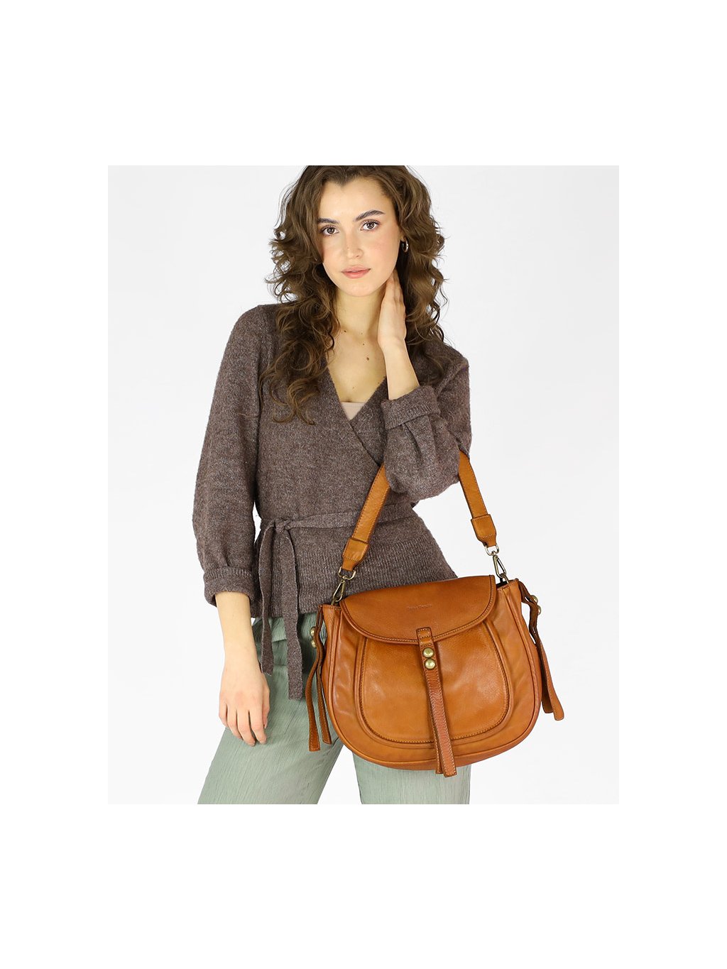 Kožená kabelka přes rameno Mazzini M67 camel
