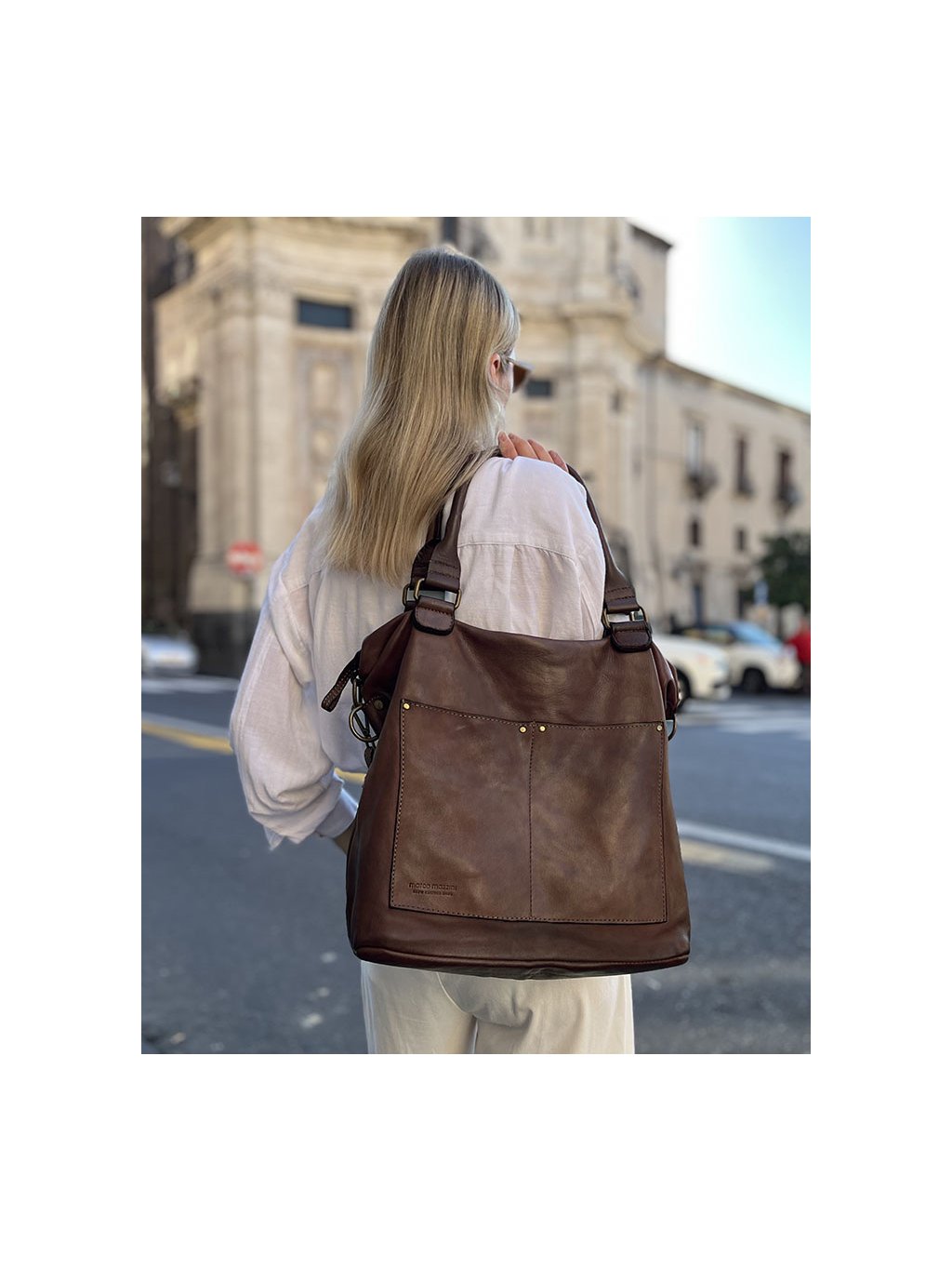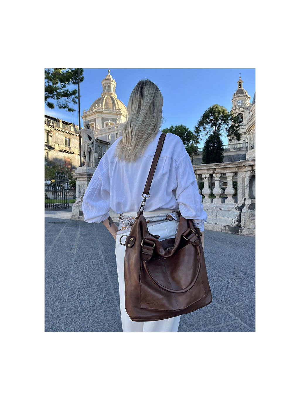Italští návrháři znají tajemství dokonalé kabelky! Ženám, které mají rády nadčasový styl a'la Moda Italiana a nejvyšší kvalitu zpracování, doporučujeme tuto značkovou italskou kabelku. Taška je vyrobena z kvalitní přírodní kůže typu vintage. Taška je ručně šitá a barvená podle nejnovějších trendů v nejlepších italských koželužnách, díky čemuž je každý kousek výjimečný a jedinečný. Přístup do vnitřku tašky je chráněný masivním kovovým zipem. Uvnitř jsou 3 kapsy, z toho jedna na zip. Do tašky se vejde formát A4, proto je ideální jako kabelka do práce. Taška se dodává s dlouhým popruhem přes rameno.
