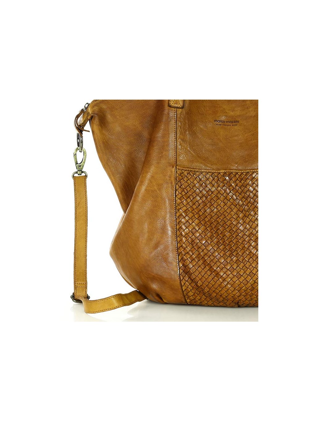 Elegantní dámská kožená taška z provenience módní značky Marco Mazzini. Celá kabelka je ručně šitá, poté propletená, a nakonec dobarvená podle nejnovějších trendů v nejlepších italských koželužnách u italské Florencie. Proměnlivá struktura usně je součástí designu výrobku a dokládá jeho autenticitu. Kožená kabelka městského střihu je skvělým a nadčasovým doplňkem každé stylizace. Celá kabelka je chráněná masivním kovovým zipem. Jednokomorový interiér skrývá jednu zipem uzavíratelnou a dvě otevřené kapsy. V případě potřeby lze na kabelku připnout dlouhý, nastavitelný řemínek. Do kabelky se vejdou dokumenty formátu A4.