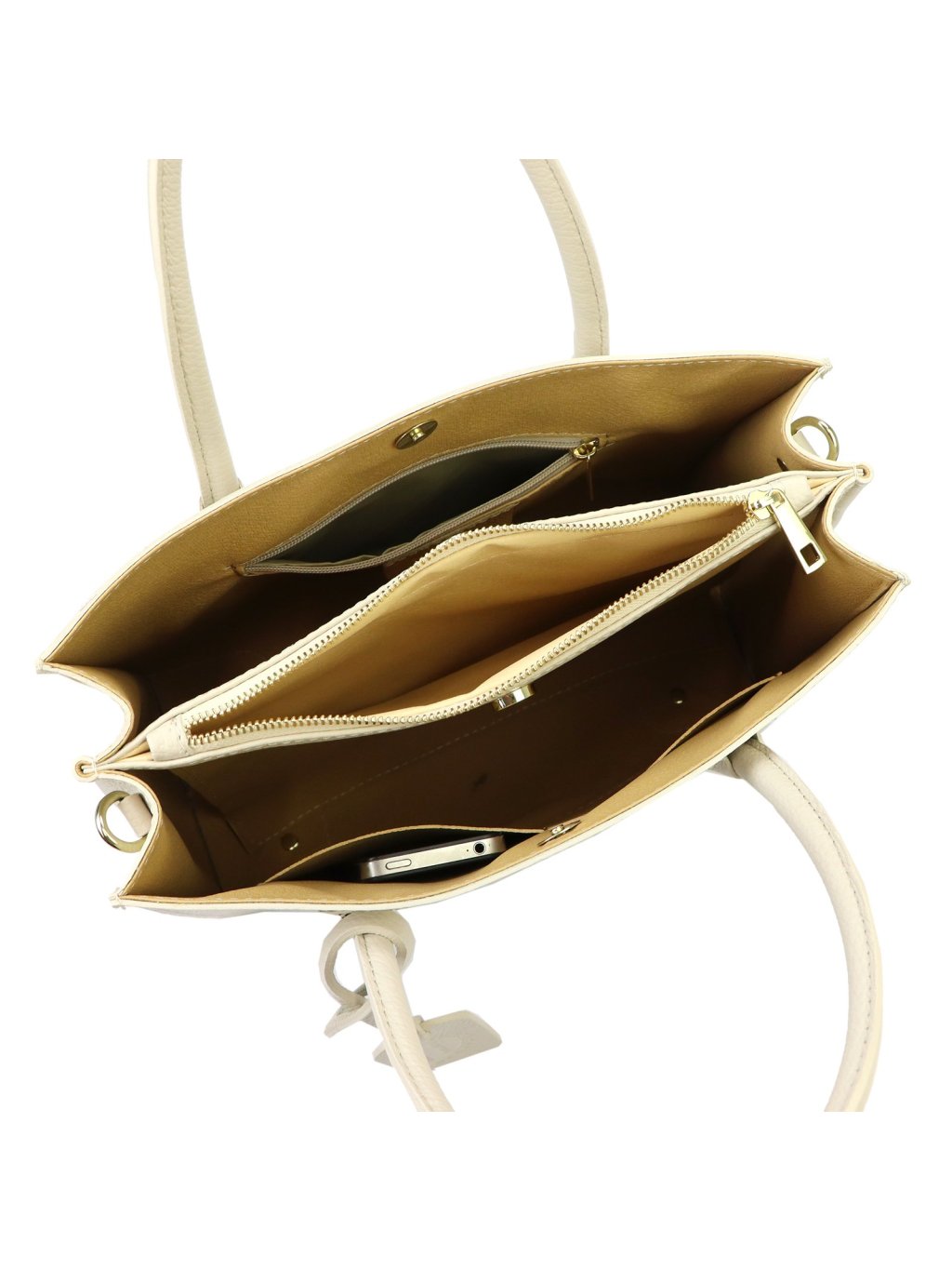 Dámská kožená kabelka Kožená kabelka přes rameno MiaMore vyrobená z italské měkké kůže. Prostorný vnitřek je tvořen dvěma velkými přihrádkami, oddělenými uzavíratelnou kapsou, dvě otevřené kapsičky a jednu kapsu na zip. Na venkovní čelní straně se nachází prostorná, leč téměř skrytá kapsa, zajištěná jednak zipem a za druhé okrasným, ale funkčním zámečkem. Taška se může nosit jak na předloktí, tak přes rameno, a to díky přídavnému dlouhému řemínku.
