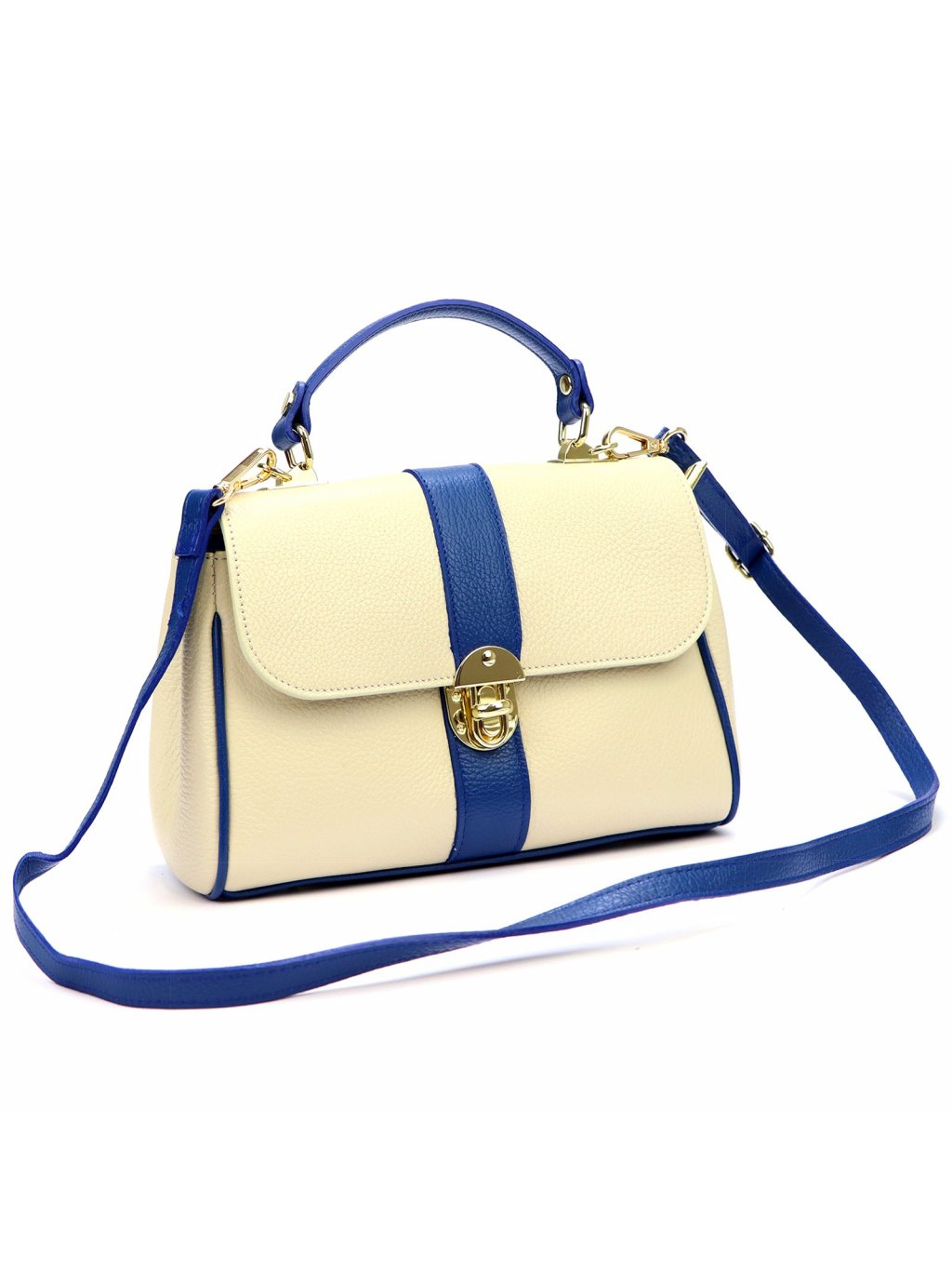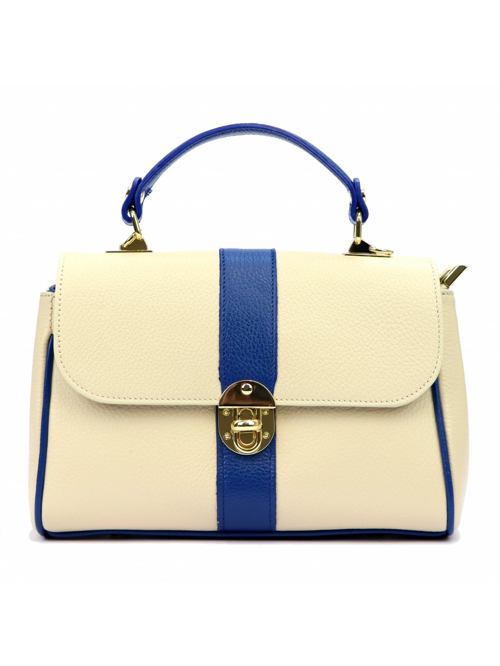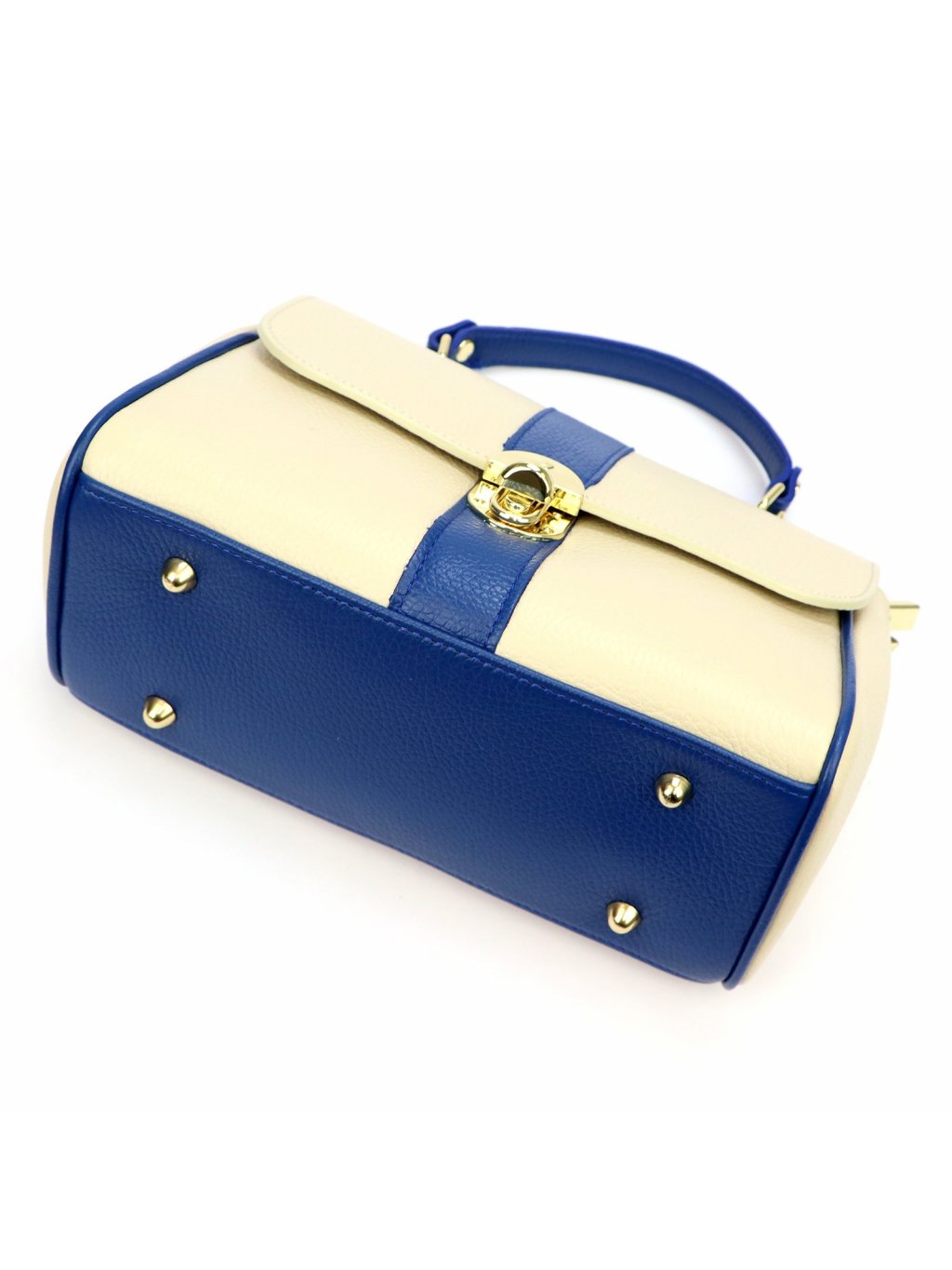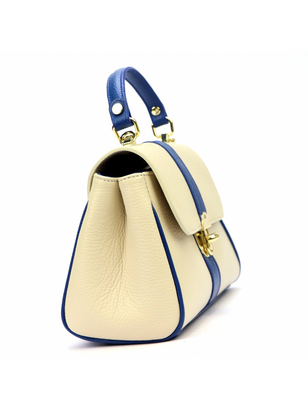 Kožená kufříková kabelka Luka 20-098 béžová / modrá