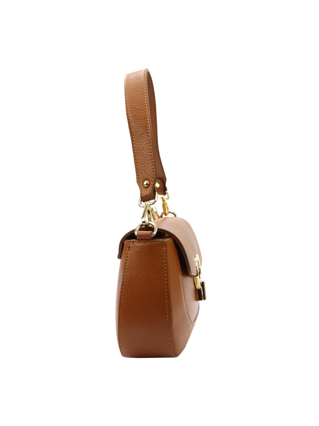 Menší dámská kožená kabelka kufříková kabelka Luka je vyrobená z přírodní kůže typu dollaro, která se vyznačuje jemnou strukturou a odolným povrchem. Zavírání je řešeno zipem a klopou s kovovým zapínáním. Uvnitř kabelky najdete podšívku, kapsičku na zip a prostor bez předělu. Kabelka má jeden dlouhý nastavitelný popruh, který umožňuje nošení přes rameno i křížem přes tělo. Zlaté kovové detaily dodávají kabelce luxusní vzhled.