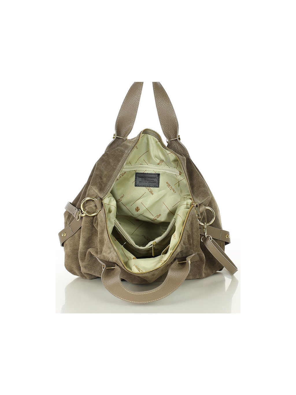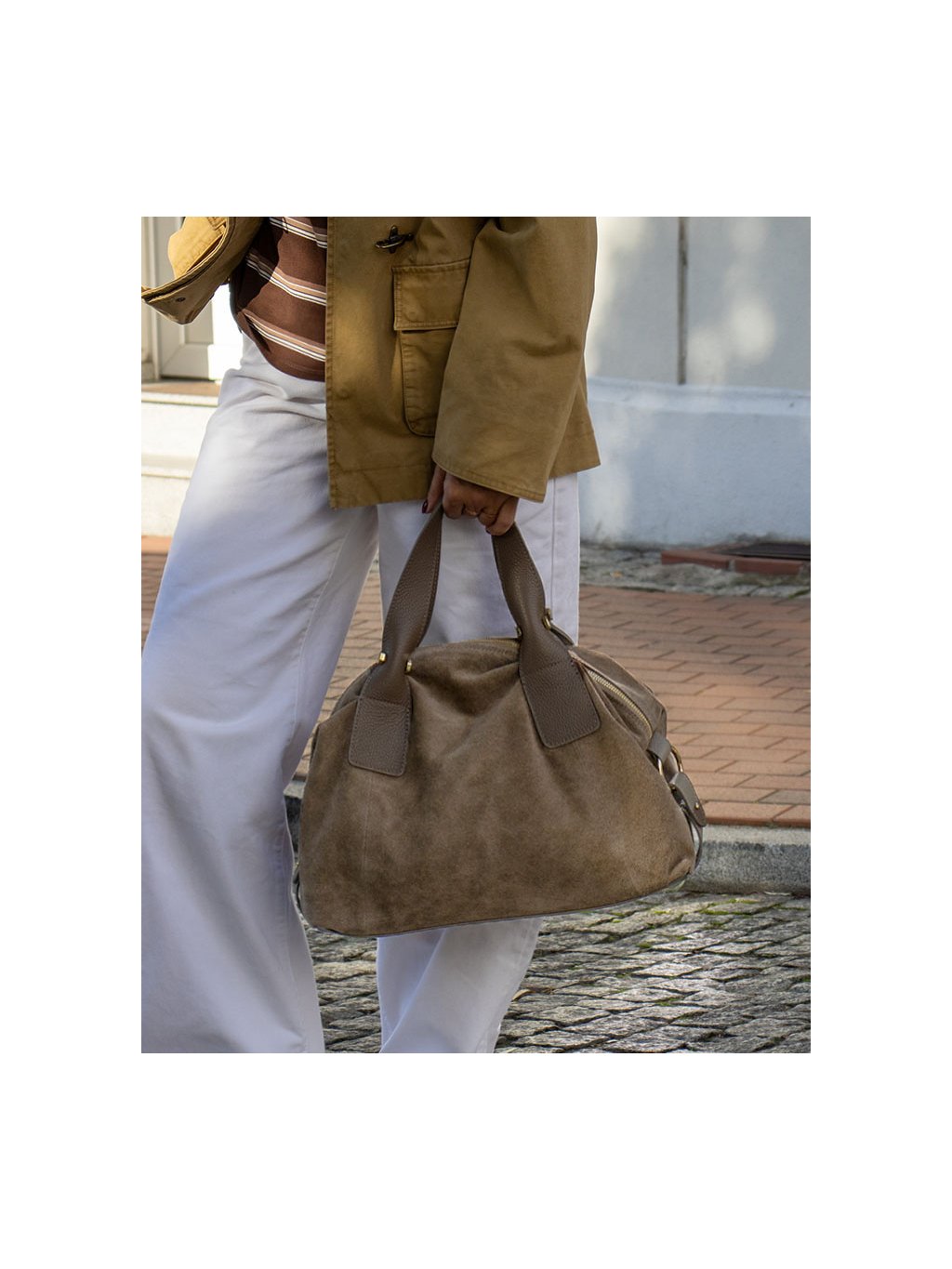 Dámská kožená kabelka typu hobo spojuje moderní městský styl s praktičností pro každodenní využití. Minimalistický tvar a měkká hovězí kůže zajišťují pohodlné nošení a přirozený vzhled. Prostorný interiér se uzavírá zipem a nabízí přehledné uspořádání díky vnitřní kapse na zip a otevřené přihrádce. Kabelka je vyrobena z kvalitní přírodní hovězí kůže s jemnou strukturou, která je odolná vůči běžnému opotřebení. Pevná ucha umožňují pohodlné nošení na rameni a nadčasový design z ní činí univerzální doplněk vhodný pro ležérní i elegantní městské outfity. Precizní zpracování a italská řemeslná tradice podtrhují dlouhou životnost tohoto modelu.