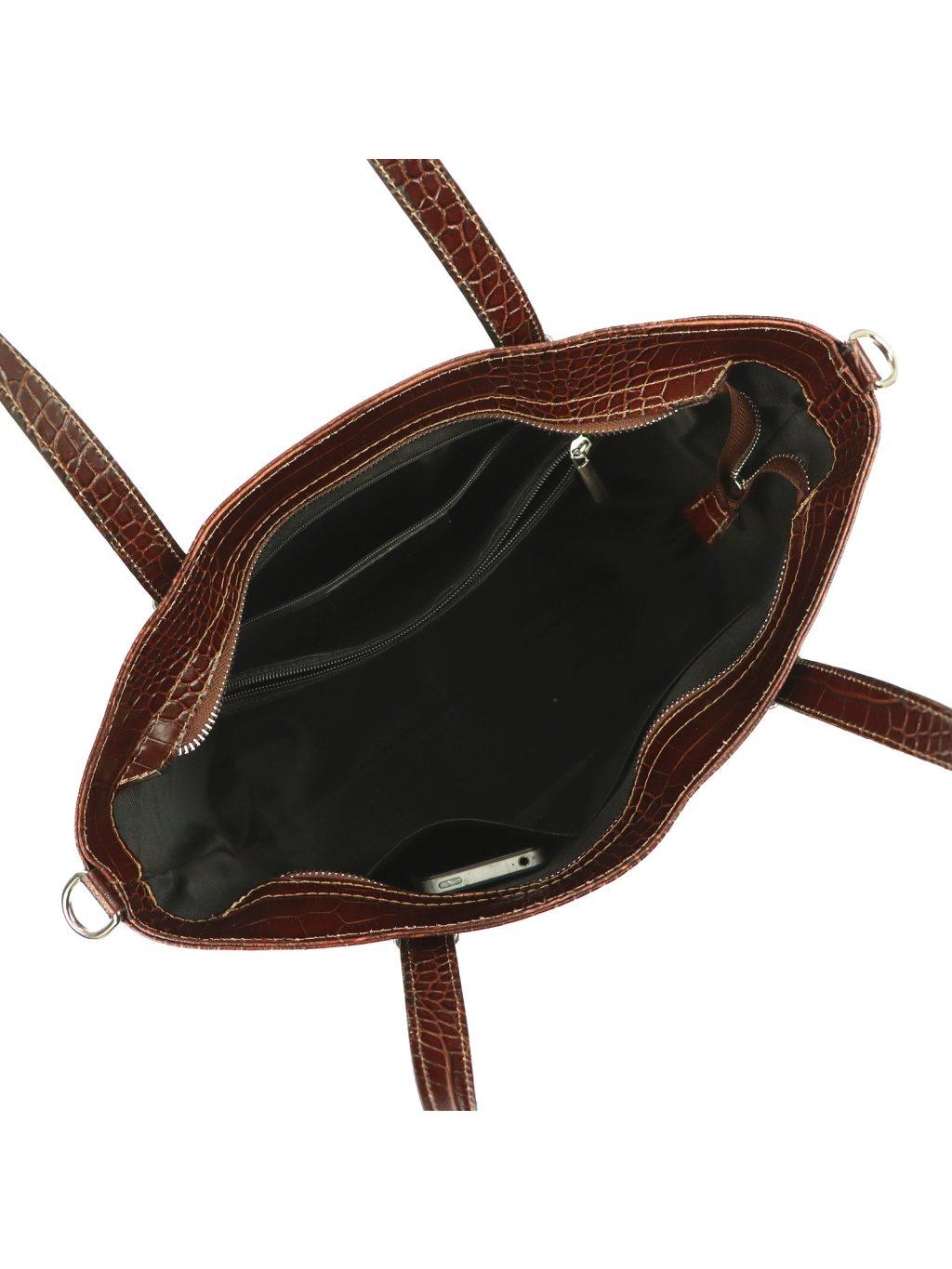 Elegantní kabelka značky MiaMore ušitá z přírodní kůže. Kabelka je tvarově jednoduchá, ale velmi prostorná a nadčasová. Kabelka se zapíná za pomoci zipu a její vnitřní část kabelky je podšitá látkou. Vnitřní prostor kabelky je neděleny a po jeho stranách najdete dvě kapsičky na zip a dvě menší kapsičky na drobnosti. Kabelka má pevné dno a spodní část kabelky chrání čtyři kovové nožky. Do kabelky se pohodlně vejdou dokumenty formátu A4. Uši kabelky jsou dostatečně dlouhé a je možné ji nosit přehozenou přes rameno. Součástí kabelky je nastavitelný a odnímatelný popruh přes rameno.
