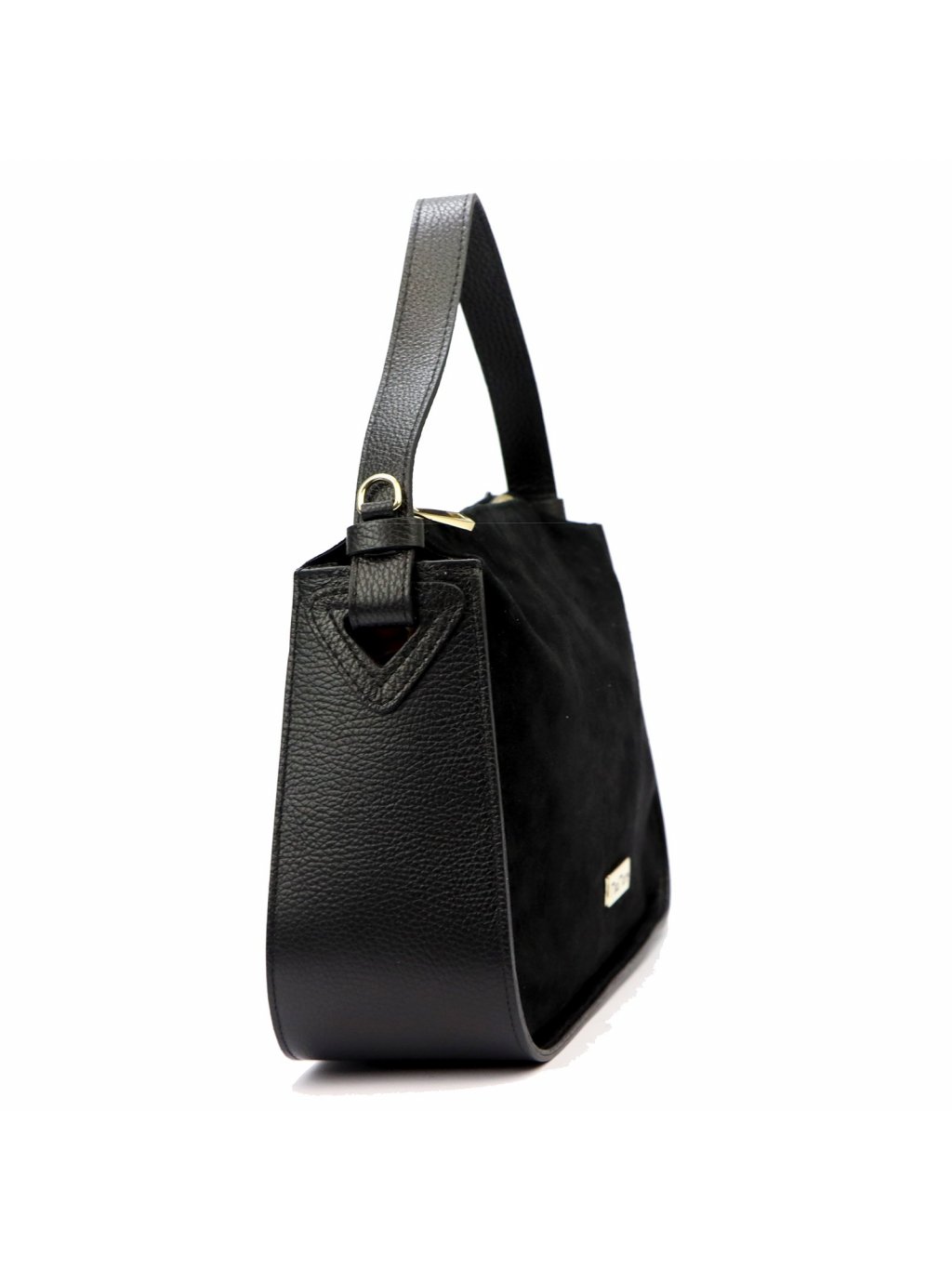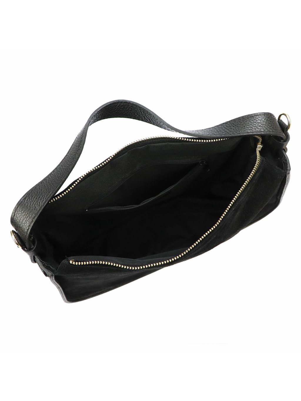 Tato italská kabelka MiaMore je ušitá z přírodní kůže a je doplněna a kovové prvky stříbrné barvy.