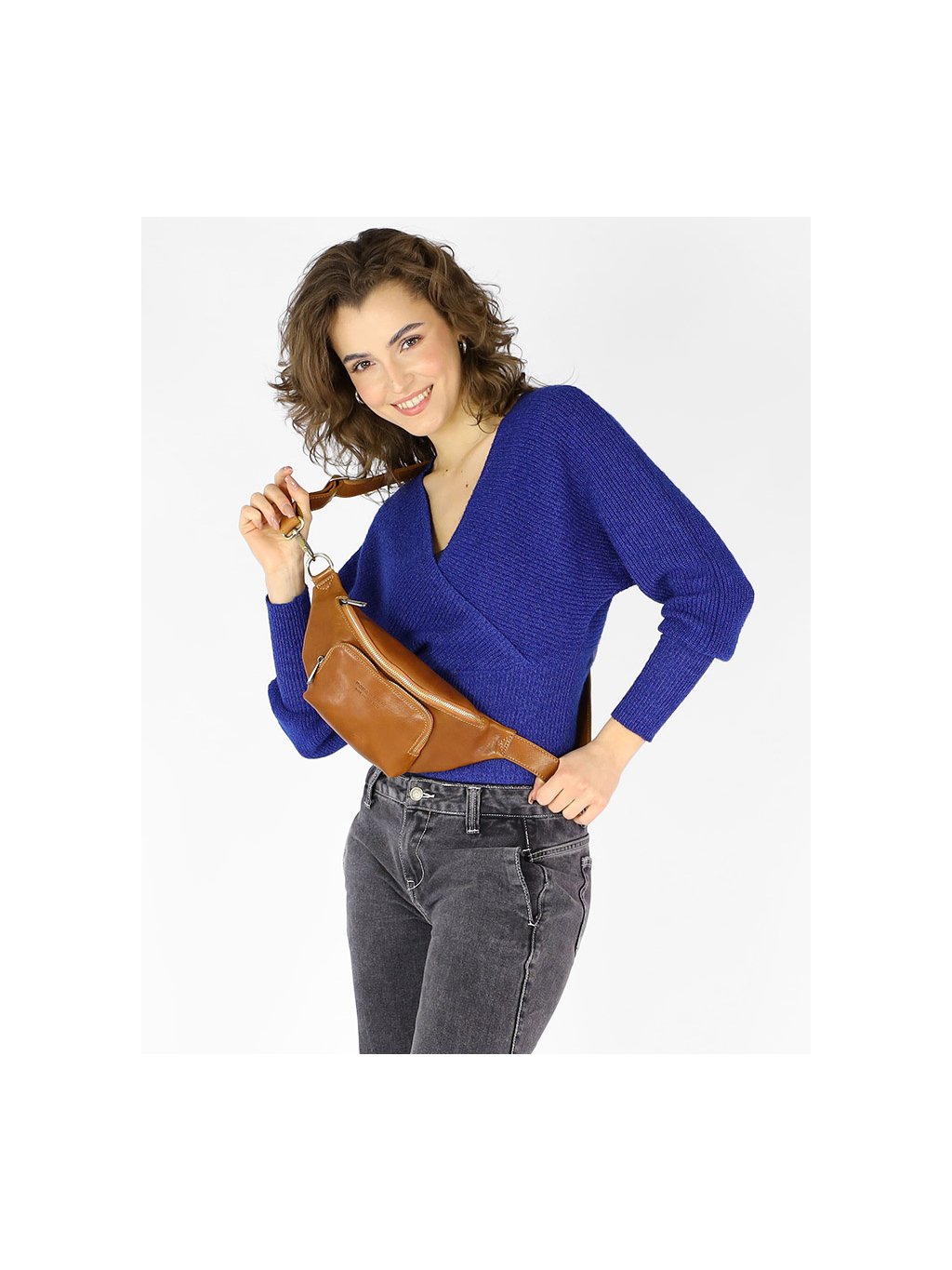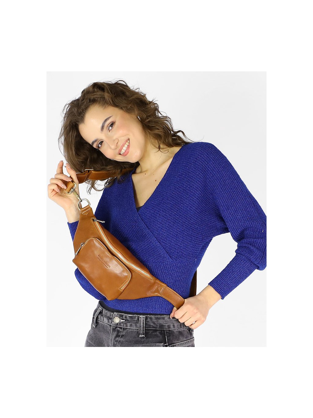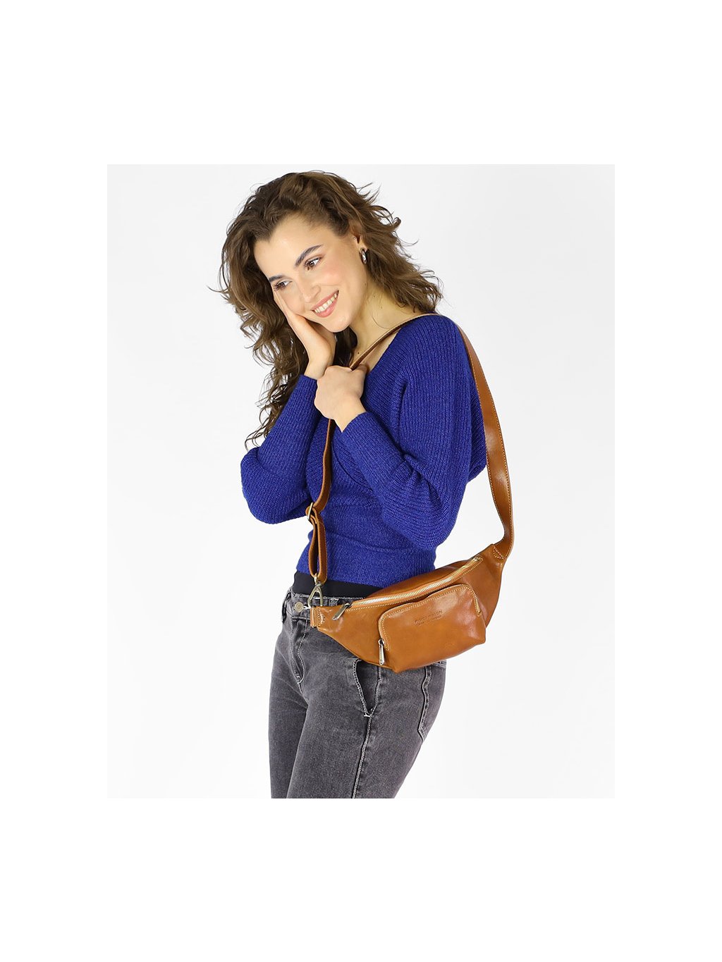 Kožená ledvinka na širokém popruhu je ideálním doplňkem pro každodenní nošení i cestování. Vyrobena z prvotřídní přírodní hovězí kůže barvené tamponováním v Toskánsku, která s časem získává jedinečný charakter a přirozenou patinu. Hlavní prostor se uzavírá masivním zipem, uvnitř se nachází bavlněná podšívka v kostkovaném vzoru a kapsa na zip s otevřenou přihrádkou. Přední zipová kapsa umožňuje rychlý přístup k nejdůležitějším drobnostem. Nastavitelný široký popruh poskytuje pohodlné nošení přes rameno, do kříže nebo v pase, díky čemuž se kabelka přizpůsobí každé situaci. Lehká konstrukce a kompaktní rozměry z ní dělají ideální volbu pro aktivní ženy, které chtějí mít důležité věci stále při sobě při procházce, v letadle i při městském pohybu.
