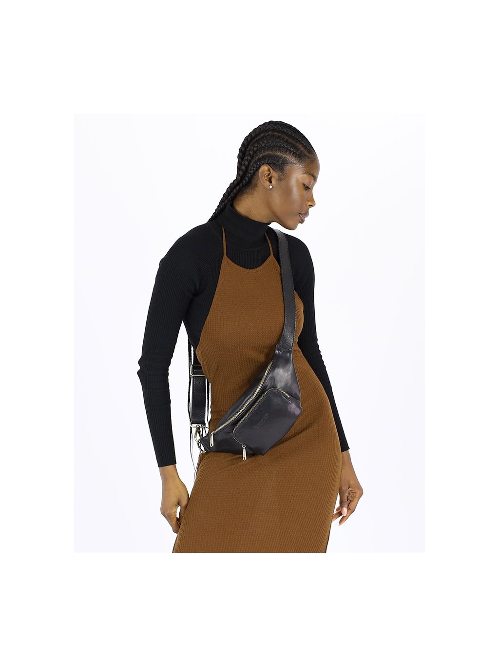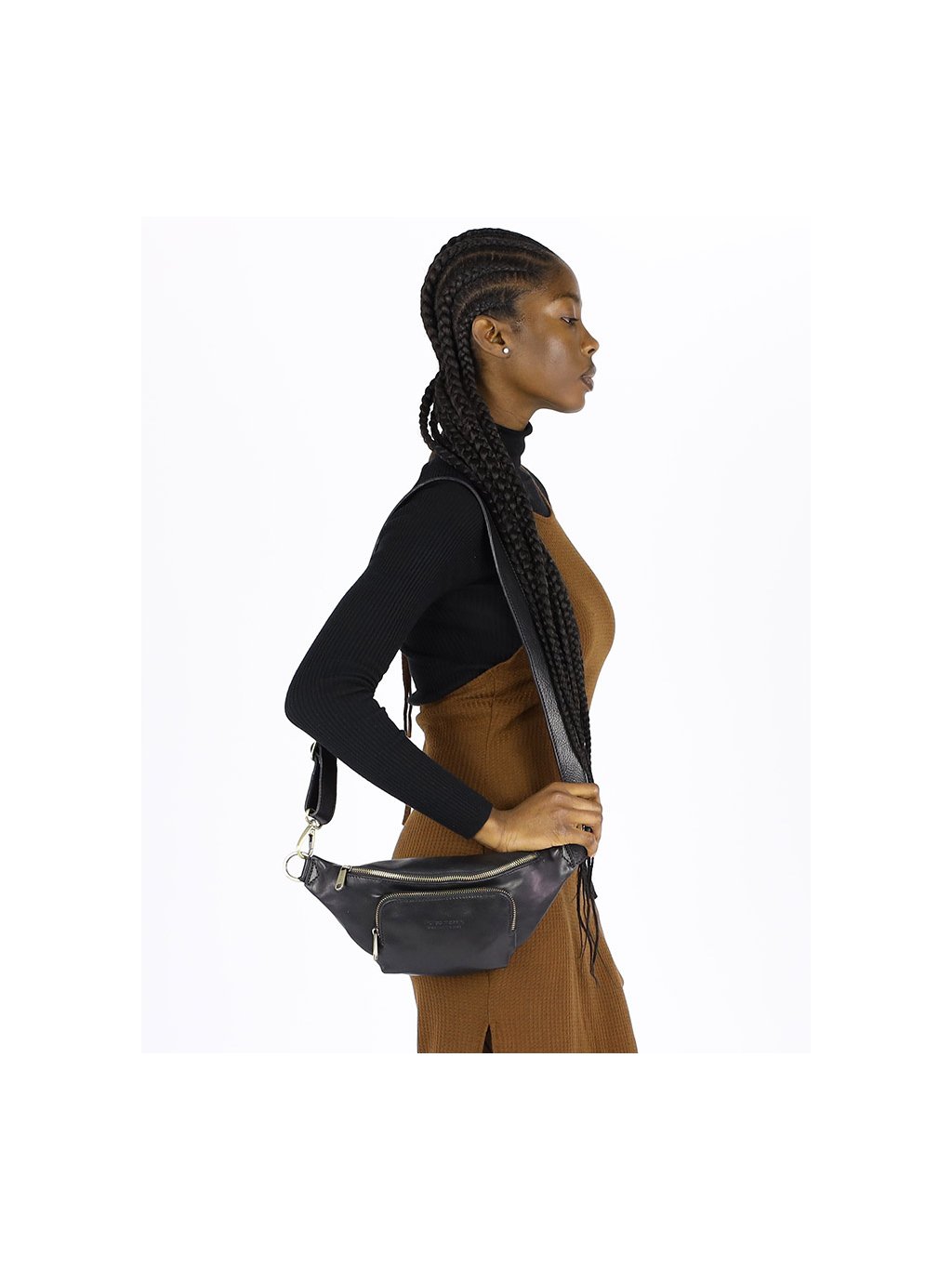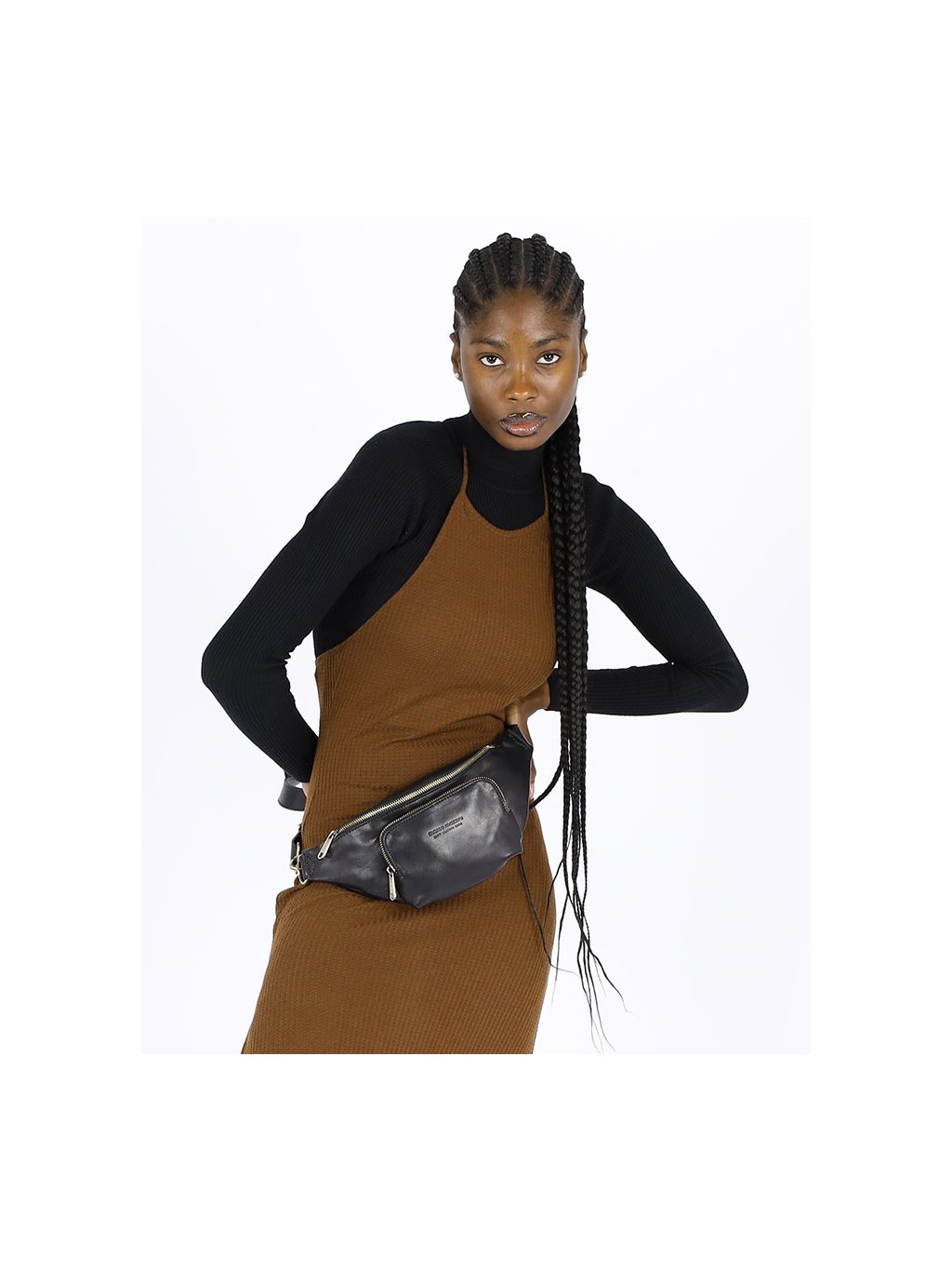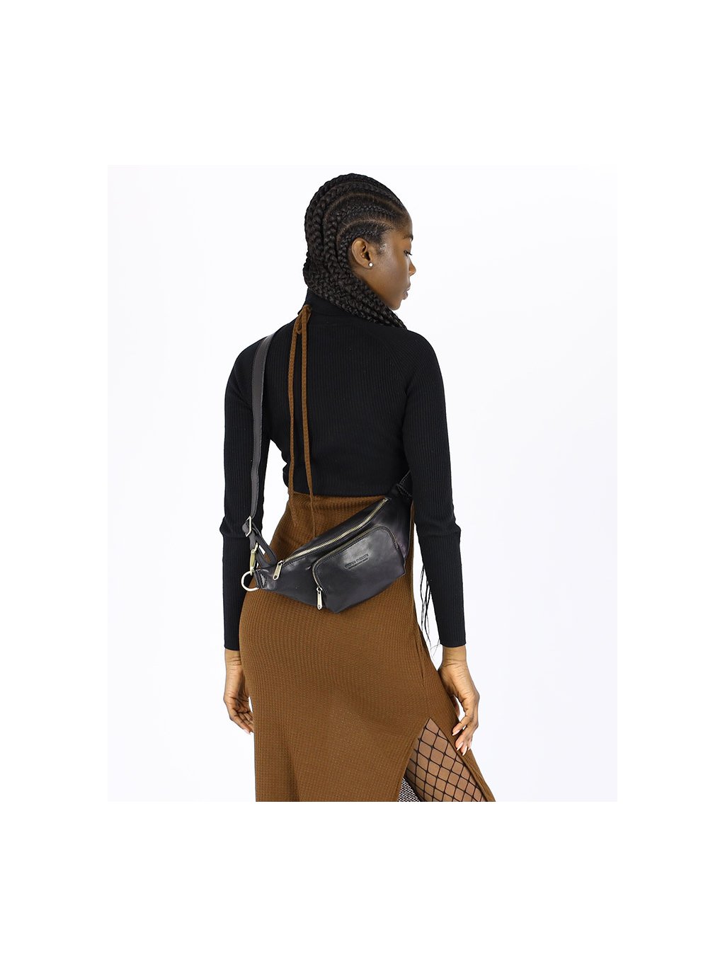 Kožená ledvinka na širokém popruhu je ideálním doplňkem pro každodenní nošení i cestování. Vyrobena z prvotřídní přírodní hovězí kůže barvené tamponováním v Toskánsku, která s časem získává jedinečný charakter a přirozenou patinu. Hlavní prostor se uzavírá masivním zipem, uvnitř se nachází bavlněná podšívka v kostkovaném vzoru a kapsa na zip s otevřenou přihrádkou. Přední zipová kapsa umožňuje rychlý přístup k nejdůležitějším drobnostem. Nastavitelný široký popruh poskytuje pohodlné nošení přes rameno, do kříže nebo v pase, díky čemuž se kabelka přizpůsobí každé situaci. Lehká konstrukce a kompaktní rozměry z ní dělají ideální volbu pro aktivní ženy, které chtějí mít důležité věci stále při sobě při procházce, v letadle i při městském pohybu.