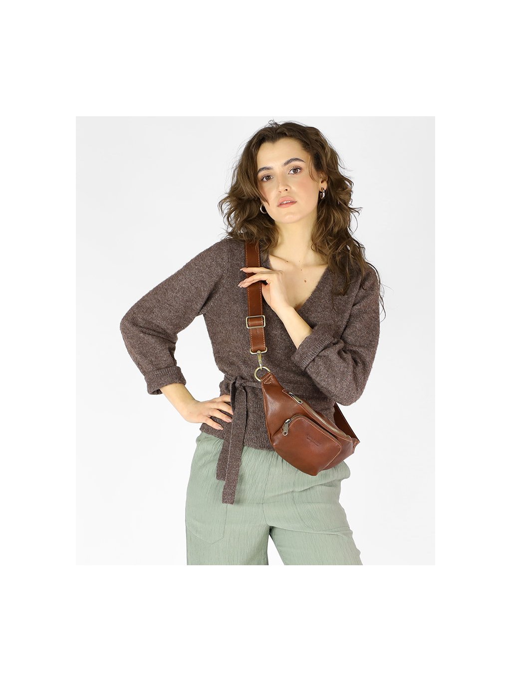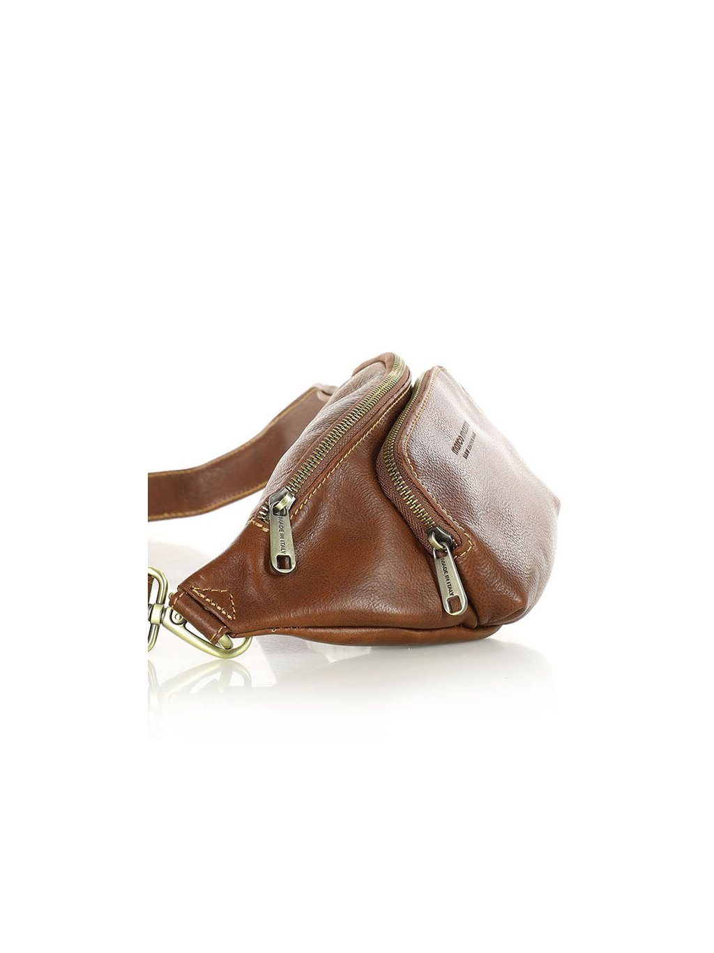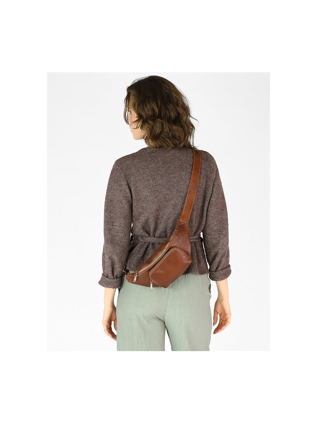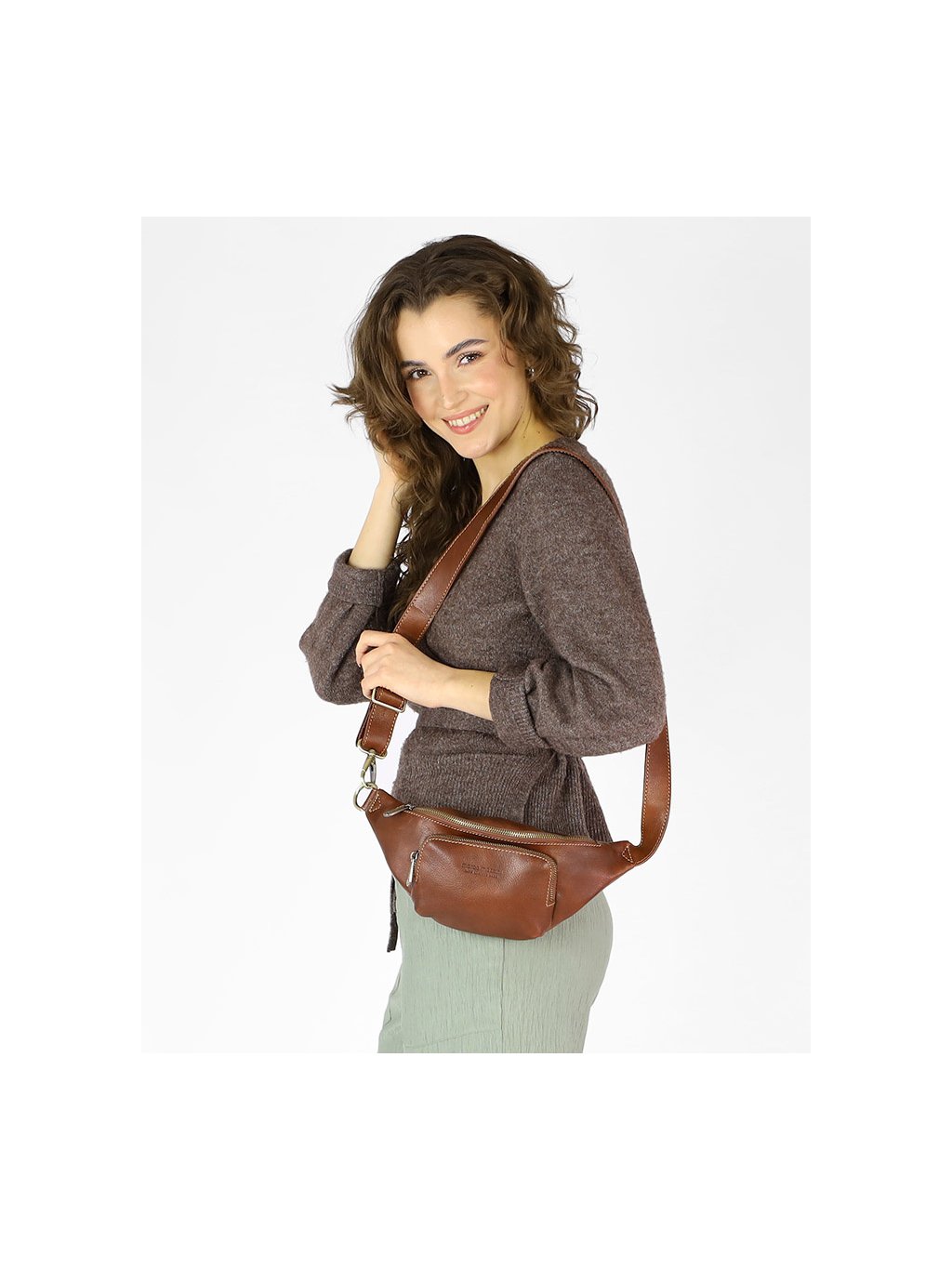 Kožená ledvinka na širokém popruhu je ideálním doplňkem pro každodenní nošení i cestování. Vyrobena z prvotřídní přírodní hovězí kůže barvené tamponováním v Toskánsku, která s časem získává jedinečný charakter a přirozenou patinu. Hlavní prostor se uzavírá masivním zipem, uvnitř se nachází bavlněná podšívka v kostkovaném vzoru a kapsa na zip s otevřenou přihrádkou. Přední zipová kapsa umožňuje rychlý přístup k nejdůležitějším drobnostem. Nastavitelný široký popruh poskytuje pohodlné nošení přes rameno, do kříže nebo v pase, díky čemuž se kabelka přizpůsobí každé situaci. Lehká konstrukce a kompaktní rozměry z ní dělají ideální volbu pro aktivní ženy, které chtějí mít důležité věci stále při sobě při procházce, v letadle i při městském pohybu.