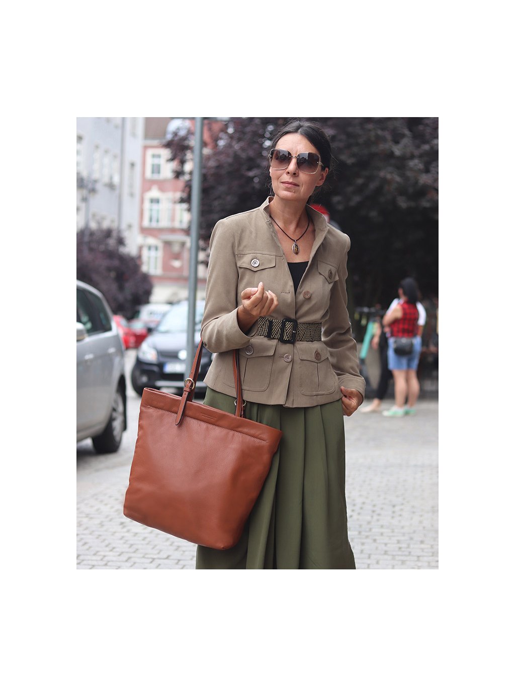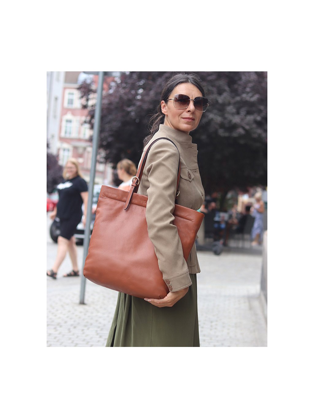 Elegantní shopper kabelka z jemné toskánské teletiny spojuje vytříbený italský styl s každodenní funkčností. Vyrobena z certifikované přírodní kůže nejvyšší kvality pocházející z Toskánska, která vyniká mimořádnou měkkostí, pružností a dlouhou životností. Ručně šitá s důrazem na detail a tradiční řemeslné zpracování. Nadčasový design a precizní provedení z ní dělají ideální doplněk pro ženy, které hledají prostornou a elegantní kabelku do práce i pro každodenní nošení. Hlavní prostor se uzavírá masivním zipem a nabízí vnitřní kapsu na zip, dvě otevřené přihrádky a světlou bavlněnou podšívku, která usnadňuje orientaci uvnitř. Díky dostatečné velikosti pojme i dokumenty formátu A4, notebook nebo diář. Nastavitelný popruh umožňuje pohodlné nošení na rameni. Elegantní stříbrné kování podtrhuje celkový vzhled a zvýrazňuje exkluzivní charakter této kabelky, která vynikne v každé situaci a stane se spolehlivým každodenním společníkem.