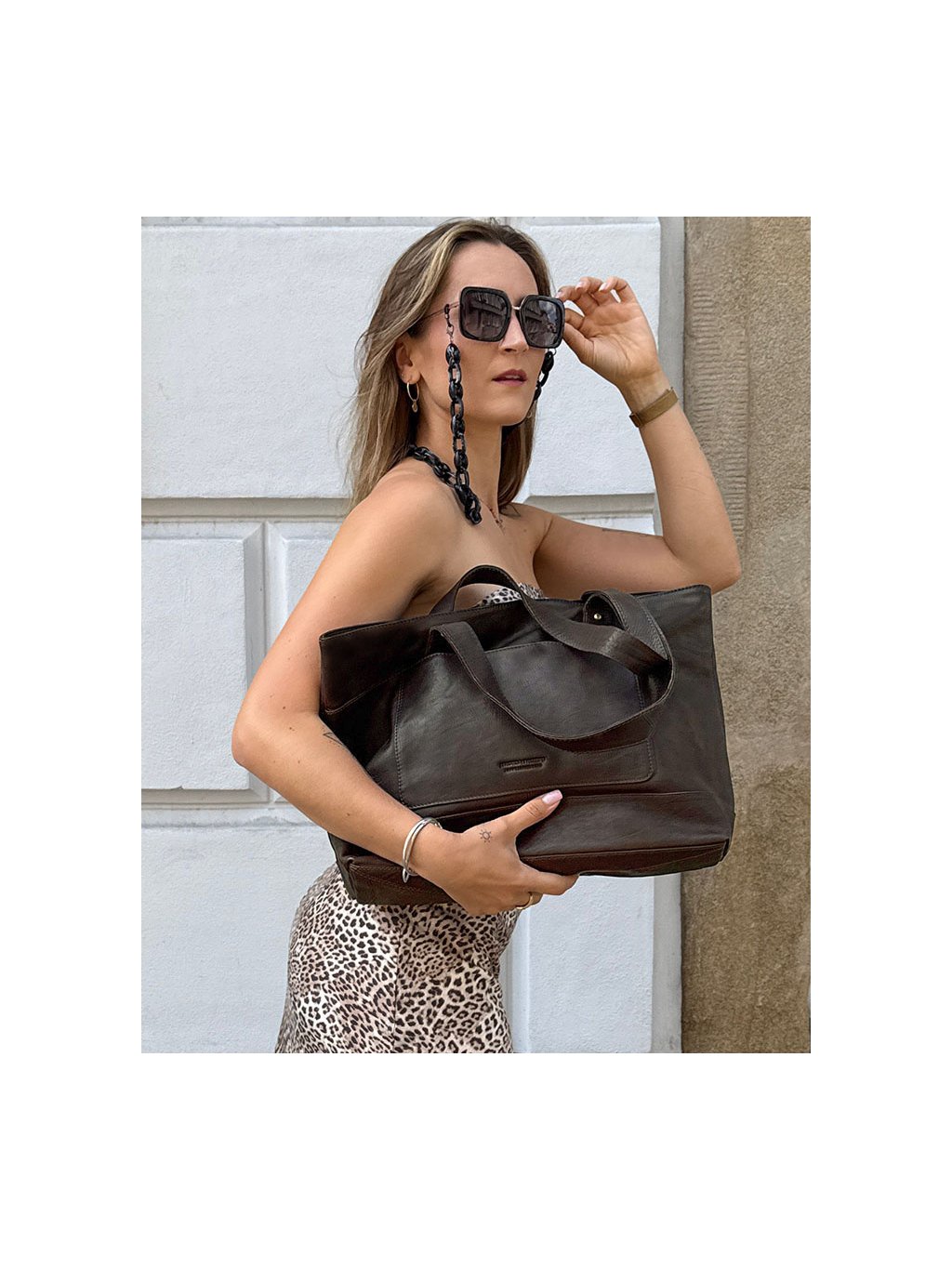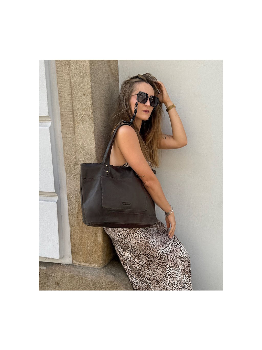Kožená shopper kabelka s Marco Mazzini která je oblíbená pro svou praktičnost, prostorné členění a jednoduchý tvar, který se snadno kombinuje s různými outfity. Kabelka je vyrobena z měkké přírodní kůže, která je odolná a příjemná na dotek, vhodná na každodenní nošení i do práce. Vnitřní prostor je podšitý bavlněnou podšívkou a nabízí kapsu na zip a otevřenou přihrádku pro přehledné uspořádání drobností. Na přední i zadní straně se nacházejí praktické vnější kapsy, které umožňují rychlý přístup k nejčastěji používaným věcem. Díky dostatečné velikosti kabelka pojme dokumenty formátu A4 i notebook. Lze ji nosit v ruce, na rameni nebo přes tělo díky přiloženému nastavitelnému popruhu. Každý kus je ručně zpracován s důrazem na detail, což zaručuje dlouhou životnost a nadčasový vzhled.