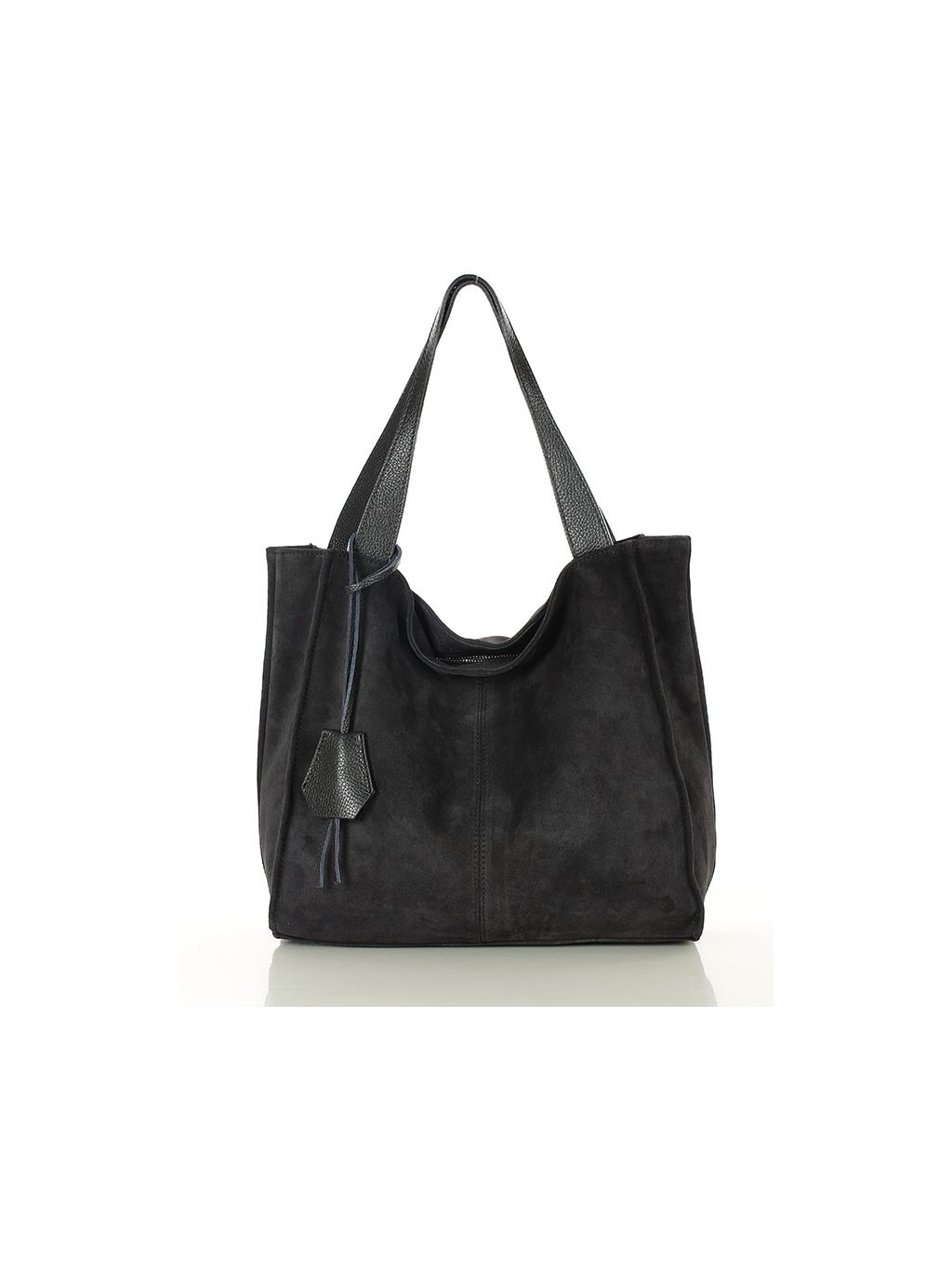 Semišová shopper bag kabelka je nadčasový doplněk pro každodenní nošení. Je vyrobena z měkké přírodní semišové kůže, která dodává kabelce elegantní vzhled a jemnou strukturu. Jednoduchý a minimalistický střih je lehký, prostorný a pohodlný na nošení přes rameno, takže se skvěle hodí do práce, na nákupy i na běžné vyřizování. Vnitřní prostor se uzavírá na zip a nabízí dostatek místa pro všechny nezbytnosti. Uvnitř je kapsa na zip a otevřená kapsička pro drobnosti. Díky kvalitnímu zpracování si kabelka udrží svůj tvar a spolehlivě poslouží po mnoho sezón. Semišová shopper kabelka se snadno kombinuje s elegantními i volnočasovými outfity a poskytuje ideální rovnováhu mezi funkčností, pohodlím a stylovým vzhledem. Je to univerzální volba pro ženy, které hledají spolehlivý a esteticky čistý doplněk pro každodenní nošení.