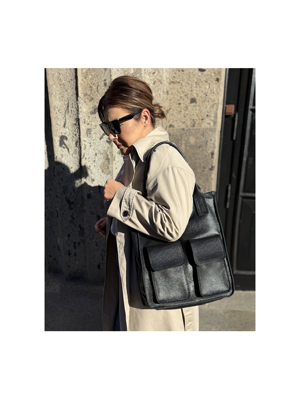 Dámská kožená kabelka moderního tvaru s dostatkem prostoru na vše potřebné a důležité. Kabelka je se dvěma uchy a na přední straně má dvě praktické kapsy na magnetku. Celá kabelka se zapíná se na zip. Uvnitř je kabelka vybavena vnitřními kapsičkami na drobnosti a mobilní telefon. Kabelku je možno nosit jak v ruce, tak přes rameno. Je vhodná na každou příležitost a snadno se kombinuje s jakýmkoli outfitem.