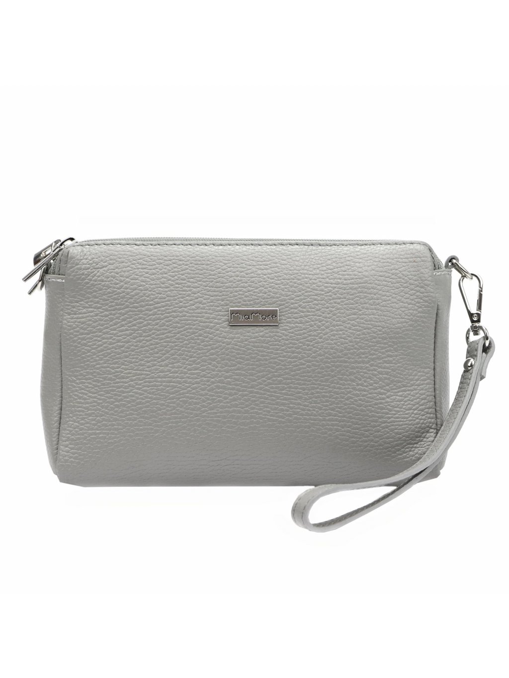 Kožená společenská kabelka MiaMore, ušitá z pravé přírodní kůže. Kabelka se uzavírá zipem a je prakticky rozdělená na tři samostatné oddíly. Další kapsičku na zip najdete na zadní straně tašky. Součástí kabelky jsou dva popruhy, jeden přes rameno a druhý na zapěstí.