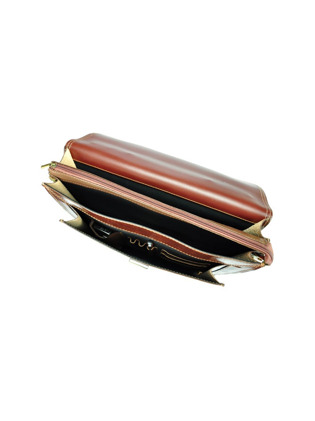 Pánská kožená aktovka Gregorio Art.6, je business aktovka s klasickým aktovkovým zámkem uprostřed klopny. Aktovka je ušitá z kvalitní italské hovězí kůže a zavírá se klasickou klopnou. Vnitřní prostor aktovky je rozdělen na tři části, prostřední se uzavírá na zip. V dalších částech nalezneme praktické kapsičky, držáky pro pera a vizitky. Aktovku lze nosit v ruce a po připnutí dlouhého popruhu také pohodlně přes rameno. Další velká zipem uzavíratelná kapsa je na zadní straně.