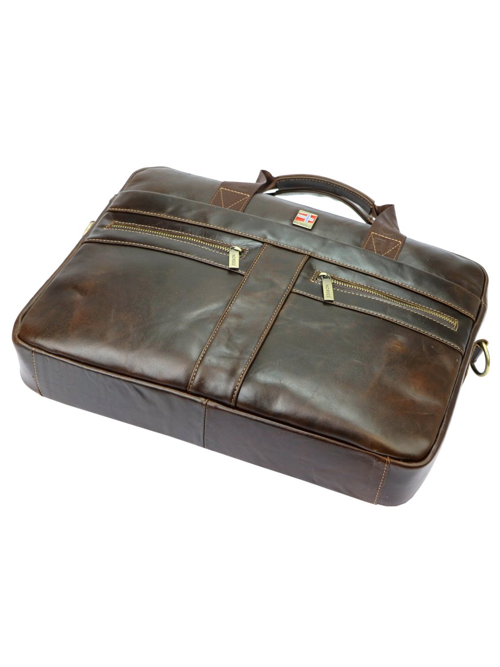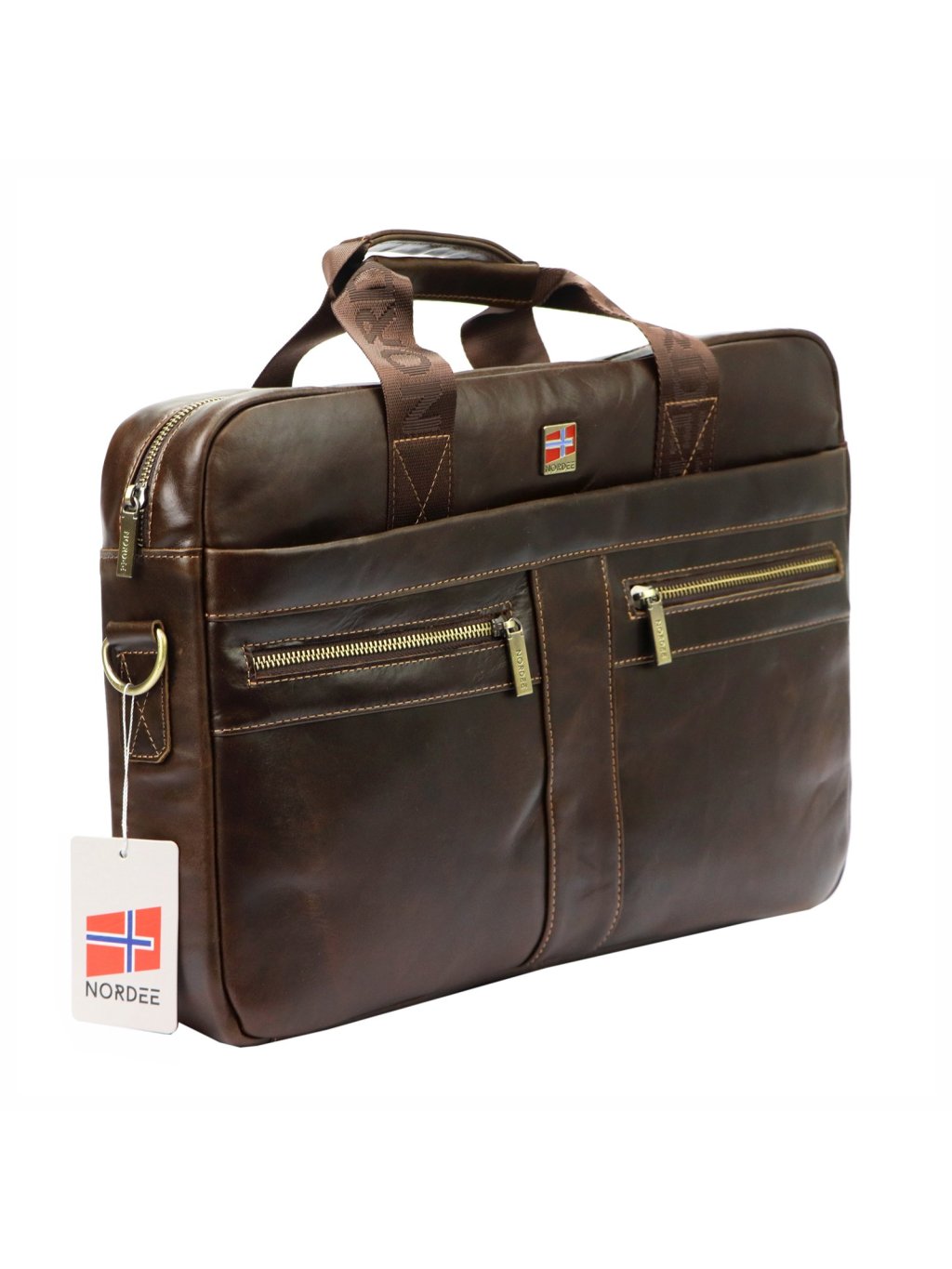Pánská aktovka značky Nordee vyrobená z vysoce kvalitní, pevné a odolné přírodní kůže. Aktovka má jednokomorovou konstrukci. Uvnitř komory je kapsa na notebook uzavíratelná suchým zipem, dvě otevřené kapsy na drobnosti a jedna prostorná kapsa na zips. Další kapsy najdete na přední i zadní straně tašky, což umožňuje snadný a rychlý přístup k nejdůležitějším věcem. Taška je vybavena nastavitelným popruhem přes rameno, který zajišťuje pohodlí při nošení.