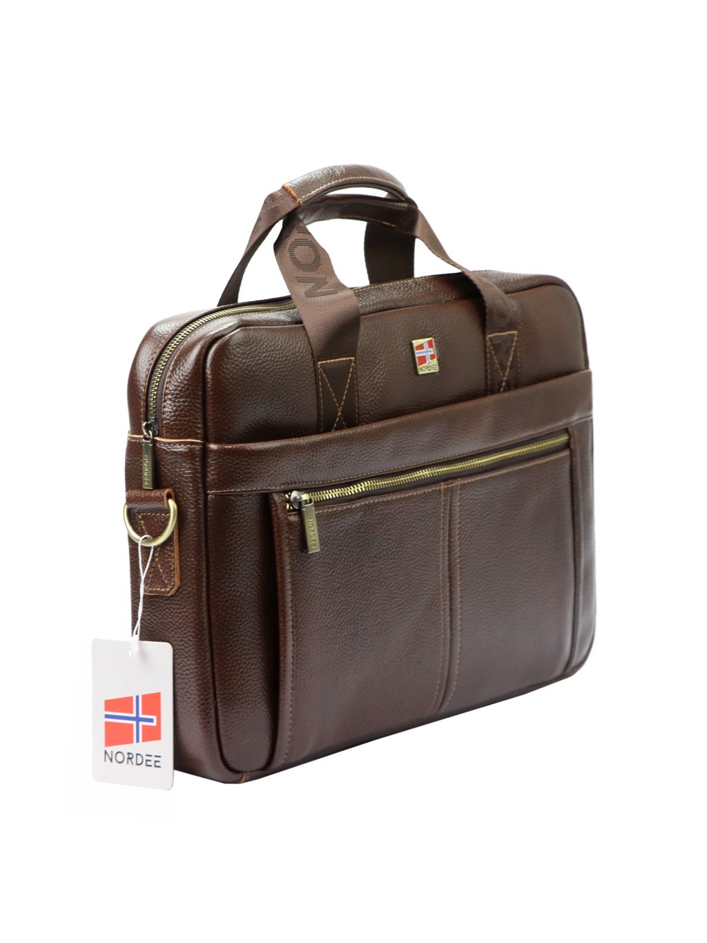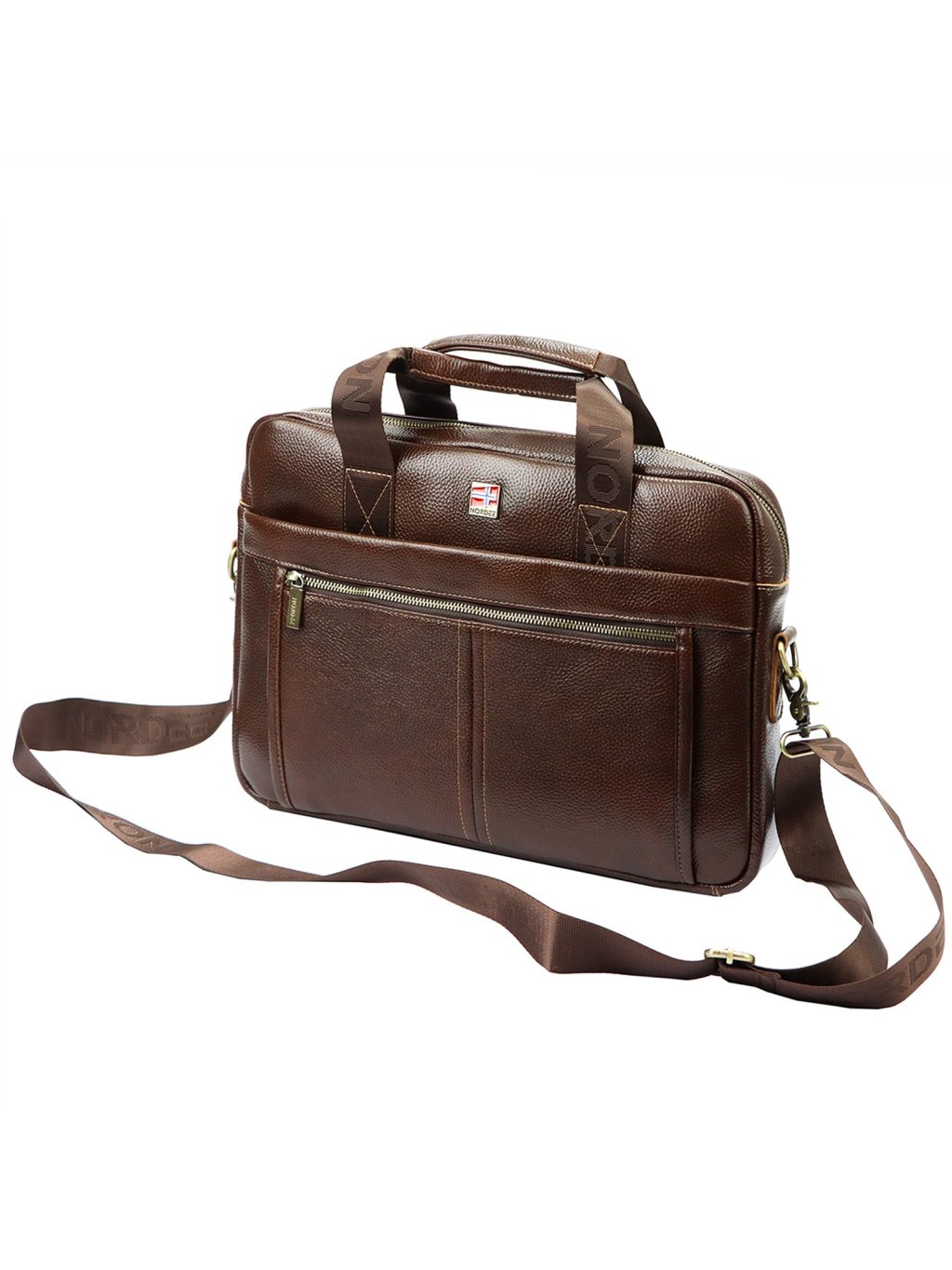 Pánská aktovka značky Nordee vyrobená z vysoce kvalitní, pevné a odolné přírodní kůže. Aktovka má jednokomorovou konstrukci. Uvnitř komory je kapsa na notebook uzavíratelná suchým zipem. a dvě otevřené kapsy na drobnosti. Další kapsy najdete na přední i zadní straně tašky, což umožňuje snadný a rychlý přístup k nejdůležitějším věcem. Taška je vybavena nastavitelným popruhem přes rameno, který zajišťuje pohodlí při nošení.
